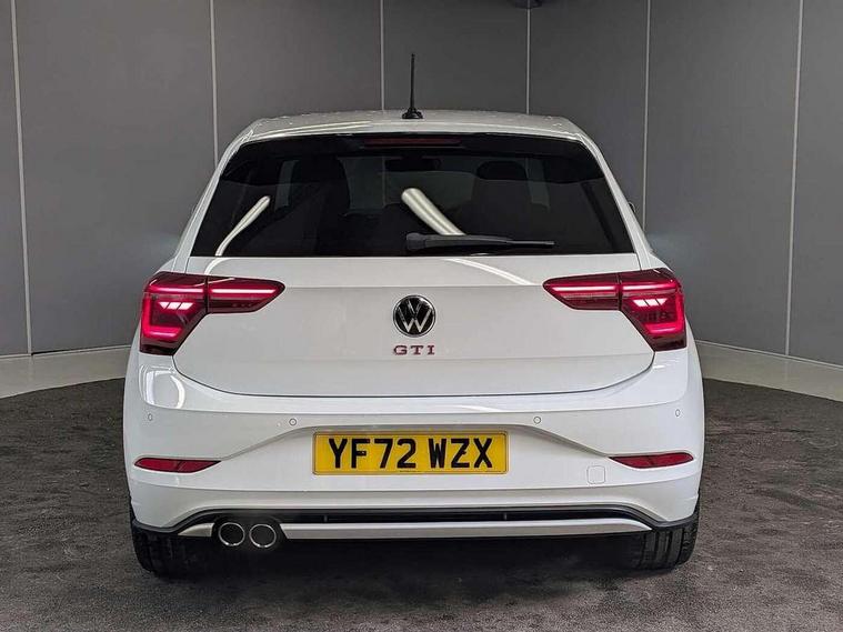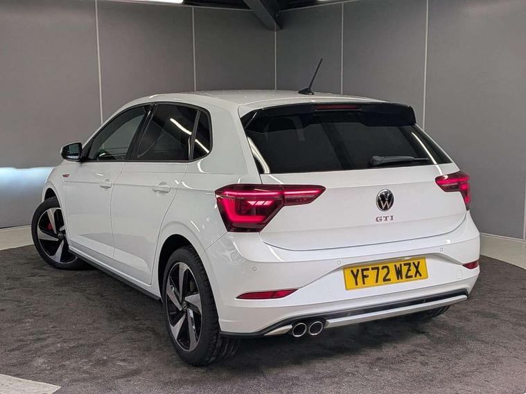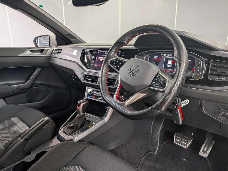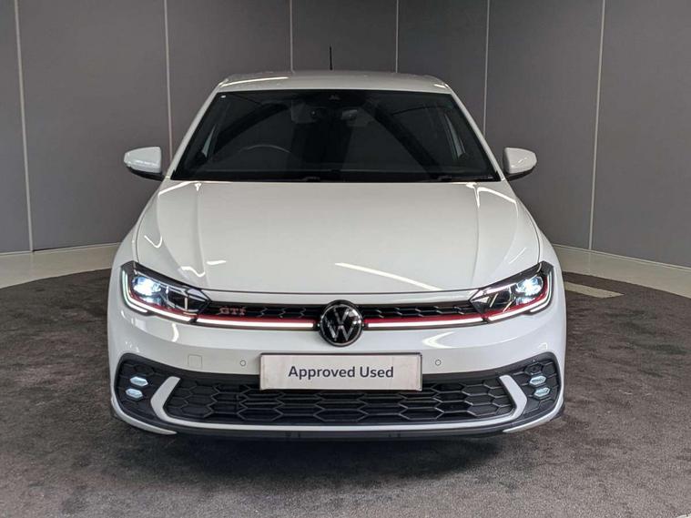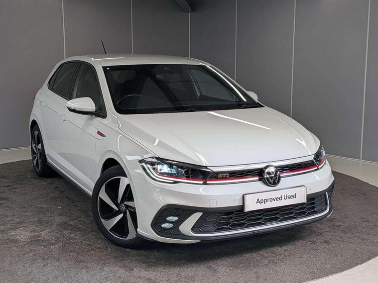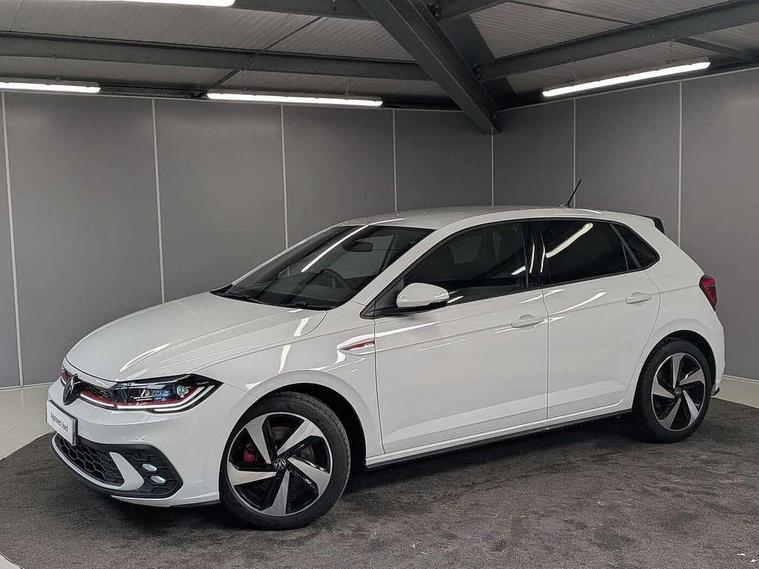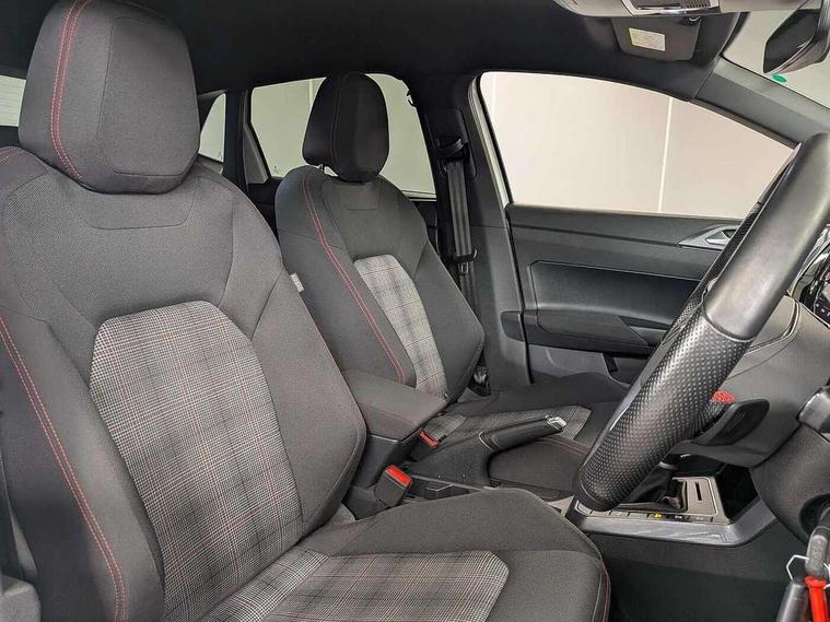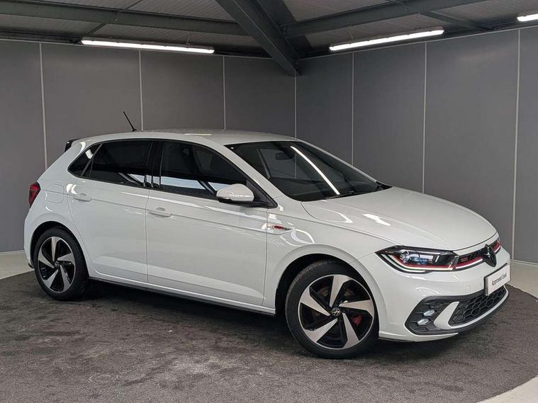 Adaptive cruise control with follow-to-stop and speed limiter, Bluetooth mobile phone interface, Digital Cockpit Pro with 10.25" Display, Driver alert system, Dynamic road sign display, Eco mode, Emergency call service, Power assisted speed sensitive steering, Preparation for We connect and We connect plus, Speedo and rev counter, electronic odometer, trip, service interval display and fuel gauge, Travel Assist - Lane keeping system and traffic jam assist, Travel assist including emergency assist, Trip computer, Warning signal and warning light for front and rear seatbelts not fastened, Washer fluid level indicator, Wireless app connect, Adaptive chassis control, Front wheel drive, Heavy duty rear axle, Rear shock absorpion sports version, Sports select suspension lowered by 15mm, Start-stop system with battery regeneration (recuperation - energy recovery during braking), DAB Digital radio, Diversity antenna for FM reception, Front and rear 6 speakers, Body colour bumpers, Body colour door handles, Electric front windows, Front scuff plates in aluminium with GTI logo, Heat insulating darkened glass in side and rear windows, Heat insulating glass windscreen, Power folding adjustable/heated exterior mirrors and front passenger exterior mirror lowering function, Rear electric windows, Rear fog light, Rear side wing doors, Rear windscreen washer and wiper with interval delay, Sport bumpers with air intakes with honeycomb structure, Third brake light, Twin chrome exhaust tailpipes, 12V power socket in centre console, 2 USB-C ports in the front, 2 USB-C charging sockets on the center console in the rear, 3 rear head restraints, 60/40 split folding rear seat and rear seat bench not split, Air care climatronic air conditoning system with active combination filter and 2-zone temperature control, Black roof lining, Ceramique headliner, Chrome plated radiator grille inserts, air vent surrounds and light switch surrounds, Door and side trim panel, Driver and front passenger seat height adjustment, Driver/passenger sunvisors with illuminated vanity mirrors, Front + rear carpet mats, Front centre armrest, Front footwell illumination, Front seat backrest storage pockets, GTI sports gearshift knob in aluminium leather, Handbrake lever handle in leather, Isofix child seat preparation easy-fit (for two outer rear seats, and front passenger seat) compatible with I-size, LED interior light with switch off delay and dimmer, 2 reading lights front and rear, Luggage compartment cover, Luggage compartment floor, Luggage compartment lighting, Single front passenger seat, Stainless steel pedals, Standard pedal cluster, Three spoke leather wrapped multifunction sports steering wheel with shifting paddles, IQ LED matrix headlights pack - Polo, Light and sight pack - Polo GTI, Sports suspension pack - Polo, 3 point height adj front seatbelts + pretensioners, 3x3 point rear seatbelts, ABS, Driver and front passenger airbag with front passenger airbag deactivation, Drivers and front passengers safety optimised head restraints, ESC (Electronic stability control) + EDL (Electronic Differntial lock) and ASR (Traction control), Extended and predictive pedestrian/ cyclist protection, Front and rear disc brakes with red brake calipers, Front curtain and side airbags with center airbag, Hill hold control, Manual child lock in rear doors, Two tone horn, Tyre pressure loss indicator, Alarm with interior protection, Anti-theft alarm system with interior monitoring, backup horn, and towing protection, Anti-theft wheel bolts, Electronic engine immobiliser, Chrome applications on rotary light, mirror adjustment, window regulator switches, outlet with frame in black, Low rolling resistance tyres,