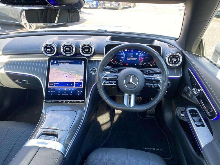 5G Communications module, Active lane keeping assist, Bluetooth connection, Car wash mode, DYNAMIC SELECT with a choice of driving modes (ECO, Comfort, Sport, Sport+ and Individual), eCall emergency call system, Fingerprint scanner, Fluorescent jacket for driver, Fully digital 12.3" driver display screen, Hard-disk navigation, Head up Display, Hey Mercedes Voice activation, MBUX navigation premium, PAS, Passive person presence reminder, Portrait format 11.9" touchscreen central display with driver orientation, Smartphone integration with Apple CarPlay and Android auto, Traffic sign assist, Wireless charging system for mobile devices in the front, 66 litre fuel tank, 9G TRONIC plus automatic transmission, Agility control sports suspension lowered by 15 mm, Integrated starter generator Gen 2, Sporty engine sound system, Burmester 3D surround sound system with sound personalisation, Digital radio, MBUX extended functions, MBUX multimedia system, AMG bodystyling, AMG Line exterior, Auto headlights, Electric windows, LED 3rd brake light, LED Day time running light, LED digital light with adaptive highbeam assist plus, Rain sensor windscreen wipers, Rear boot, Variable front intermittent wipers, 2 individual rear seats, 2 rear head restraints, Ambient lighting premium, Ambient lighting with projection of brand logo, AMG floor mats, AMG line interior, Belt feeder, Climatised massage multicontour front seats, Folding rear seat backrests, Front headrests, Heated front seats, Illuminated door sill panels with Mercedes Benz lettering, Instrument panel and beltlines in ARTICO manmade leather in nappa look, Leather upholstery, Multifunction sports steering wheel in nappa leather, Power height and reach adjustable steering column, Single front passenger seat, THERMATIC automatic climate control, Comfort package - CLE, Energizing plus package with air balance pack - CLE, Interior light pack - CLE, Memory seat pack - CLE, Mirror pack - CLE, Parking package with 360 degree camera - CLE, Stowage space package - CLE, USB package plus - CLE, Anti-lock braking system (ABS), Braking system with larger brake discs on the front axle, Centre airbag, Dual front airbags, Electric parking brake, Electronic Stability Programme (ESP), Front and rear seatbelt reminder, Hill start assist, Pedestrian protection, Tyre pressure monitoring system, Anti theft alarm system, Guard 360 degree vehicle protection plus, Increased anti-theft protection, Interior monitoring system, Keyless Go, Keyless Go starting function, Black open-pore aluminium lines wood trim with mixed fabric look metal finish centre console, 20" AMG multi spoke light alloy wheels painted in black with high sheen finish - RVM, Tirefit,