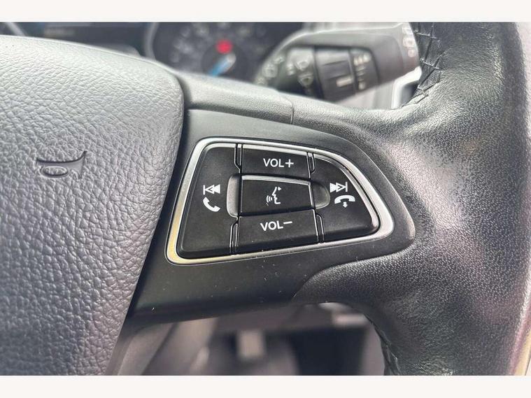 Digital clock, Easy fuel capless refuelling system, Eco mode, Electric boot release, PAS, Rear parking sensor, TFT cluster screen, Trip computer, 6 speakers, Aux input, Steering column with mounted audio controls, SYNC 2 DAB radio/CD, 8" colour touch screen, emergency assistance, Bluetooth connection, advanced voice control, USB connection, 'Quickclear' heated windscreen/heated washer jets, Auto dimming rear view mirror, Automatic headlights, Automatic rain sensing wipers, Body colour bumpers, Body colour door handles, Body colour door mirrors, Body colour rear spoiler, Chrome finish on upper door line, Chrome radiator grille and surround, Electric adjustable heated door mirrors, Front fog lights, Front variable intermittent wipers with electric wash, Heated rear window, Tailgate wash/wipe, 3 spoke leather steering wheel, 60/40 split back and cushion rear seats with 2 height adjustable headrests, Centre console storage box/armrest, Driver's seat with adjustable lumbar support, Dual electronic automatic temperature control air conditioning - CFC-free, Height adjustable front headrests, Isofix child seat preparation, Reach + rake adjustable steering column, Sports style front seats, ABS+Electronic Brake force Distribution, Active city stop, Driver airbag, ESP with traction control + emergency brake assist, Front inertia reel height adjustable seatbelts with pre-tensioners, Front passenger airbag, Front side airbags, Hill start assist, Side curtain airbags, Three rear inertia reel lap/diagonal seatbelts, Torque vectoring brake, Tyre pressure monitoring system, Immobiliser-Passive Anti-Theft System (PATS), Key free system, MyKey system, Remote central double locking, Thatcham Cat.1 alarm,