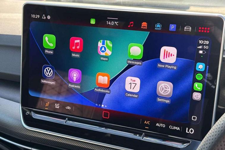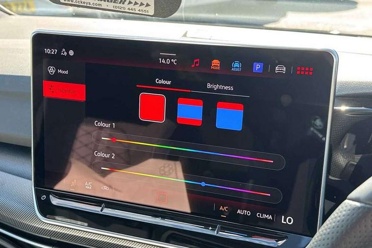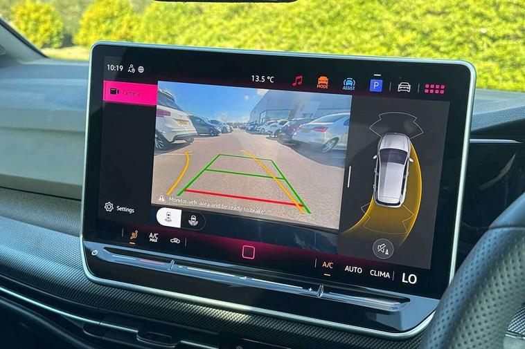 Activated carbon canister, Adaptive cruise control (ACC), Advanced driver attention and drowsiness monitor, Dynamic road sign display, Dynamic steering, E-Sim card for online connectivity, eCall emergency call system, Multi-color Digital cockpit pro, selection of different info profile possible, Multifunction front facing camera for distance control, Navigation system, Oncoming vehicle braking when turning including swerve support, Speed limiter, Speedo, rev counter, electronic odometer, trip, service interval display, exterior temperature and fuel gauge, Traffic jam assist, Voice enhancer and voice control, Warning signal and warning light for front and rear seatbelts not fastened, We connect plus preparation, We connect preparation, Wireless app connect, Hybrid propulsion system, Petrol Particulate Filter, Start-stop system with battery regeneration (recuperation - energy recovery during braking), XDS electronic differential lock for improved traction and handling, 2 USB C ports in front, 2 USB charging sockets on the centre console in the rear charging capacity upto 45W, Digital radio reception (DAB), Diversity antenna for FM reception, Gaming platform via car app, Infotainment system with 12.9" display, Mobile phone interface with inductive charging feature, 3rd brake light, Automatic headlamp activation with Coming home and Leaving home feature, Body colored bumpers in R-Line style, Body colour door handles, Exterior mirrors convex on the left and aspherical on the right, Front and rear electric windows, Heat insulating windshield made of laminated glass, LED separate daytime running light, Rear exhaust tailpipe, Rear fog light on one side and reversing lights on both sides, Rear side wing doors, Rear windscreen washer and wiper with interval delay, Remote electrically foldable door mirrors, puddle lights and reverse activated passenger's door mirror, Welcome light with surround lighting, 12V socket in front centre console, 12V socket in luggage compartment, 3 rear head restraints, 3 seat bench in 2nd row, Ambient lighting with 30 colour including LED light unit in front footwell with selectable light colour, Black roof lining, Brushed stainless steel pedals, Chrome plated radiator grille inserts, air vent surrounds and light switch surrounds, Door insert, side trim panel and arm support in leatherette, Front + rear black carpet mats, Front centre armrest, Front seat lumbar support adjuster, Integrated front head restraints, ISOFIX anchors for child seats on outer rear bench seats and on front passanger seat compatible for i-Size, Luggage compartment lighting, Manual height adjustable front passenger seat, Manually height adjustable driver seat, Plastic gear knob, Premium sports seats in front, Rear cupholder and loadthough, Sardegna cloth upholstery with front and outer rear seats Art Velour inner sides of bolsters, Single front passenger seat, Split folding backrest with centre armrest and unsplit rear seat bench, Sun visors with illuminated vanity mirrors, Titanium black instrument panel, 3 point height adj front seatbelts + pretensioners, 3 rear three point seatbelts, ABS, Autonomous emergency braking front assist with pedestrian and cyclist monitoring, Child locks on rear doors, Driver and front passenger airbag with front passenger airbag deactivation, Electronic parking brake with auto hold, ESC (Electronic Stability Control), Extended pedestrian protection measures, Hill start assist, Rear disc brakes, Two tone horn, Tyre pressure loss indicator, Volkswagen roadside assistance, Anti theft wheel bolts, Preparation for alcohol interlock, Decorative inserts carbon grey for dashboard and front door trim panels, Tool kit for tyre mobility set, Tyre mobility kit Includes 12V compressor and tyre sealant,