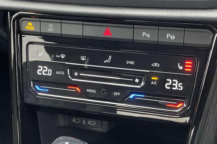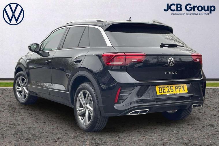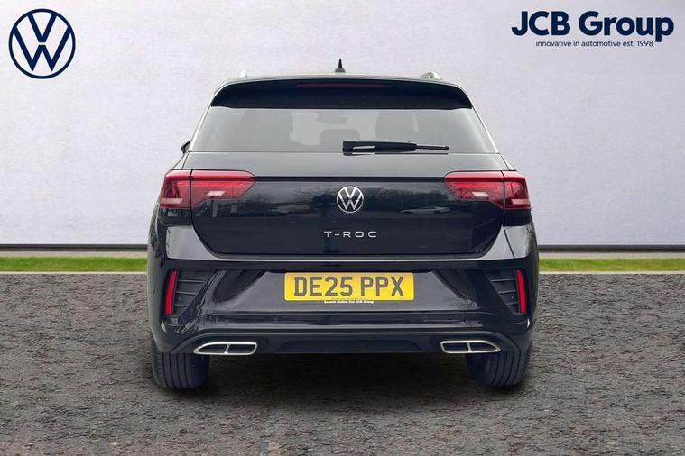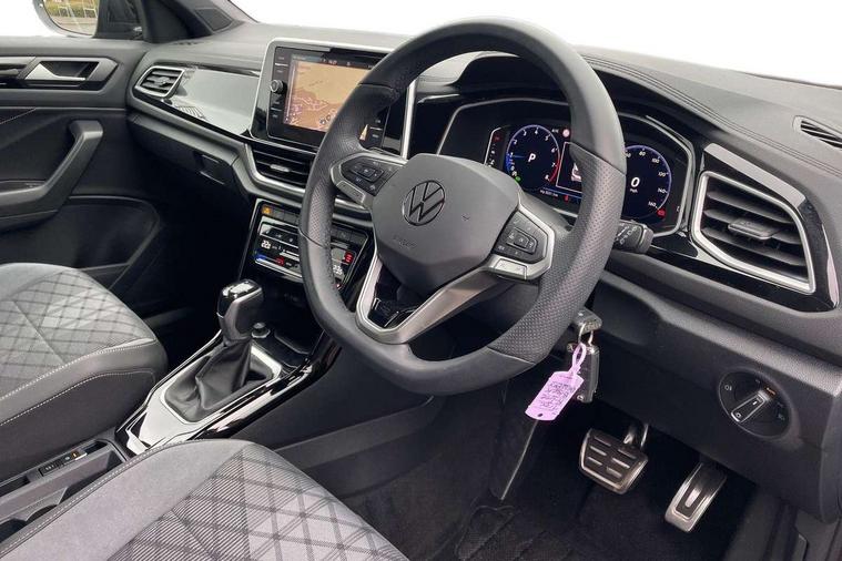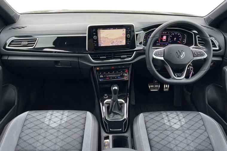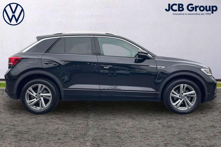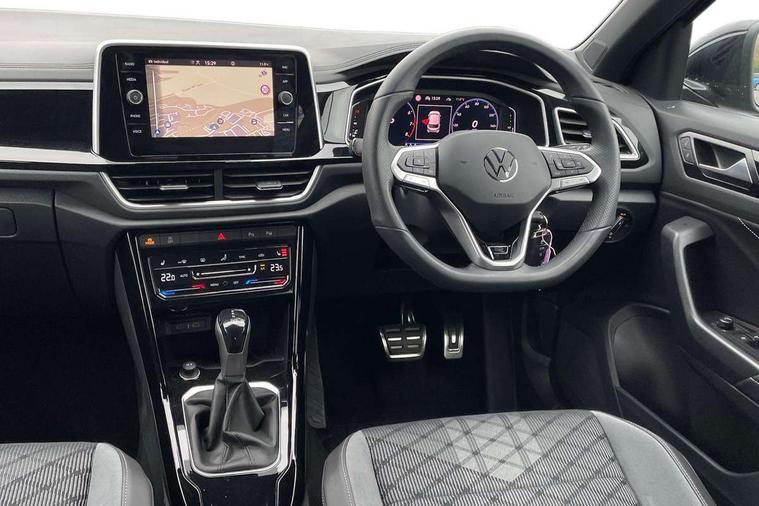 10.25" Digital cockpit pro, Advanced driver attention and drowsiness monitor, Emergency call service, Lane keeping system Lane Assist, Mobile phone interface, Modified key software - reduce switch off time for key status change to Long no motion, Online services, Park assist including front and rear parking sensors, Service interval indicator, Tailgate/trunk lid release from outside, Think blue trainer driver tips and journey analysis, Warning sound and light for front seatbelts unfastened, Wireless app connect, Battery regeneration during braking, Start/stop function with battery regeneration, DAB Digital radio, Diversity antenna for FM reception, Front and rear 6 speakers, Music playback - MP3, WMA and AAC files, Premium USB cable in choice of either Apple or Android smartphone compatibility, SD card slot, Simultaneous pairing of 2 compatible mobile devices, Title and cover art display, We Connect and We Connect Plus functionality, Auto dimming interior rear view mirror, Automatic hazard lights activation under emergency braking, Automatic headlight control with LED separate daytime running lights with coming/leaving home function, Body coloured exterior mirror housings and door handles, Electrically adjustable and heated door mirrors, Extended roof spoiler, Exterior mirrors aspherical on driver side, convex on front passenger side, External USB type C socket and charging sockets, Front windscreen wiper with intermittent wipe and 4 position delay, Heated rear window, LED 3rd brake light, LED rear combination lamps, LED rear number plate lights, Power windows with comfort operation and circuit breaker, Privacy glass for rear side windows and rear window, R-Line design body coloured bumpers, Rain sensor, Rear exhaust tailpipe, Rear fog light on one side and reversing lights on both sides, Rear side wing doors, Rear wash/wipe with intermittent wipe setting, Remote electrically foldable door mirrors, puddle lights and reverse activated passenger's door mirror, 12V power socket in centre console, 3 rear head restraints, 3 seat bench in 2nd row, 4 load lashing points in luggage compartment, Air care climatronic air conditoning system with active combination filter and 2-zone temperature control, Black roof lining, Chrome plated decorative trims, Chrome plated radiator grille inserts, air vent surrounds and light switch surrounds, Door and side trim panel with leatherette insert, Front + rear carpet mats, Front centre armrest, Front cupholders x 2, Front footwell illumination, Front reading light, Front scuff plates with R Line logo, Front seat back storage pockets, Glove compartment door with light, Instrument lighting, white adjustable panel illumination, Interior ambient lighting and surround lighting, Interior light delay, Isofix child seat preparation, Leather gearshift handle, Load-through provision with cup holder when folded down ('Unsplit rear seat bench, split folding backrest, with centre armrest), Luggage compartment lighting, Single front passenger seat, Stainless steel pedals, Storage compartment in left and right luggage area, Storage compartment in rear doors, Storage compartments in driver and front passenger doors, Sunvisors with illuminated vanity mirrors, Variable boot floor, height adjustable and removable, Driver assistance pack without proactive passenger protection - T-Roc, 3 point height adj front seatbelts + pretensioners, 3 point seatbelts in outer rear with ECE label, ABS, Child locks on rear doors, City emergency braking and pedestrian monitoring, Driver and front passenger airbag with front passenger airbag deactivation, Driver and front passenger safety-optimised head restraints, Drivers seatbelt reminder, Electronic parking brake, Electronic Stability Control (ESC) inc EDL (Electronic Differential Lock) and ASR (Traction Control), Front and rear passengers curtain airbag system including front side airbags, Hill start assist, Predictive pedestrian protection, Rear disc brakes, Two tone horn, Tyre pressure loss indicator, Volkswagen roadside assistance, Piano black decorative inserts in dashboard and front door trim panels, Trims for alloy wheels,