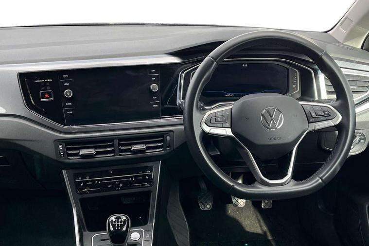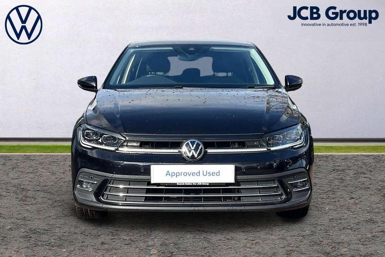 Adaptive cruise control without follow-to-stop and speed limiter, Bluetooth mobile phone interface, Digital Cockpit Pro with 10.25" Display, Driver alert system, Dynamic road sign display, Emergency call service, Power assisted speed sensitive steering, Preparation for We connect and We connect plus, Speedo and rev counter, electronic odometer, trip, service interval display and fuel gauge, Standard rear axle, Travel Assist - Lane keeping system and traffic jam assist, Travel assist including emergency assist, Trip computer, Warning signal and warning light for front and rear seatbelts not fastened, Washer fluid level indicator, Wireless app connect, Front wheel drive, Rear shock absorpion, Start-stop system with battery regeneration (recuperation - energy recovery during braking), DAB Digital radio, Diversity antenna for FM reception, Front and rear 6 speakers, Automatic dimming interior rear view mirror, Automatic headlights, Body colour door handles, Body coloured bumpers and radiator grille with chrome trims, Electric front windows, Heat insulating darkened glass in side and rear windows, Heat insulating glass windscreen, LED separate daytime running lights with coming/leaving home function, Power folding adjustable/heated exterior mirrors and front passenger exterior mirror lowering function, Rain sensor, Rear electric windows, Rear fog light, Rear side wing doors, Rear windscreen washer and wiper with interval delay, Third brake light, 12V power socket in centre console, 2 USB-C ports in the front, 2 USB-C charging sockets on the center console in the rear, 3 rear head restraints, 60/40 split folding rear seat and rear seat bench not split, Air care climatronic air conditoning system with active combination filter and 2-zone temperature control, Ambient lighting, Chrome plated radiator grille inserts, air vent surrounds and light switch surrounds, Door and side trim panel, Driver and front passenger seat height adjustment, Driver/passenger sunvisors with illuminated vanity mirrors, Front + rear carpet mats in recycled material, Front centre armrest, Front footwell illumination, Front seat backrest storage pockets, Front sports comfort seats, Handbrake lever handle in leather, Headliner in recycled material, Isofix child seat preparation easy-fit (for two outer rear seats, and front passenger seat) compatible with I-size, Leather trimmed gear knob, LED interior light with switch off delay and dimmer, 2 reading lights front and rear, Luggage compartment cover, Luggage compartment floor, Luggage compartment lighting, Lumbar adjustment for front seats, Multifunction steering wheel, Single front passenger seat, Standard pedal cluster, IQ LED matrix headlights pack - Polo, Light and vision pack - Polo, 3 point height adj front seatbelts + pretensioners, 3x3 point rear seatbelts, ABS, Driver and front passenger airbag with front passenger airbag deactivation, Drivers and front passengers safety optimised head restraints, ESC (Electronic stability control) + EDL (Electronic Differntial lock) and ASR (Traction control), Extended and predictive pedestrian/ cyclist protection, Front curtain and side airbags with center airbag, Front disc brakes, Hill hold control, Manual child lock in rear doors, Rear drum brakes, Single tone horn, Tyre pressure loss indicator, Alarm with interior protection, Anti-theft alarm system with interior monitoring, backup horn, and towing protection, Anti-theft wheel bolts, Electronic engine immobiliser, Chrome applications on rotary light, mirror adjustment, window regulator switches, outlet with frame in black, Low rolling resistance tyres,