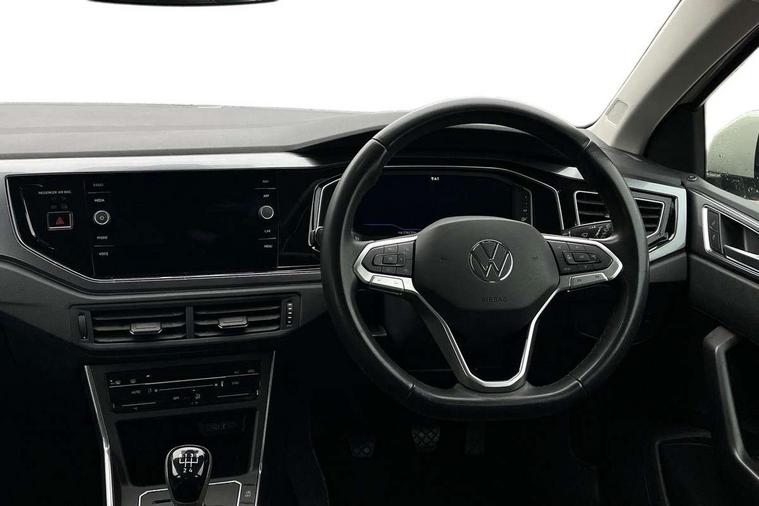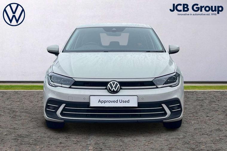 Adaptive cruise control without follow-to-stop and speed limiter, Bluetooth mobile phone interface, Digital Cockpit Pro with 10.25" Display, Driver alert system, Dynamic road sign display, Emergency call service, Power assisted speed sensitive steering, Preparation for We connect and We connect plus, Speedo and rev counter, electronic odometer, trip, service interval display and fuel gauge, Standard rear axle, Travel Assist - Lane keeping system and traffic jam assist, Travel assist including emergency assist, Trip computer, Warning signal and warning light for front and rear seatbelts not fastened, Washer fluid level indicator, Wireless app connect, Front wheel drive, Rear shock absorpion, Start-stop system with battery regeneration (recuperation - energy recovery during braking), DAB Digital radio, Diversity antenna for FM reception, Front and rear 6 speakers, Automatic dimming interior rear view mirror, Automatic headlights, Body colour door handles, Body coloured bumpers and radiator grille with chrome trims, Electric front windows, Heat insulating darkened glass in side and rear windows, Heat insulating glass windscreen, LED separate daytime running lights with coming/leaving home function, Power folding adjustable/heated exterior mirrors and front passenger exterior mirror lowering function, Rain sensor, Rear electric windows, Rear fog light, Rear side wing doors, Rear windscreen washer and wiper with interval delay, Third brake light, 12V power socket in centre console, 2 USB-C ports in the front, 2 USB-C charging sockets on the center console in the rear, 3 rear head restraints, 60/40 split folding rear seat and rear seat bench not split, Air care climatronic air conditoning system with active combination filter and 2-zone temperature control, Ambient lighting, Chrome plated radiator grille inserts, air vent surrounds and light switch surrounds, Door and side trim panel, Driver and front passenger seat height adjustment, Driver/passenger sunvisors with illuminated vanity mirrors, Front + rear carpet mats in recycled material, Front centre armrest, Front footwell illumination, Front seat backrest storage pockets, Front sports comfort seats, Handbrake lever handle in leather, Headliner in recycled material, Isofix child seat preparation easy-fit (for two outer rear seats, and front passenger seat) compatible with I-size, Leather trimmed gear knob, LED interior light with switch off delay and dimmer, 2 reading lights front and rear, Luggage compartment cover, Luggage compartment floor, Luggage compartment lighting, Lumbar adjustment for front seats, Multifunction steering wheel, Single front passenger seat, Standard pedal cluster, IQ LED matrix headlights pack - Polo, Light and vision pack - Polo, 3 point height adj front seatbelts + pretensioners, 3x3 point rear seatbelts, ABS, Driver and front passenger airbag with front passenger airbag deactivation, Drivers and front passengers safety optimised head restraints, ESC (Electronic stability control) + EDL (Electronic Differntial lock) and ASR (Traction control), Extended and predictive pedestrian/ cyclist protection, Front curtain and side airbags with center airbag, Front disc brakes, Hill hold control, Manual child lock in rear doors, Rear drum brakes, Single tone horn, Tyre pressure loss indicator, Alarm with interior protection, Anti-theft alarm system with interior monitoring, backup horn, and towing protection, Anti-theft wheel bolts, Electronic engine immobiliser, Chrome applications on rotary light, mirror adjustment, window regulator switches, outlet with frame in black, Low rolling resistance tyres,