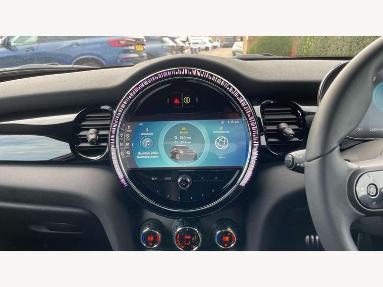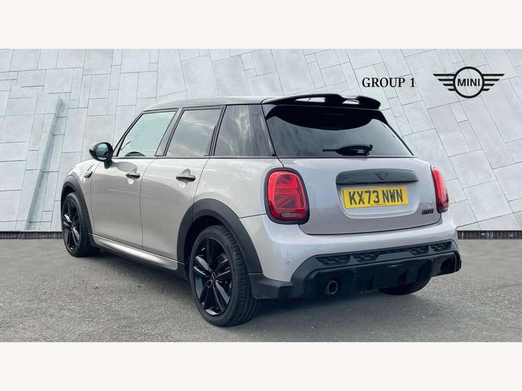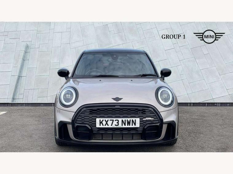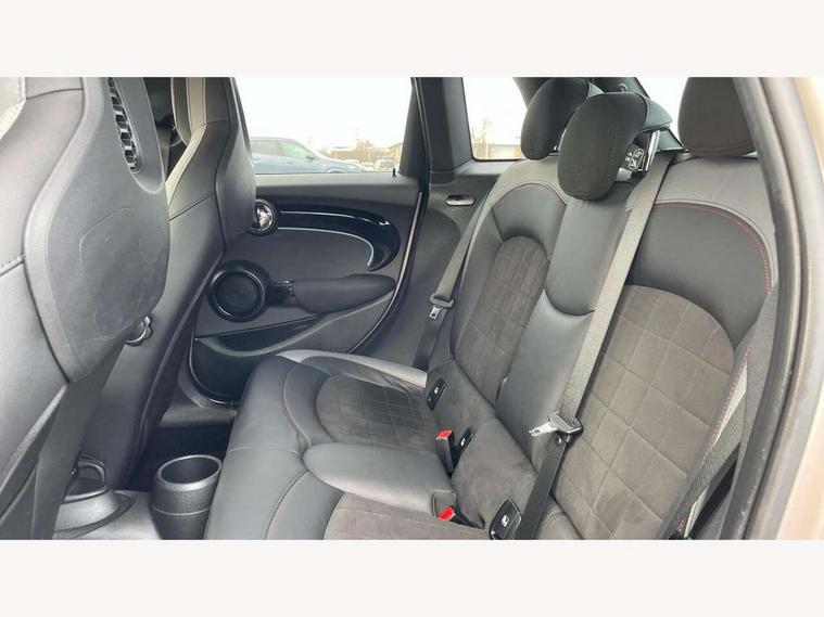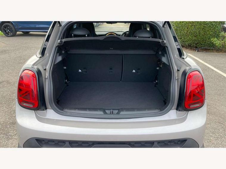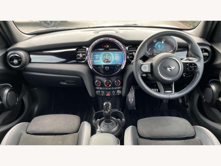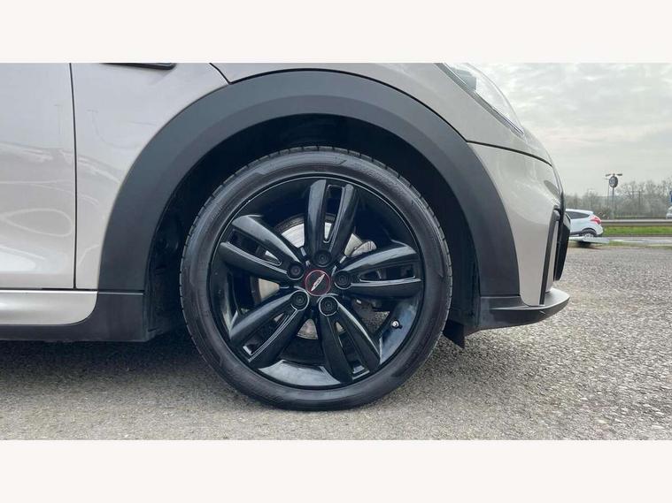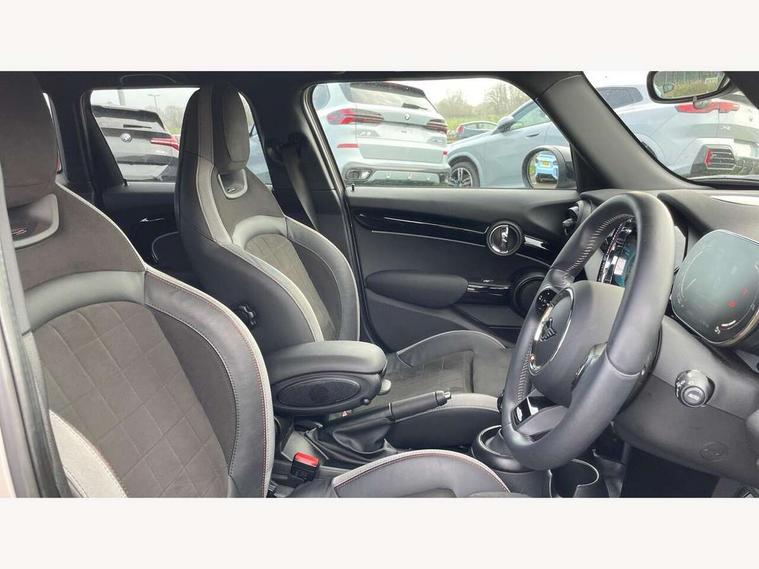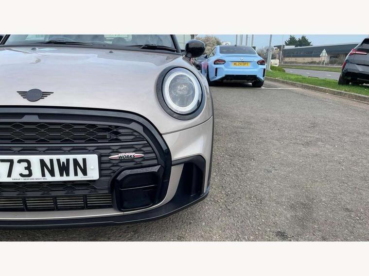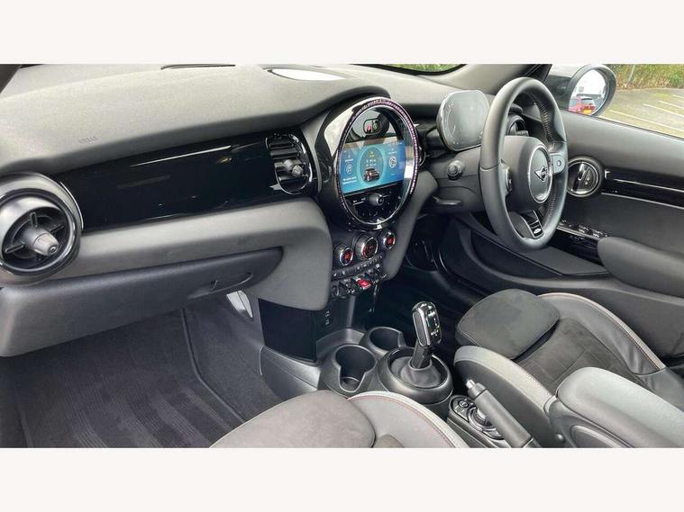 Apple CarPlay, Automatic start/stop function with brake energy recuperation, Compatible mobile phone bluetooth with audio streaming, Electro-mechanical speed dependant steering assistance, Flexible car sharing preparation, MINI Driving Modes - centre toggle switch to control driving setting (sport, mid and green), Mini E-call, MINI TeleServices, On board computer, Rear park distance control, Service interval indicator, Adaptive suspension, Double Vanos system, Fully variable valve control, Gear change indicator display, High precision injection, Performance Control, Steptronic transmission with double clutch, 8.8" touchscreen with LED ring, FM tuner and DAB digital radio, 3rd brake light, Automatic headlight activation switch, Body colour fuel filler cap, Chrome border high gloss black slats radiator grille, Dynamic brake lights, Electric front+rear windows, Exhaust tailpipe on left with chrome finisher, Heated rear window, Heated windscreen washer jets, JCW Aerodynamic kit - Front and rear bumpers with sporty JCW styling and part-painted side sills with MINI John Cooper Works door sill finishers, John Cooper Works rear spoiler, Metal door sill strips with MINI imprint, Model logo Cooper on right of tailgate, Rain sensor window wipers, Rear fog lights, Rear LED lights with union jack design, Rear side wing doors, Rear window wiper, Side scuttle panel with integrated indicator, Sun/heat protection glass, White indicator lenses, 12V Accessory socket in centre console, 3 seat bench in 2nd row, 4 lashing eyes in luggage compartment, 60/40 split folding rear seat, Anthracite headliner including grab handles and clothes hooks, Carbon black colour line - Knee roll and door armrest, Chrome interior highlights, Cupholders, Front and rear isofix with front passenger airbag deactivation, Front and rear velour floor mats, Glove compartment, Height and length steering column adjustment, Interior lighting with 12 different colours across the dashboard, underneath door bezel with illuminated laser-engraved design on central display, JCW Sport seats with integrated headrests, adjustable thigh support and John Cooper Works logo, Leatherette gearshift lever and handbrake gaiters, LED reading lights, vanity mirror lights, front foot well light and spotlight on front seats, Mechanical seat adjustment - forward/back & backrest for front seats and driver seat height adjust, Multifunction steering wheel, Single front passenger seat, Storage compartments in doors, Sunvisors with vanity mirrors, Walknappa leather steering wheel with grey seam and John Cooper Works badge on Piano Black lower steering wheel spoke, Piano black exterior pack - Mini Hatchback Cooper, 3 point seatbelts on all five seats, 6 Airbags - front, side, head and seat belt tensioners, Anti-lock braking system (ABS), Child locks on rear doors, DSC - Dynamic Stability Control, Front and rear disc brakes, Hill start assist, Single tone fanfare horn, Tyre pressure monitoring system, Alarm system with tilt sensor, monitoring doors, bonnet interior and tailgate, Electronic vehicle immobiliser, Start/stop toggle with keyless go, Piano black interior trim, Tool kit,