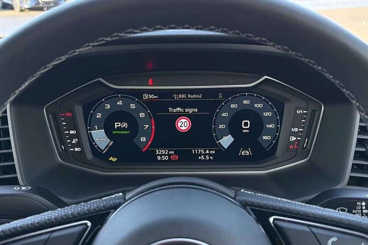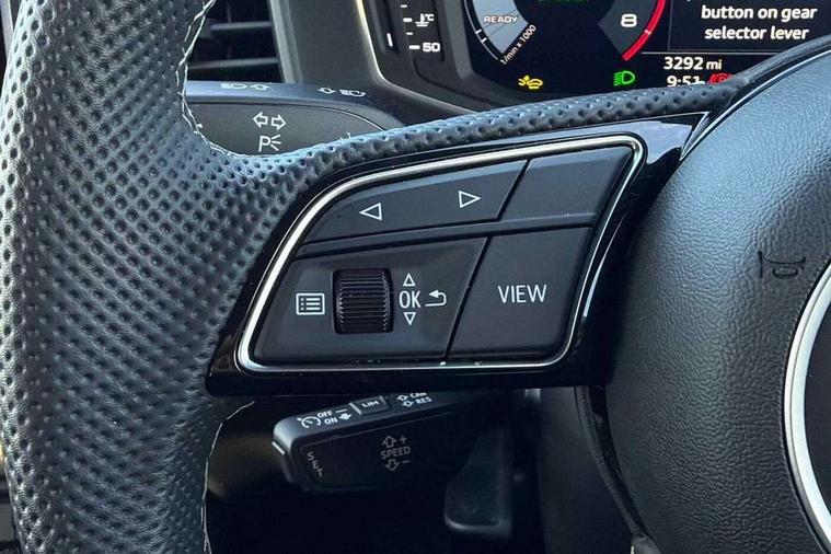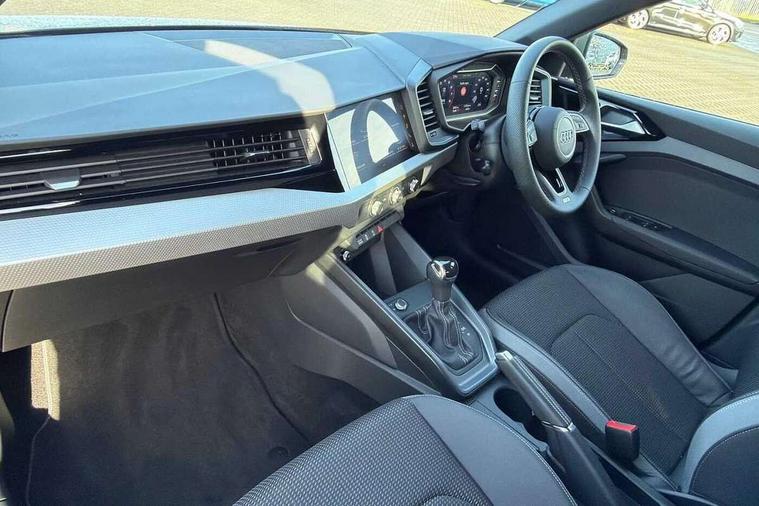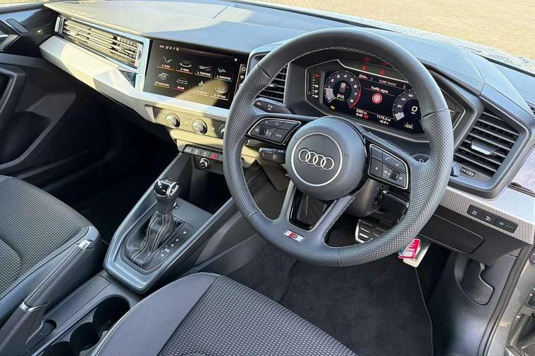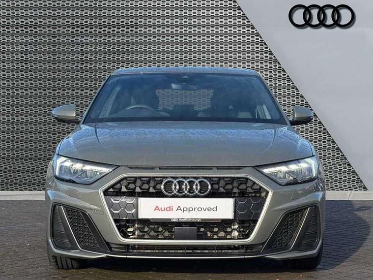 10.25" Digital instrument cluster display classis style instrument dials + speed, odometer, time, outside temperature, telephone menu + fuel level warning, Advanced driver attention and drowsiness monitor, Audi connect emergency call and service, Audi drive select, Audi remote connect and control, Audi smartphone interface, Bluetooth interface, Camera based traffic sign recognition, Cruise control, Driver's information system, Electromechanical power steering, Lane departure warning system, Rear parking sensor, Service interval indicator, Speed limiter, Start stop system with recuperation, Voice control system, Washer fluid level indicator, Sports suspension, 2 x USB type C connection points, 6 loudspeakers, DAB Digital radio, MMI radio plus with 10.1" colour MMI display screen and MMI touch, Auto dimming rear view mirror, Body coloured door mirrors, Door sill trims with aluminium inlays and S line logo in front, Electric front and rear windows, Electrically adjustable, heated, folding door mirrors with integrated LED side indicator, Front side air inlets in grained matt black and C frame in anthracite black, Headlight cleaning system, Heat insulating glass windscreen and side windows, Heated rear windscreen, High level LED brake light, LED daytime running lights, LED headlights with range control LED rear lights + dynamic rear indicators, Light and rain sensors, Privacy glass, Radiator grille and rear diffuser in matt anthracite black, Radiator protective grille frame in matt aluminium silver, Rear fog lights, Rear side wing doors, Rear wiper, S line badges on front wings, Side front spoiler lips in grained matt black, 12V socket in centre console with two cup holders, 3 rear seats with headrests, 3 seat bench in 2nd row, 3 spoke leather multi-function plus steering wheel features S badging and grips in perforated leather with contrast stitching, 40:60 Split folding rear seat or fully collapsed, Black cloth headlining, Front and rear velour black floor mats with contrast stitching in fine silver, Front head restraints, Front passenger seat, Height and reach adjustable steering wheel, Interior lighting includes roof module, front and rear reading lights and right luggage compartment lighting, ISOFIX child seat mounting for front passenger and outer rear seats including top tether attachment point of outer rear seats, Leather gear knob with aluminium trim, Leather handbrake grip, Manual air conditioning, Manual height adjustable for driver and front passenger seat, Manually adjustable lumbar support in front seats, Stainless steel pedals, Ambient lighting package - A1, Luggage compartment pack - A1, S line exterior styling pack - A1 Sportback, 3x3 point rear seatbelts, Audi pre-sense front with pedestrain and cyclist recognition, Brake assist function, Driver and front passenger airbag with front side and head airbags, Electronic Stability Control including ABS, EBD, ASR and EDL, Front passenger airbag deactivation switch, Hill hold assist, Manual rear child locks, Seatbelt height adjustment for front seats, Seatbelt monitoring, Tyre pressure loss indicator, Warning triangle and first aid kit, Anti theft alarm, Anti theft wheel bolts, Immobiliser, Remote control key with safelock, Aluminium trim for control switches, air vents and digital instrument cluster, Black dashboard, Silver grey inlays polygon structure in diamond paint finish, Structured grey accent surfaces insert of air vents, interior door handle recesses and centre console in quartz paint finish,