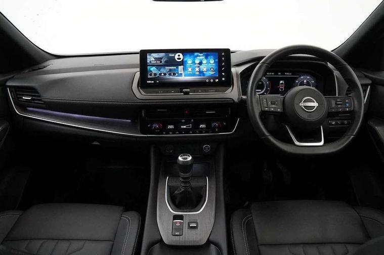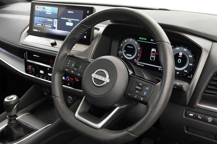 360 degree Intelligent around view monitor with moving object detection, Advanced windscreen head up display, Blind spot intervention, Blind spot warning, Drive assist, Drive assist custom mode, Drive modes (sport, normal, eco), Driver drowsiness and attention warning, Electric speed sensitive power steering, Emergency and breakdown call, Emergency lane keep assist, Emergency Stop Signal (ESS), Engine start/stop button, Event data recorder, Front and rear parking sensors, Full Digital 12.3" TFT Digital Combimeter, Google virtual personal assistance, Hands free power tailgate, Idle stop/start system, In-car WIFI hotspot, Intelligent Cruise control (ICC), Intelligent forward collision warning, Intelligent speed assist, Lane departure warning system, Nissan connect 12.3 inch touchscreen infotainment system, Nissan connect navigation with google maps, Nissan connect services 2.0 (Google Automotive System), Outside temperature sensor, Rear cross traffic alert, Reversing detection, Wireless Apple CarPlay/Android Auto, Wireless charging pad, Limited slip differential, 2 front USB-C ports, 2 rear USB-C ports, 6 speakers, AM/FM audio system with DAB, Bluetooth audio streaming, Auto dimming frameless rear view mirror, Auto rear wiper when reversing, Body colour mirror caps, Body coloured door handles, Bodyside mouldings, Chrome side window finisher, Electric auto folding door mirrors, Electrically adjustable and heated door mirrors with LED turn indicator, Follow me home headlights, Glossy black bumper inserts and fenders, High beam assist, Intelligent auto headlights, LED 3rd brake light, LED daytime running lights, LED headlights with adaptive driving beam, LED rear lights, LED sequential turn lights, One touch front and rear electric windows with remote opening and closing, One touch passenger window, Partially body coloured bumpers, Rear privacy glass, Rear roof spoiler, Rear side wing doors, Rear styling plate, Reverse tilting door mirrors, Shark fin antenna, Silver roof rails, Splash free rain sensing wipers, Super RED rear LED lights, Super UV and infrared cut glass, Thermaclear heated windscreen, 3 bench rear seats in 2nd row, 3 rear headrests, 60/40 split folding rear seat bench, Chrome interior door handles, Dark headlining, Driver seat back pocket, Dual zone automatic climate control with pollen filter, Fixed Glass roof with electric sunshade, Front door with bottle holders, Heated front seats, Heated steering wheel, Height adjustable front headrests, Leather shift knob, Luggage board system, Luggage space lighting, Multifunction steering wheel, Passenger seat back pocket, Quilted/PVC upholstery, Rear door bottle holders, RGB ambient light (Full area coverage), Single front passenger seat, Smooth leather steering wheel, Tilt/telescopic adjustable steering wheel, Two rear isofix child seat anchorage points with top tether, 3x3 point rear seatbelt pretensioners + load limiters, Autonomous emergency braking, Child locks on rear doors, Curtain and front side, far side airbags, Driver and passenger airbags, Driver, passenger and 2nd row rear seat belt reminder, Electric handbrake with auto hold function, Front seatbelt pretensioners + load limiters, Height adjustable front seatbelts, Hill start assist, intelligent front emergency braking, Rear automatic braking, Tyre pressure monitoring system, Vehicle dynamic control, Engine immobiliser, Intelligent key with walk away lock and approach unlock functions, Remote central door locking with deadlocking, Thatcham alarm, 19" Diamond cut alloy wheels, Tyre puncture repair kit,