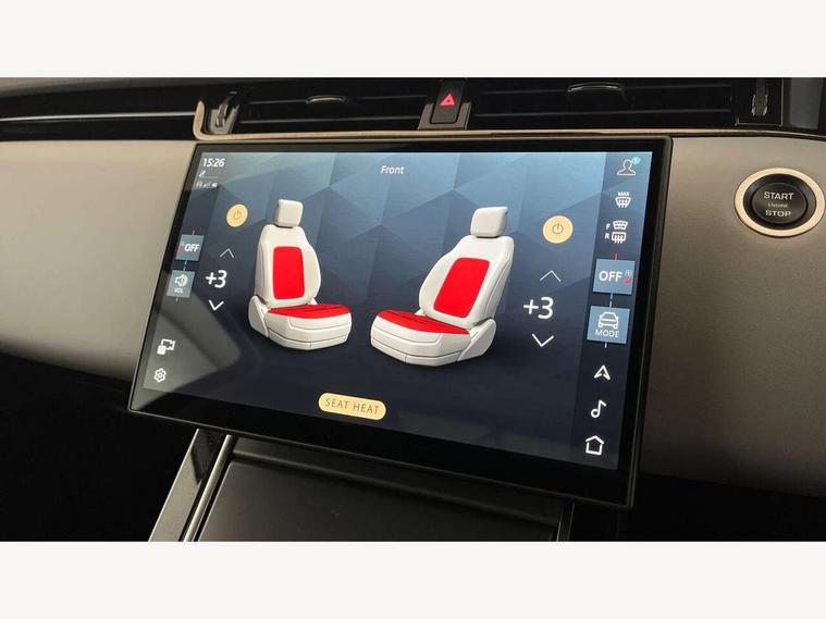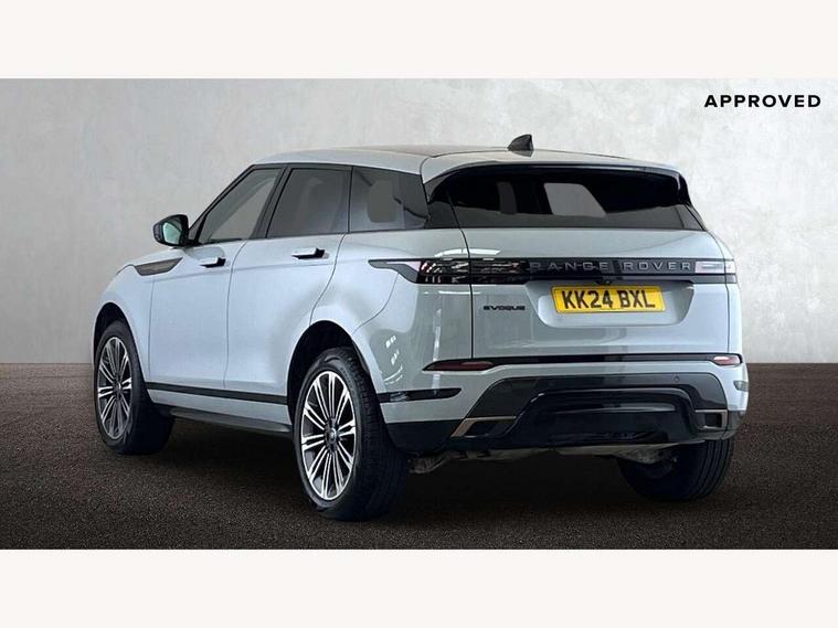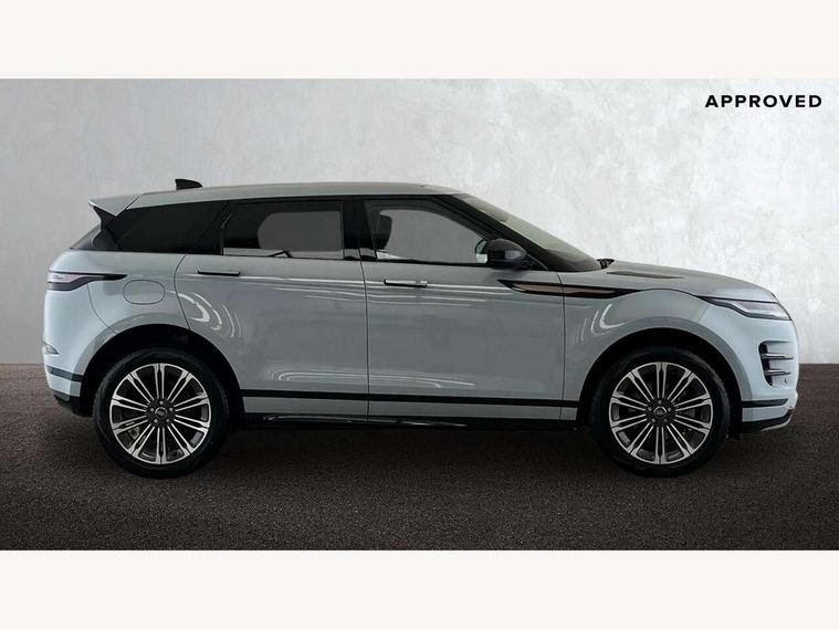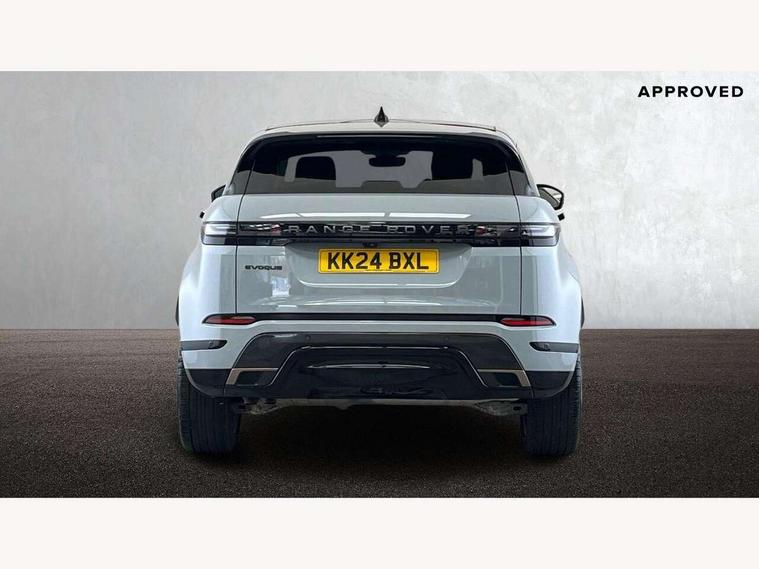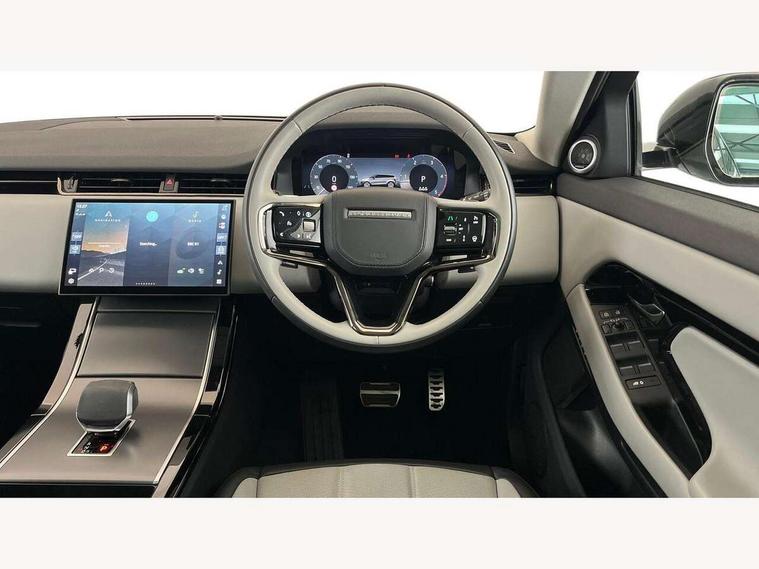 11.4" touch screen, Adaptive cruise control, Android Auto, Apple car play, Blind spot assist, Bluetooth connectivity, Brake pad wear indicator warning light, Driver condition monitor, eCall emergency system, Eco mode, Electronic power assisted steering (EPAS), Front and rear parking aid, InControl remote, Interactive driver display, Land Rover InControl apps, Lane keep assist, Pivi pro connected includes diamond pivi variant, smart settings, connected navigation pro, nuance speech licence, Powered tailgate/boot lid, Rear collision monitor, Rear traffic monitor, Traffic sign recognition with adaptive speed limiter, Voice control system, Wireless device charging, All terrain progress control, Diesel exhaust fluid (DEF) large tank, Efficient Driveline, Large fuel tank, Passive suspension, Terrain Response 2, Digital Audio Broadcast radio-DAB, Steering wheel mounted controls, Acoustic laminated windscreen, Auto headlights, Automatic headlight levelling, Electric windows with one touch open/close and anti trap, Flush deployable exterior door handles, Front and rear recovery eyes, Heated rear window with timer, Heated washer jets, Heated windscreen, Pixel LED headlights with signature DRL and LED tail Lights, Power fold, auto-dimming, heated door mirrors with approach lights and auto dimming driver side, Rain sensing windscreen wipers, Rear animated directional indicators, Rear fog lights, Rear side wing doors, Rear wiper, Side repeater indicators in mirror, Tailgate spoiler, Third brake light, Winter wiper park position, 14 way driver memory electric front seats with 2 way manual headrests + 4 way lumbar support, bolsters, 40:20:40 split folding rear seats with centre headrest and armrest, Ambient interior lighting, Bright metal pedals, Carpet mats, Chrome tread plates with range rover branding Includes stainless steel loadspace scuff plate with etched graphic, Customer configurable single point entry, Electrically adjustable steering column with memory function and easy entry/exit, Front and rear cupholders, Heated steering wheel, Isofix system on outer rear seats, Overhead lighting console, Overhead stowage for sunglasses, Passive front head restraints, Rear air vents, Rear head restraints, Satin chrome gearshift paddles, Single passenger seat, Sunvisors with illuminated vanity mirrors, Twin sliding front centre armrest, Online pack with data plan - Evoque, Power socket pack 2 - Evoque, 3 rear 3 point seatbelts, Anti-lock braking system (ABS), Brake hold function, Customer configurable autolock, DSC - Dynamic Stability Control, Electronic brake force distribution, Electronic parking brake, Electronic traction control, Emergency braking, Front and rear seatbelt reminder, Hill descent control, Hill launch assist, Low traction launch, Occupant protection assist, Passenger seat occupant detector, Power operated child locks, Roll stability control, Six airbags - Driver and passenger airbags/driver knee airbag/front side airbag and curtain airbags, Torque vectoring brake, Tyre pressure monitoring system, Alarm, Immobiliser, Intrusion sensor, Keyless entry, Locking wheel nuts,