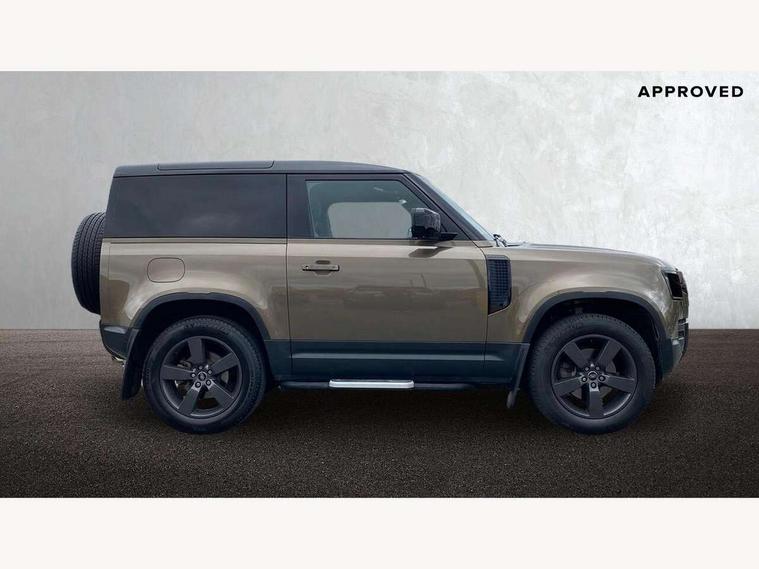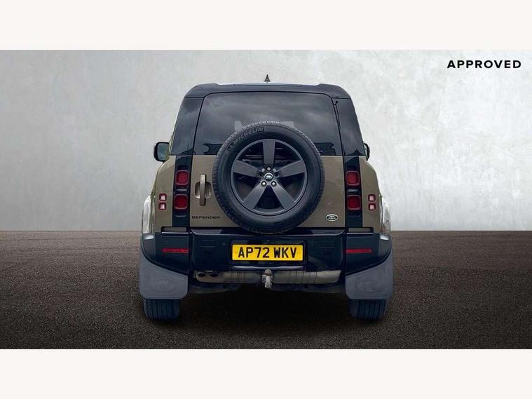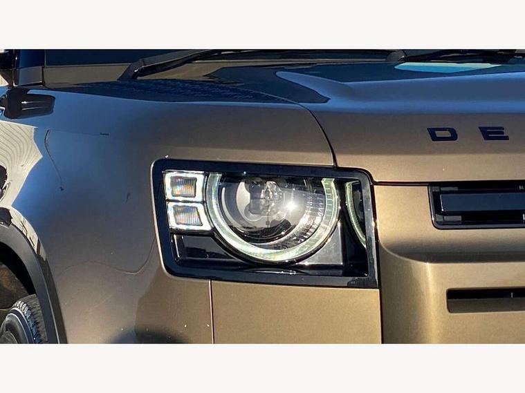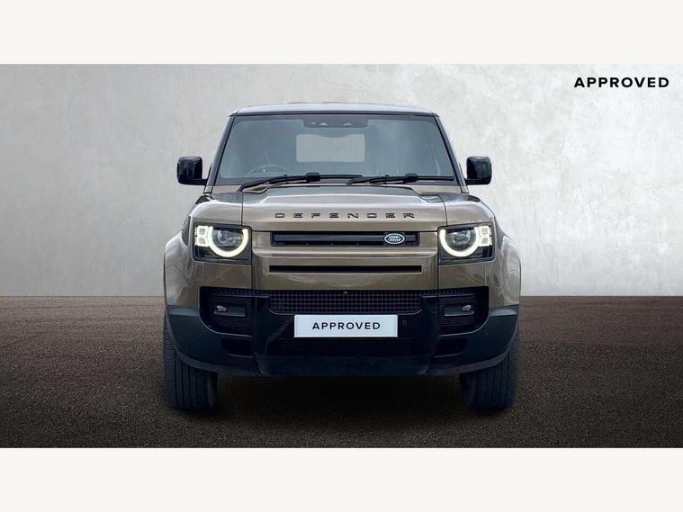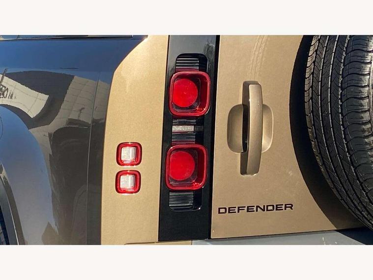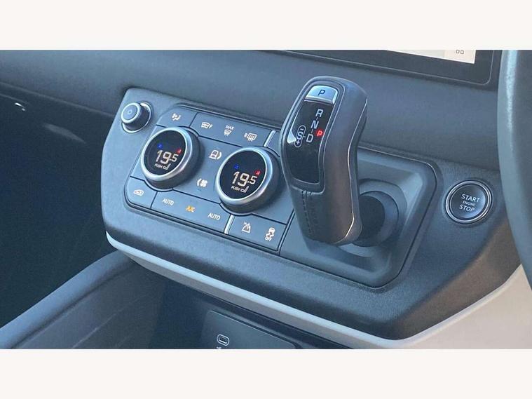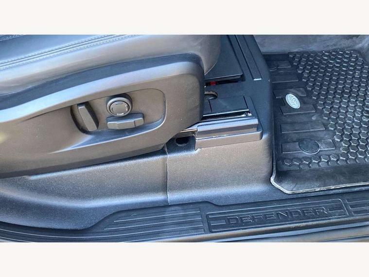 Customer Configurable Autolock, 360 parking aid, 3D Surround Camera with 360 View, 180 Rear View, Front Traffic Detection, Forward Vehicle Guidance, Tow Hitch Assist and clear sight Ground View, Blind spot assist, Brake Hold, Driver condition monitor, Electric power assisted steering (EPAS), Lane keep assist, Low traction launch, Pivi pro connected, Rear traffic monitor, Traffic sign recognition adaptive speed limiter, Trip computer, Tyre pressure monitor, Wade Sensing, Android Auto, Apple CarPlay, DAB Radio (Digital Audio Broadcasting), Meridian 280W sound audio system with 7 speakers with subwoofer, Alpine lights, Assisted tailgate, Auto High Beam Assist, Automatic headlight levelling, Automatic headlights and rain sensitive front wipers, Centre high mounted stop light, Electric heated/power fold door mirrors with approach lights and auto dimming driver side, Electric windows with one touch open/close and anti-trap, Exterior signage panel, Follow me home lighting, Front fog lights, Heated rear window with timer, Heated windscreen, LED tail light, Privacy glass, Puddle lights, Rear fog lights, Rear wash wiper, Side-hinged tailgate, Standard roof, Standard tread plates, Additional lashing points, Dual zone climate control, Durable rubber cabin flooring, Footwell lights, Full height bulkhead behind row 1 seats, Glovebox storage, High sided rubber mats, Loadspace cover, Loadspace hooks, Loadspace rubber mat, Manual adjustable steering column, Overhead stowage for sunglasses, Rear centre headrest, Rear reading light, Standard interior, Standard seating configuration, Sunvisors with illuminated vanity mirrors, Twin front cupholders, Upgraded loadspace LED lighting, Online pack - Defender with data plan, Brake pad wear indicator, Electronic traction control, Emergency braking, Front airbags, with passenger seat occupant detector, Power operated child locks, Remote for (e-Call, Optimised assistance call, InControl app, Climate, beep and flash and door), Seat belt reminder, Intrusion sensor, Keyless entry system, Locking wheel nuts, 8 speed automatic transmission, ABS and EBA, All wheel drive, CBC - (Cornering brake control), Dynamic stability control, Electronic brake force distribution, Electronic park brake, Gradient acceleration control, Hill Descent Control, Hill start assist, Particulate filter (DPF), Push button start, Roll stability control, Trailer stability assist, Twin speed transfer box (high/low range),