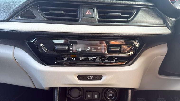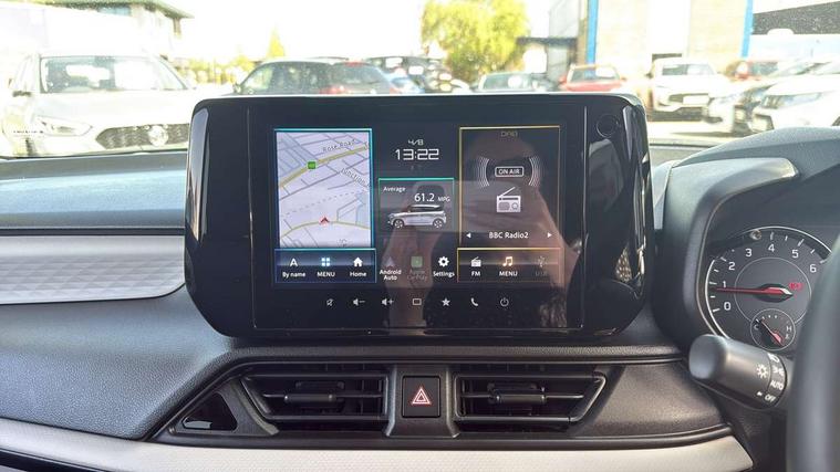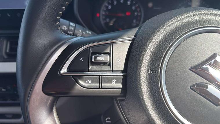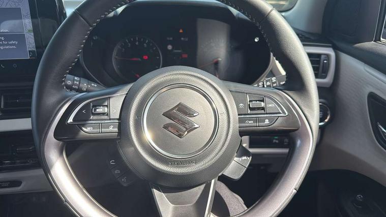 Adaptive cruise control, Automatic start/stop system, Blind spot monitoring, Colour LCD information display, Digital clock, Driver monitoring system, eCall, Fuel consumption display (average/instantaneous) and range display, Intelligent speed control support, Lane departure prevention, Lane departure warning system, Lane keeping assist (LKA), Low fuel level warning light, Navigation system, Outside temperature display, PAS, Rear cross traffic alert, Rear parking camera, Rear parking sensors, Remote fuel cap release, Smartphone integration with Apple CarPlay and Android auto, Suzuki connect, Tailgate, Traffic sign recognition, Weaving alert, 4 speakers + 2 tweeters, 9-inch infotainment display, Auxiliary input socket, Bluetooth audio streaming, DAB Digital radio, Steering wheel audio controls, USB Type A and C, 'Guide me home' headlamps, 1 speed with intermittent rear wiper + washer, 2 speeds front wiper with intermittent + washer, Automatic headlights, Black coloured A & B pillars, Black Upper and lower front grille, Body colour door mirrors and handles, C pillar trim moulding, Electric door mirrors, Electric front windows, Electric rear windows, Green tinted glass, Heated door mirrors, High beam assist, LED daytime running lights, LED High mounted stop light, LED position lamps, LED projector headlamps, LED rear combination lamp, Manual headlamp level control, Rain sensor, Rear fog lights, Rear privacy glass, Rear side wing doors, Rear spoiler, Side spoiler, 1 cup holder in rear, 12V Accessory socket in front console, 2 cup holders in front, 2 Isofix seat anchors, 3 bench rear seats in 2nd row, 3 rear head restraints, 3 spoke leather covered steering wheel, 60/40 split rear seats, Accessory socket, Centre console storage, Centre lower box, Child seat tether anchorages x 2, Chrome handbrake release button, Chrome interior door handles, Cloth upholstery, Door pockets with bottle holder, Driver/passenger sunvisors with ticket holders + vanity mirrors, Front cabin lights, Front headrests, Front map light, Front passenger side assist grip, Glovebox, Heated front seats, Heater, Height adjustable driver's seat, Luggage area lamp, Manual air conditioning with digital control panel, Material door trim ornament, Parcel shelf, Passenger seat back pocket, Pollen filter, Single front passenger seat, Tilt adjustable steering wheel, Tilt/telescopic adjustable steering wheel, 3 point ELR seatbelts for centre seat, 3 point ELR seatbelts front and rear, ABS+EBD+Brake assist, Curtain airbags, Driver airbag, Dual sensor brake support, ESP + traction control, Front and rear seatbelt reminder, Front passenger airbag, Front passenger airbag deactivation, Front seatbelt pretensioners with force limiters, Hill hold control, Rear child proof door locks, Rear seatbelts with pre-tensioners and load limiters, Side airbags with incorporated into front seats, Tyre pressure indicator, Deadlocks, Freewheeling key cylinders, Immobiliser, Keyless entry and start, Light - on and Key in reminder, Locking wheel nuts, Remote central locking, Painted instrument panel ornament, 16" Painted alloy wheels,