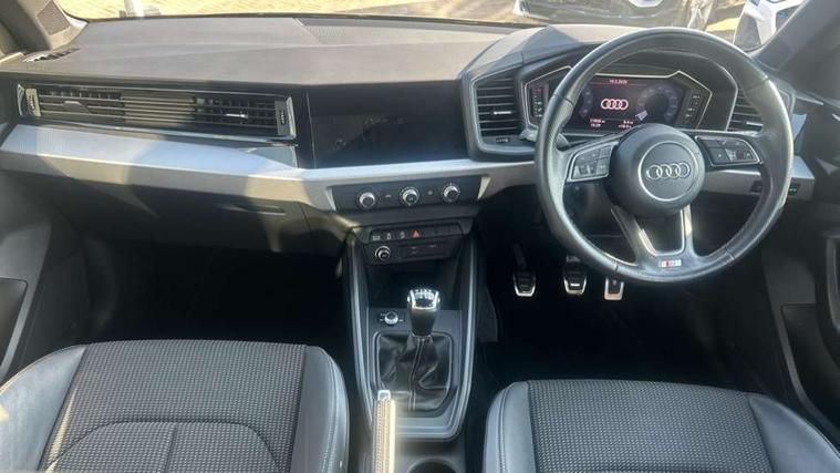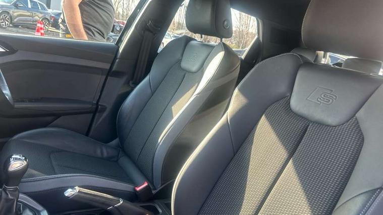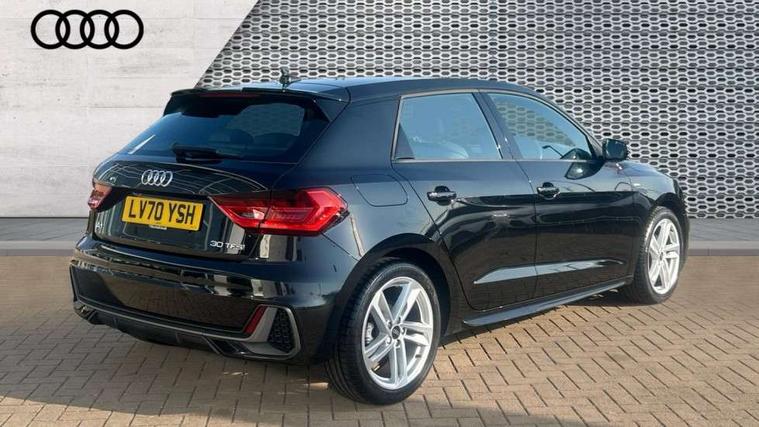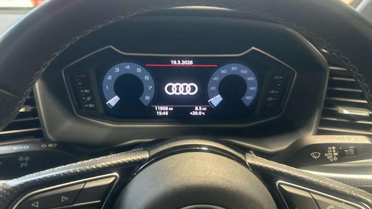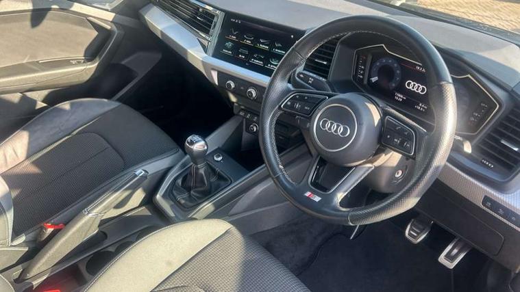 10.25" Digital instrument cluster display classis style instrument dials + speed, odometer, time, outside temperature, telephone menu + fuel level warning, Audi connect safety emergency and service including E-call, Audi drive select - power steering assistance + engine, Audi smartphone interface with connect compatible smartphone via USB directly MMI display + Nav, music, third party apps controlled via MMI controller, Automatic start/stop system, Bluetooth interface, Cruise control, Driver's information system, Electromechanical power steering, Lane departure warning system, Service interval indicator, Speed limiter, Voice control system, Washer fluid level indicator, Sports suspension, 1 x SDXC card reader, 2 x USB type C connection points, DAB Digital radio, MMI radio plus with 8.8" colour MMI display screen and MMI touch, Auto dimming rear view mirror, Body coloured door mirrors, Door sills with aluminium inlays and S Line logo, Electric front and rear windows, Electrically adjustable, heated, folding door mirrors with integrated LED side indicator, Front side air inlets in grained matt black and C frame in titanium black, Heat insulating glass windscreen and side windows, Heated rear windscreen, LED headlights with LED rear lights + dynamic rear indicators + headlight adjustment and high beam, turning light + LED daytime running lights, Radiator grille and rear diffuser in matt titanium black, Radiator protective grille frame in matt aluminium silver, Rain and light sensors, Rear fog lights, Rear wiper, S line badges on front wings, Side front spoiler lips in grained matt black, 12V socket in centre console with two cup holders, 3 rear seats with headrests, 40:60 Split folding rear seat or folded fully, Black cloth headlining, Driver and passenger seat with manual height adjust with forward and backwards adjustment, Front and rear black floor mats with contrast stitching in fine silver, Front head restraints, Height and reach adjustable steering wheel, ISOFIX child seat mounting for front passenger and outer rear seats including top tether attachment point of outer rear seats, Leather gear knob with aluminium trim, Luggage compartment light with front and rear reading lights, Manually adjustable lumbar support in front seats, Stainless steel pedals, LED interior lighting pack - A1, Luggage compartment pack - A1, S line exterior styling pack - A1 Sportback, 3x3 point rear seatbelts, Audi pre-sense front with pedestrain and cyclist recognition, Brake assist function, Driver and front passenger airbag with front side and head airbags, Electronic Stability Control including ABS, EBD, ASR and EDL, Front and rear seatbelt reminder, Front passenger airbag deactivation switch, Hill hold assist, Seatbelt height adjustment for front seats, Seatbelt monitoring, Tyre pressure warning light, Warning triangle and first aid kit, Anti theft alarm, Anti theft wheel bolts and loose wheel warning, Immobiliser, Remote central locking with 2 foldaway keys, Aluminium trim for control switches, air vents and digital instrument cluster, Silver grey inlays polygon structure in diamond paint finish, Structured grey accent areas including air vents, door handle recesses and centre console in quartz paint finish,