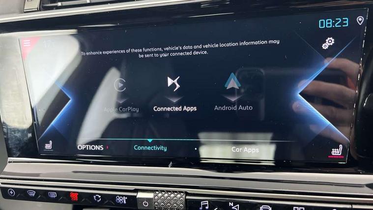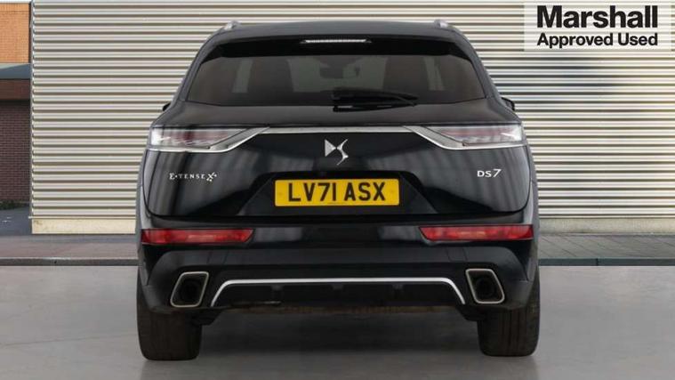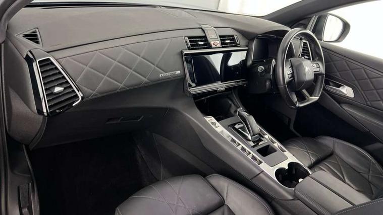 12 inch HD touchscreen, 12.3" digital instrument cluster display, Driver attention warning, DS Connect Box emergency and assistance system, DS Connect Nav - Connected 3D navigation, Electric power steering, Electric tailgate with handsfree function, Keyless entry and start, Emergency call service, Lane departure warning system, Mirror Screen with Apple car play/Android Auto, Multi function on board trip computer, Service indicator, Speed limit recognition and speed warning, Voice recognition, Wireless charging for smartphone, 3 pin domestic charging cable, 6.6 kW onboard charger, DS Active scan suspension, 2 USB sockets in rear, Bluetooth hands free and media streaming, DAB Digital radio, Acoustic, tinted and heated windscreen, Automatic headlights, Automatic lighting at car unlocking, Body colour door handles with chrome trim, Body coloured bumpers, Chrome roof rails, Chrome window surround, Chromed DS wings, Dark tinted rear windows, Defrosting door mirrors, Door mirrors including reverse gear angle memorisation, DS 3D LED rear lights, DS active LED Vision headlights, DS badge on bonnet with chrome inserts, E-tense badge on bonnet, E-tense monogram on the rear tailgate, Electric folding door mirrors with DS LED spotlights, Follow me home manual lighting, Frameless electrochrome interior rear view mirror, Front and rear door entry sill with DS design, Gloss black exterior door mirrors, Gloss black front grille, High beam assist, Laminated front/rear screens, LED daytime running lights, LED front fog lights with static cornering light function, Rear side wing doors, Rear window wiper, 3 seat bench in 2nd row, 60/40 split folding rear seat backrest, Aluminium sports pedals, B.R.M R180 timepiece, Chrome controls, Cloth sunvisors with LED courtesy mirror and ticket holder, DS inspiration badged front/rear carpet mats, E - tense leather gear knob, Electric folding rear headrests, Electric front cushion extensions, Electric lumbar adjustment, Flocked glasses storage on driver side, Front and rear door pockets, Front central armrest with storage, Front closed storage with USB connection point, Front double cupholders, Front head restraints, Front seat and rear pockets, Gear shift indicator, Heated front seats, Height and depth adjustable steering wheel, Massage function for front seats, Open storage on driver side, Premium leather steering wheel, Rear central armrest with storage, Rear double cupholders, Single front passenger seat, Two rear isofix mounting points, Auto comfort pack - DS 7, Electric seats pack - DS7, Modularity boot pack - DS7, 3x3 point rear seatbelts, ABS, Active city braking, Child safety lock, Driver, front passenger, front lateral and curtain airbags, Electric parking brake, Emergency braking system, ESP, Height adjustable front seatbelts with pretensioners and front and rear load limiter, Hill start assist, Rear curtain airbags, Safety kit including first aid kit, yellow vest and Warning triangle, Trailer stability control, Tyre pressure monitoring system, Automatic front doors and boot locking, Immobiliser, Perimetric and volumetric anti theft alarm, Remote central locking + deadlocks, Stop/ Start function, Polar white centre caps with DS logo,