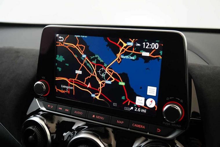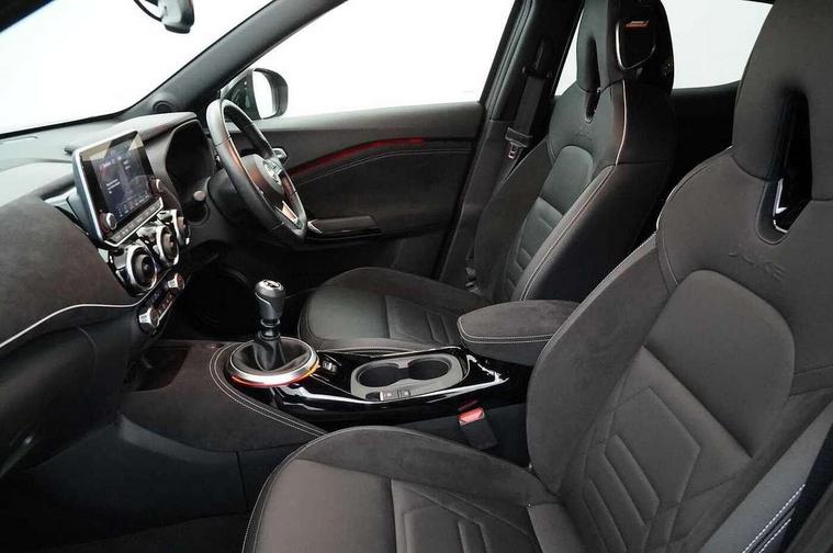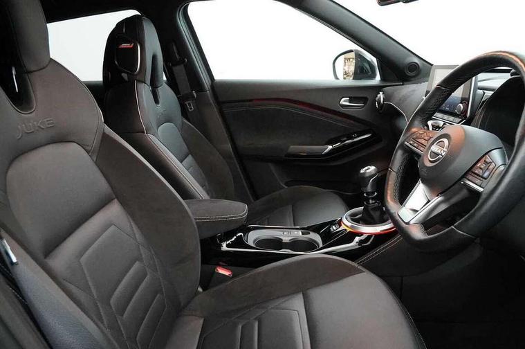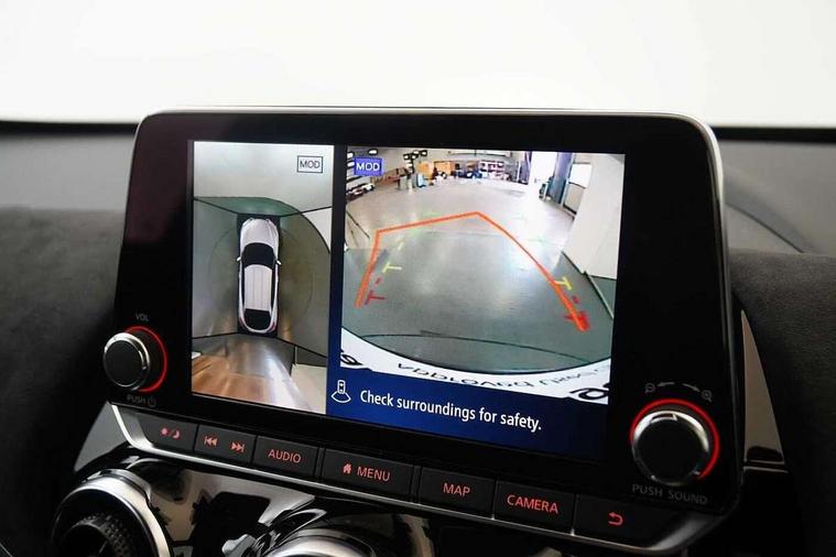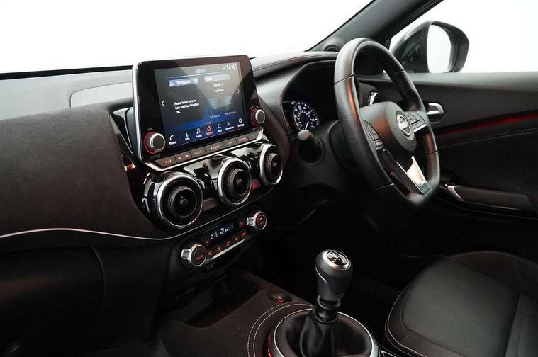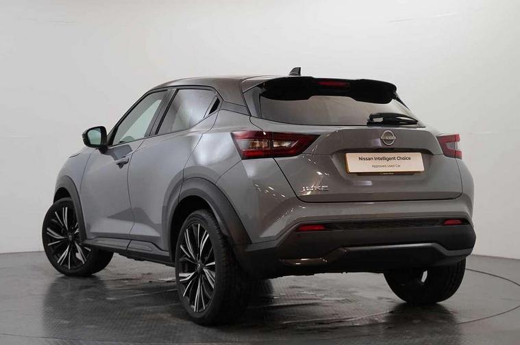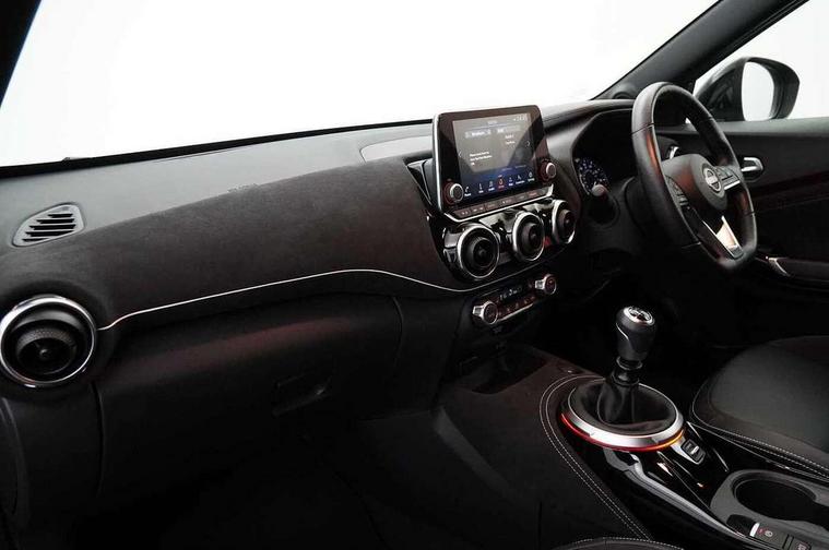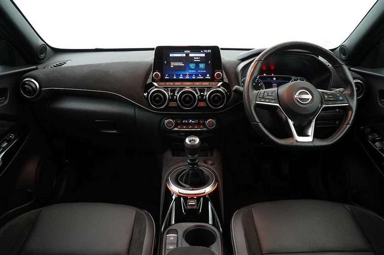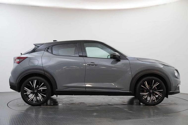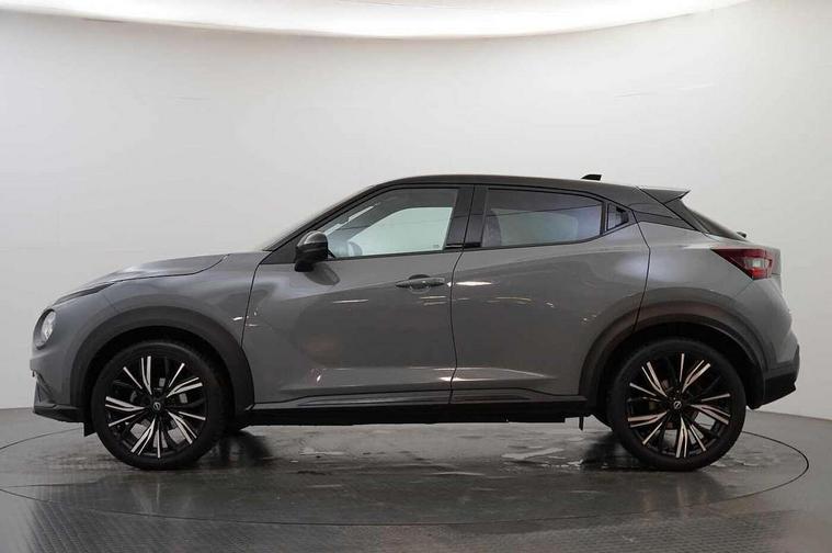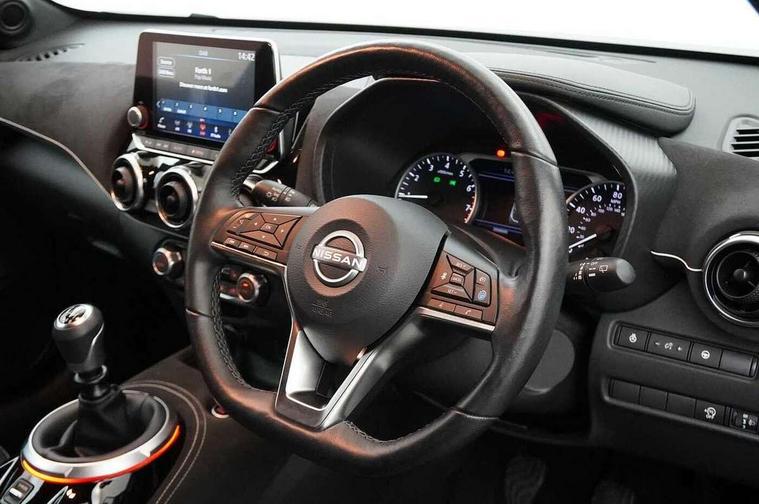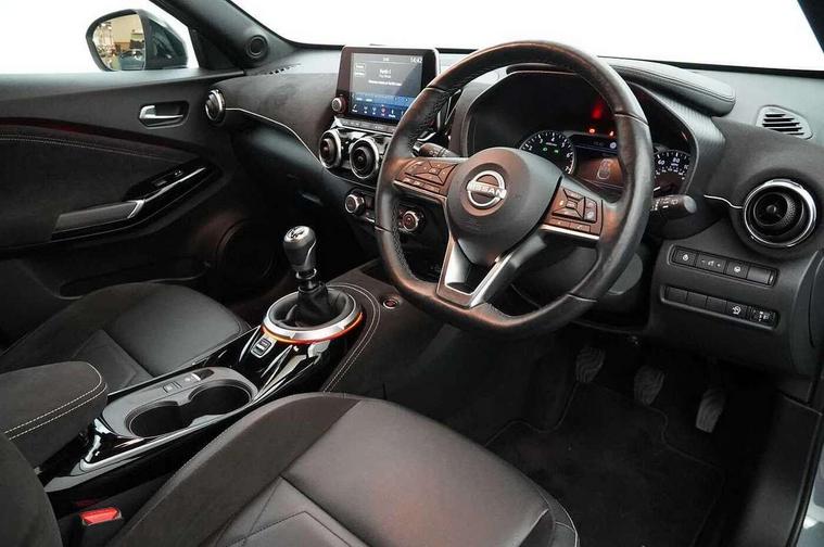 7" full colour TFT screen combimeter, Apple CarPlay and Google Android auto, Drive modes select (Eco, normal and sport), Emergency and breakdown call, Front parking sensor, Idle start/stop system, Intelligent lane intervention, Lane departure warning system, Nissan connect 8" touch screen entertainment system, Nissan connect nav with TomTom traffic, Nissan connect services and Wifi connection, Outside temperature sensor, Power Steering, Rear parking sensor, Traffic sign recognition, Trip computer, Voice recognition, Gasoline particulate filter, 10 Bose speakers 6 speakers and 2 headrest speakers for driver/passenger seats, Bluetooth system, USB, Aux-in and 12V socket, Bose personal sound stage control, DAB Digital radio, Rear console USB port, Auto dimming interior rear view mirror, Auto headlights, Automatic hazard signal with emergency stop signal, Body colour bumpers, Body colour door handles, Electrically adjustable door mirrors with integrated indicators, Follow me home headlights, Front and rear electric window with one touch driver window, Heated and auto folding door mirrors, High beam assist, LED daytime running lights, LED front fog lights, LED headlamps, LED rear fog lamp, LED rear lamps, Rain sensor windscreen wipers, Rear privacy glass, Rear side wing doors, Rear wiper, Satin silver front bumper finisher, Thermaclear heated windscreen, Three blink turn signal, 3 height adjustable rear headrests, 3 seat bench in 2nd row, 60/40 split folding rear seat, Automatic climate control, Card holder on driver sunvisor, Door ambient lighting, Driver and passenger sliding and reclining seats, Driver seat back pocket, Driver side rear coat hanger, Driver/passenger sunvisors and vanity mirrors, Front and rear cabin lights, Front armrest, Front door pockets with bottle holders, Front head restraints, Front passenger isofix child seat anchorage point, Front/rear passenger grab handles, Gear console ambient circle lighting, Grey synthetic leather kneepad, Heated front seats, Height adjustable driver's seat, Height adjustable passenger seat, Internal chrome door handles, Leather gearshift knob, Leather steering wheel, Luggage board, Luggage space lighting, Monoform sporty seats, Multifunction steering wheel, Passenger seat back pocket, Rear door bottle holders, Single front passenger seat, Telescopic steering wheel adjustment, Two cupholders in front centre console, Two rear isofix child seat anchorage points with top tether, Welcome light and console tray ambient lighting, Advanced safety shield pack - Juke, ABS with EBD and brake assist, Active ride control, Active Trace Control, Driver and passenger airbags, Driver and passenger side airbags, Electric handbrake with auto hold function, Electronic Stability Programme (ESP), Front and rear curtain airbags, Height adjustable seatbelts, Hill start assist, Intelligent emergency braking with pedestrian and cyclist recognition, Rear door child safety locks, Seatbelt reminder for driver/front passenger and rear seats, Single tone horn, Three 3 point rear seatbelts, Traction control, Tyre pressure monitoring system, VDC Dynamic Vehicle Control, Ventilated rear brake discs, Alarm, Immobiliser, Intelligent key and start push button with walk away lock and approach unlock functions, Remote central locking, 19" Akari alloy wheels,