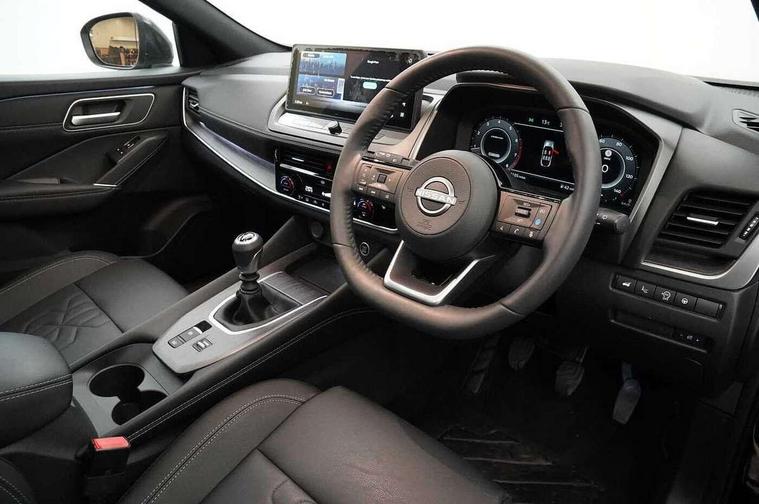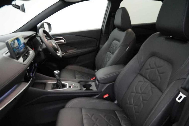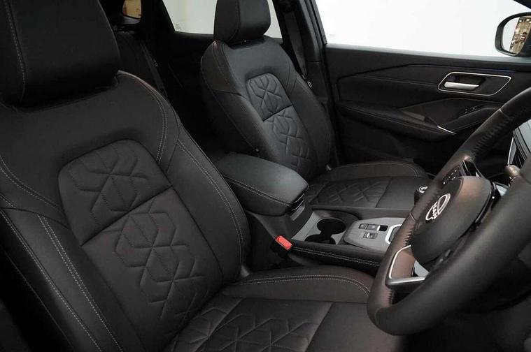 360 degree Intelligent around view monitor with moving object detection, Advanced windscreen head up display, Blind spot warning, Drive assist, Drive assist custom mode, Drive modes (sport, normal, eco), Driver drowsiness and attention warning, Electric speed sensitive power steering, Emergency and breakdown call, Emergency lane keep assist, Emergency Stop Signal (ESS), Engine start/stop button, Event data recorder, Front and rear parking sensors, Full Digital 12.3" TFT Digital Combimeter, Google virtual personal assistance, Hands free power tailgate, Idle stop/start system, In-car WIFI hotspot, Intelligent Cruise control (ICC), Intelligent driver alert system, Intelligent forward collision warning, Intelligent lane intervention, Intelligent speed assist, Lane departure warning system, Nissan connect 12.3 inch touchscreen infotainment system, Nissan connect navigation with google maps, Nissan connect services 2.0 (Google Automotive System), Outside temperature sensor, Rear cross traffic alert, Remote control services - door locks, lights, horn and car locator, Reversing detection, Traffic sign recognition with legal speed adjustment, Trip computer, Wireless Apple CarPlay/Android Auto, Wireless charging pad, Limited slip differential, 2 front USB-C ports, 2 rear USB-C ports, 6 speakers, AM/FM audio system with DAB, Bluetooth audio streaming, Auto dimming frameless rear view mirror, Auto rear wiper when reversing, Body colour mirror caps, Body coloured door handles, Bodyside mouldings, Chrome side window finisher, Electric auto folding door mirrors, Electrically adjustable and heated door mirrors with LED turn indicator, Follow me home headlights, High beam assist, Intelligent auto headlights, LED 3rd brake light, LED daytime running lights, LED headlights with adaptive driving beam, LED rear lights, LED sequential turn lights, One touch front and rear electric windows with remote opening and closing, One touch passenger window, Partially body coloured bumpers, Rain sensing wipers, Rear privacy glass, Rear roof spoiler, Rear side wing doors, Rear styling plate, Reverse tilting door mirrors, Shark fin antenna, Silver roof rails, Splash free rain sensing wipers, Super RED rear LED lights, Super UV and infrared cut glass, Thermaclear heated windscreen, 12v power socket in dashboard and luggage, 3 bench rear seats in 2nd row, 3 rear headrests, 60/40 split folding rear seat bench, Chrome interior door handles, Dark headlining, Driver and passenger sunvisors with illuminated vanity mirrors, Driver seat back pocket, Dual zone automatic climate control with pollen filter, Electrically adjustable driver seat, Electrically adjustable lumbar support for driver, Fixed Glass roof with electric sunshade, Front centre console and armrest, Front cupholders, Front door with bottle holders, Heated front seats, Heated steering wheel, Height adjustable front headrests, Height adjustable passenger seat, Leather shift knob, Luggage board system, Luggage space lighting, Manual adjustable lumbar support for passenger, Multifunction steering wheel, Passenger seat back pocket, Quilted/PVC upholstery, Rear door bottle holders, Rear seat armrest with 2 cupholders, RGB ambient light (Full area coverage), Single front passenger seat, Smooth leather steering wheel, Tilt/telescopic adjustable steering wheel, Two rear isofix child seat anchorage points with top tether, 3x3 point rear seatbelt pretensioners + load limiters, ABS with EBD and brake assist, Autonomous emergency braking, Child locks on rear doors, Curtain and front side, far side airbags, Driver and passenger airbags, Driver, passenger and 2nd row rear seat belt reminder, Electric handbrake with auto hold function, Front seatbelt pretensioners + load limiters, Height adjustable front seatbelts, Hill start assist, Intelligent blind spot intervention, intelligent front emergency braking, Intelligent rear automatic braking, Tyre pressure monitoring system, Vehicle dynamic control, Engine immobiliser, Intelligent key with walk away lock and approach unlock functions, Remote central door locking with deadlocking, Thatcham alarm, 19" Diamond cut alloy wheels, Tyre puncture repair kit,