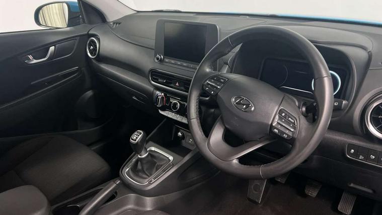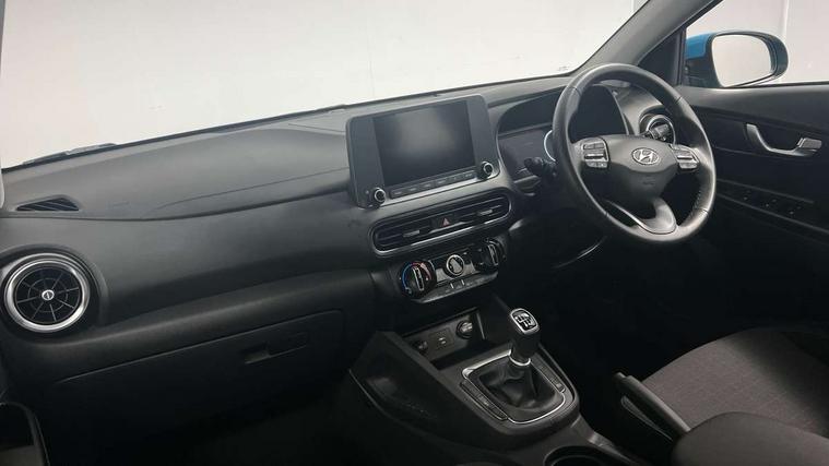 8" Touchscreen display audio + smart device integration, Bluetooth connectivity, Cruise control + speed limiter, Digital clock, Driver attention warning, Driver supervision instrument cluster with 10.25" LCD display, eCall emergency call system, Forward collision avoidance assist with pedestrian detection, Lane follow assist, Lane keep assist, Leading vehicle departure alert (LVDA), Parking system with rear camera and guidance system, PAS, Phone connection with apple carPlay and android auto, Rear parking sensor, Roadside assistance, Windscreen washer fluid sensor and warning indicator, 6 speed intelligent manual transmission, 6 speakers (2 front, 2 tweeters, 2 rear), Front USB ports, RDS and Digital DAB, Steering wheel mounted audio/phone controls, Automatic headlights with dusk sensor, Body colour door mirrors and handles, Door mirror integrated indicators, Electric front/rear windows with drivers one touch/anti-trap, Electrically adjustable and heated door mirrors, Halogen headlights, Halogen rear lights, LED daytime running lights, Positioning Lights - LED, Rain sensor, Rear roof spoiler with integrated LED brake light, Rear side wing doors, Rear wiper, Roof rails, Tinted glass with front door glass and windscreen with shade band, 12V power outlet in front console, 3 seat bench in 2nd row, 60/40 split folding rear seat, Adjustable head restraints, Air conditioning, Centre interior light, Cloth upholstery, Door scuff plate, Driver's seat height adjustment, Driver/passenger sunvisors and illuminated vanity mirrors, Front interior light, Front passenger seat manual adjustments, Height/reach adjustable steering column, Isofix rear child seat fastenings, Leather wrapped steering wheel and gear knob, Luggage compartment lighting, Luggage hooks, Metal paint effect interior door handles, Parcel shelf, Rear centre console with air vents, Single front passenger seat, Sunglasses holder, Vertical adjustment rear head restraints, Trailer wiring package - Kona, Airbags - front, front side and curtain airbags, Anti-lock brake system (ABS), Childproof rear door locks, Downhill brake control, EBD + Brake Assist, Electronic stability control, Fasten seatbelt reminder, Fixed 3 point for second row centre passenger seatbelt, Front seatbelt pretensioners, Height adjustable front seatbelts, Hill start assist control (HAC), Manual parking brake, Passenger airbag deactivate switch, Rear seat alert, Traction control, Tyre pressure monitoring system, Alarm/immobiliser, Deadlocks, Folding key, Locking wheel nuts, Remote central locking, 17" Alloy wheels,