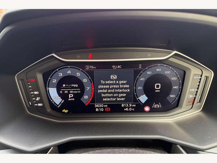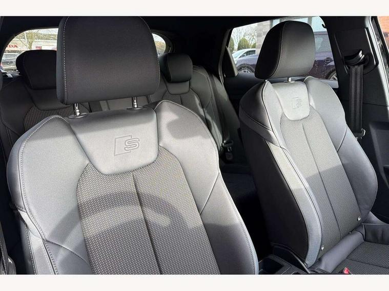 10.25" Digital instrument cluster display classis style instrument dials + speed, odometer, time, outside temperature, telephone menu + fuel level warning, Advanced driver attention and drowsiness monitor, Audi connect emergency call and service, Audi drive select, Audi remote connect and control, Audi smartphone interface, Bluetooth interface, Camera based traffic sign recognition, Cruise control, Driver's information system, Electromechanical power steering, Lane departure warning system, Rear parking sensor, Service interval indicator, Speed limiter, Start stop system with recuperation, Voice control system, Washer fluid level indicator, Sports suspension, 2 x USB type C connection points, 6 loudspeakers, DAB Digital radio, MMI radio plus with 10.1" colour MMI display screen and MMI touch, Auto dimming rear view mirror, Body coloured door mirrors, Door sill trims with aluminium inlays and S line logo in front, Electric front and rear windows, Electrically adjustable, heated, folding door mirrors with integrated LED side indicator, Front side air inlets in grained matt black and C frame in anthracite black, Headlight cleaning system, Heat insulating glass windscreen and side windows, Heated rear windscreen, High level LED brake light, LED daytime running lights, LED headlights with range control LED rear lights + dynamic rear indicators, Light and rain sensors, Privacy glass, Radiator grille and rear diffuser in matt anthracite black, Radiator protective grille frame in matt aluminium silver, Rear fog lights, Rear side wing doors, Rear wiper, S line badges on front wings, Side front spoiler lips in grained matt black, 12V socket in centre console with two cup holders, 3 rear seats with headrests, 3 seat bench in 2nd row, 3 spoke leather multi-function plus steering wheel features S badging and grips in perforated leather with contrast stitching, 40:60 Split folding rear seat or fully collapsed, Black cloth headlining, Front and rear velour black floor mats with contrast stitching in fine silver, Front head restraints, Front passenger seat, Height and reach adjustable steering wheel, Interior lighting includes roof module, front and rear reading lights and right luggage compartment lighting, ISOFIX child seat mounting for front passenger and outer rear seats including top tether attachment point of outer rear seats, Leather gear knob with aluminium trim, Leather handbrake grip, Manual air conditioning, Manual height adjustable for driver and front passenger seat, Manually adjustable lumbar support in front seats, Stainless steel pedals, Ambient lighting package - A1, Luggage compartment pack - A1, S line exterior styling pack - A1 Sportback, 3x3 point rear seatbelts, Audi pre-sense front with pedestrain and cyclist recognition, Brake assist function, Driver and front passenger airbag with front side and head airbags, Electronic Stability Control including ABS, EBD, ASR and EDL, Front passenger airbag deactivation switch, Hill hold assist, Manual rear child locks, Seatbelt height adjustment for front seats, Seatbelt monitoring, Tyre pressure loss indicator, Warning triangle and first aid kit, Anti theft alarm, Anti theft wheel bolts, Immobiliser, Remote control key with safelock, Aluminium trim for control switches, air vents and digital instrument cluster, Black dashboard, Silver grey inlays polygon structure in diamond paint finish, Structured grey accent surfaces insert of air vents, interior door handle recesses and centre console in quartz paint finish,