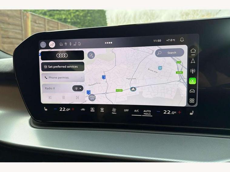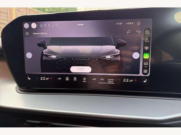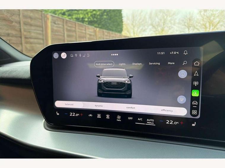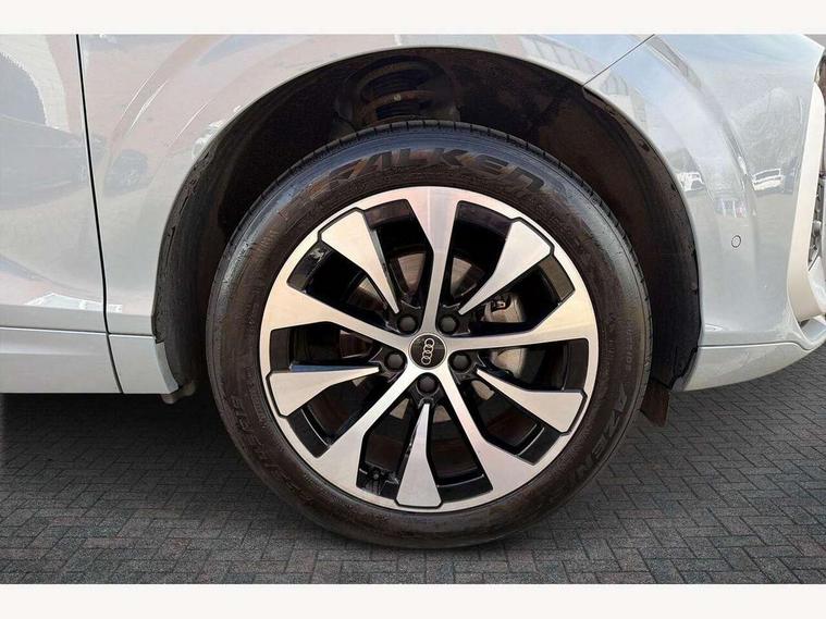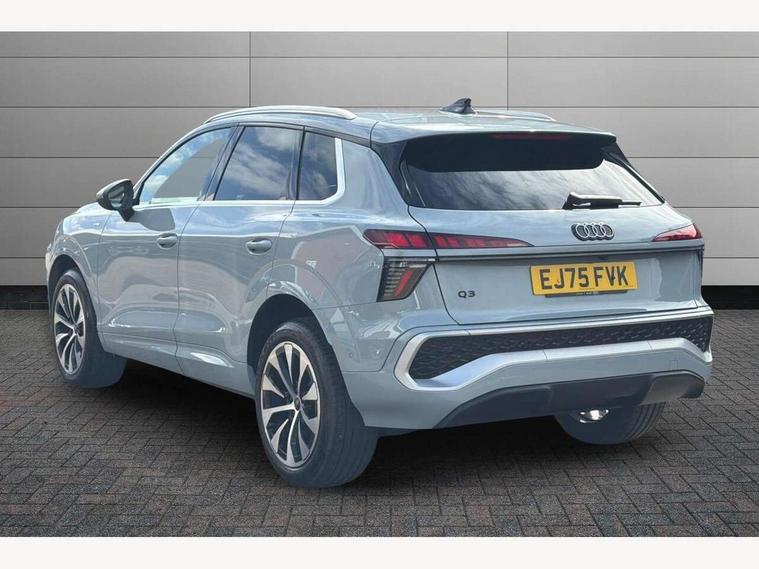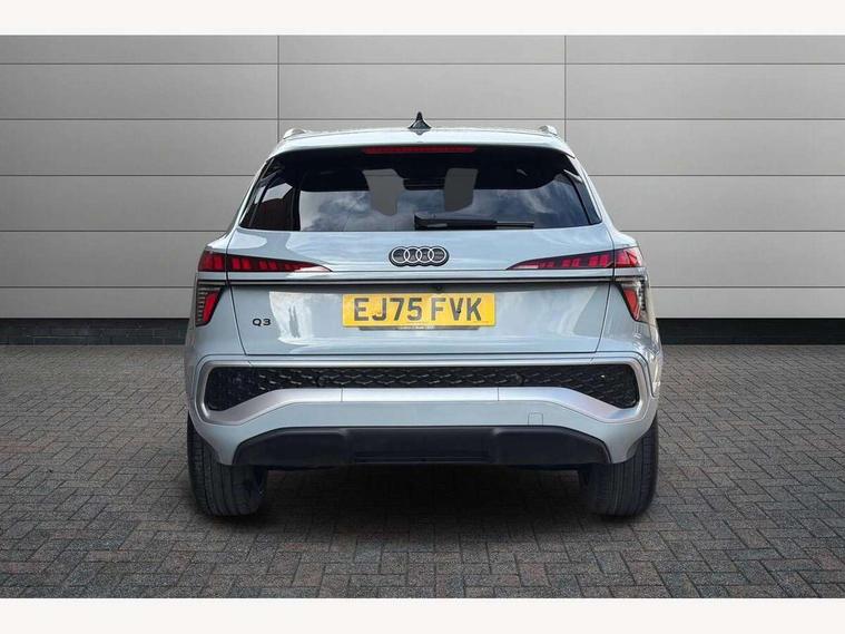 Adaptive cruise control, Audi connect emergency call and service, Audi connect remote and controls, Audi drive select (Balanced/Individual, effeciency, comfort and dynamic), Audi virtual cockpit plus - 11.9" display, Bluetooth interface, Camera based traffic sign recognition, Driver attention and fatigue monitor with driver monitoring, Front cross traffic assist, Lane departure warning with emergency assist, Panoramic curved display with 12.8" MMI navigation plus and MMI touch, Park assist plus with parking system and 360 display, Phonebox light with wireless charging, Reversing camera, Smartphone interface includes wireless Apple carplay/Android Auto, Start/stop system, Swerve assist and turn assist, Traffic sign based speed limiter, Voice control system with natural language interaction, Comfort suspension, Petrol Particulate Filter, 2 USB-C ports with charge and data functions, Audi sound system with 10 loudspeakers, subwoofer, 8 channel amplifier with 260 watts, DAB digital radio module, Acoustic glass for front door windows, Acoustic windscreen, Aluminium roof rails, Aluminium window trim, Audi Q3 lettering on the B-pillars, Auto dimming door mirrors, Auto dimming rear view mirror, Body colour door mirrors, Contrasting finish in volcano grey, Electrically folding, adjustable and heated door mirrors with integrated LED side indicators and kerb view function for passenger side, Full paint finish, Illuminated door sills with aluminium inserts at the front with S logo, LED daytime running lights, LED headlights plus with LED rear lights pro with continous light strip, illuminated Audi rings, rear, LED third brake light, Loading sill protector in stainless steel, Main beam assist, Privacy glass - dark tinted rear window, rear door and side windows, Projection light in the exterior mirrors - Projects a graphic element onto the ground, Q3 badging on the rear, Rain and light sensors, Rear side wing doors, Rear window, rear door windows and rear side windows in clear glass, Rear wiper, Sports bumpers, 3 seat bench in 2nd row, 3 spoke flat top and bottomed leather multi function sport steering wheel with gear shift paddles and "S" badging, 3-zone deluxe automatic air conditioning, 4 way lumbar support for the front seats - electric with horizontal and vertical adjustment in four directions, Black cloth headlining, Front and rear floor mats, Front and rear headrests, Front centre armrest, Heated front seats, Height and reach adjustable steering wheel, Interior storage compartment, Leather/artificial leather upholstery combination with S emblem + front sports seats, Luggage compartment lid, electrically opening and closing, Manual front seats with height adjustment, Rear seat bench plus with split folded 40:20:40, Single front passenger seat, Stainless steel pedals, Steering wheel operating unit, gloss black, Storage compartment in front centre console, Ambient lighting package pro - Q3, S line exterior styling pack - Q3, 3x3 point rear seatbelts, Convenience key with safelock, Driver and front passenger airbag with passenger airbag deactivation, Electromechanical parking brake, Electronic stabilisation control including ABS, ASR and EDL, First aid kit with warning triangle and high visibility vests, Front emergency brake assist, Hill hold assist, i - Size child seat mounting on the front passenger side and i - Size and top tether on the outer rear seats, Power operated child locks, Seatbelt monitoring, Three point automatic belts with belt tensioner and height adjustment, Tyre pressure loss indicator, Anti theft wheel bolts, Remote central locking, Thatcham approved category 1 anti theft alarm, Dark aluminium divergence inlay, Interior elements in dinamica microfibre, Interior trims in aluminium look, Tool kit and Jack,