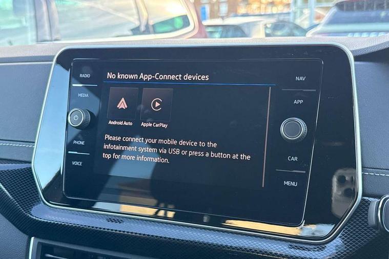 'Lights On' Reminder warning buzzer, 10.25" Digital cockpit pro, Advanced driver attention and drowsiness monitor, Blind spot monitoring, Car information display, Driver profile selection including ECO function, Dynamic road sign display, E-Sim card for online connectivity, eCall emergency call system, Front and rear parking sensors, Front assist, forward collision warning, autonomous emergency braking and speed limiter, Low washer fluid warning light, Multifunction computer with visual gear change recommendation for fuel consumption, Multifunction front facing camera for distance control, Operating permit alteration, Power assisted steering, Predictive adaptive cruise control, Preparation for navigation system with media and internet package, Preparation for We connect and We connect plus, Semi-automated driving assistance, travel assist including lane keeping system Lane Assist and emergency assisst, Speedo, rev counter, electronic odometer, trip, service interval display, exterior temperature and fuel gauge, Warning sound and light for doors and tailgate open, Warning sound and light for front seatbelts unfastened, Wireless Car net app connect with Apple CarPlay, combined functionality of Apple CarPlay/Android Auto and MirrorLink, Wireless charging, Misfuel prevention device, Start-stop system with battery regeneration (recuperation - energy recovery during braking), 2 USB C ports in front, 2 USB charging sockets on the centre console in the rear charging capacity upto 45W, Diversity antenna for FM reception, Music playback - MP3, WMA and AAC files, Radio, Automatic dimming interior rear view mirror, Automatic hazard lights activation under emergency braking, Automatic headlight control with LED separate daytime running light and coming home and leaving home feature, Body colour door handles, Body colour door mirrors, Body coloured bumpers, Dynamic headlight range control with self adjusting whilst driving, Electric folding door mirror, adjustable, heated with front passenger exterior mirror lowering function, Exterior mirrors convex on the left and aspherical on the right, Front and rear electric windows, Front door sill protectors with R-Line logo, Galvanised body, Heat insulating and laminated safety glass windshield, Heat insulating darkened glass in side and rear windows, High Beam Assist, automatic sensing for switching between dipped and main beam, LED rear combination lights, LED third brake light, Lower door sills and door pillars in black, Privacy glass for rear side windows and rear window, Rain sensor, Rear fog light on one side, reversing light on both sides, Rear side wing doors, Rear window aerial, Rear window wiper with intermittent control, Reflectors in all doors, Scuff plates, Tailgate with integrated roof spoiler, 12V Accessory socket in centre console, 2 Front and rear reading lights incorporating LED technology, 3 rear head restraints, 3 seat bench in 2nd row, 60/40 split folding rear seat backrest, Air care climatronic 2 zone air conditioning system, Ambient lighting, Brushed stainless steel pedals, Chrome plated radiator grille inserts, air vent surrounds and light switch surrounds, Cloth upholstery, Comfort front sport seats, Door and side trim panel, Drawer under drivers seat, Driver and front passenger sunvisor with vanity mirror, Dust and pollen filter, Front + rear carpet mats, Front centre armrest with storage compartment, Front footwell illumination, Front seat back storage pockets, Glove compartment door with light, Heated front seats, Heating and fresh air system with 4 stage blower, Height/reach adjust steering wheel, Instrument lighting white adjustable panel illumination, Interior light with switch off delay and dimmer, Isofix anchors for child seats on outer rear seats and front passenger seats, Leather gearshift handle, Leather wrapped multifunction steering wheel, Luggage compartment floor, Luggage compartment lighting, Manual front seats with height adjustment, Padded dashboard, Removable luggage compartment cover, Single front passenger seat, Storage compartment in drivers and front passengers door, Titanium black roof lining, Unsplit sliding rear seat bench, 3 point outer rear seat belts with ECE label, 3 Point seatbelt for centre rear seat, Anti-lock Braking System (ABS) with Hydraulic Brake Assist (HBA), Automatic post collision braking system, Disc brakes in front, Disc brakes in rear, Driver and front passenger safety-optimised head restraints, Drivers and Front Passengers airbags with front passengers airbag deactivation switch, ESC with EDL and ASR (traction control), Extended and predictive pedestrian/cyclist protection, Front and rear passenger curtain airbag system including front side airbags, Height adjustable front 3 point seatbelts + pretensioners, Hill start assist, Pre crash preventive occupant protection, Proactive passenger protection system in combination with front assist, Rear door child safety locks, Rigid safety cell with front and rear crumple zones, Single tone horn, Tyre pressure loss indicator, Volkswagen roadside assistance, Alarm with interior protection, Anti theft alarm system, Electronic engine immobiliser, Remote tailgate unlocking using key fob, Titanium Black Decorative inserts - R Line, Low rolling resistance tyres,