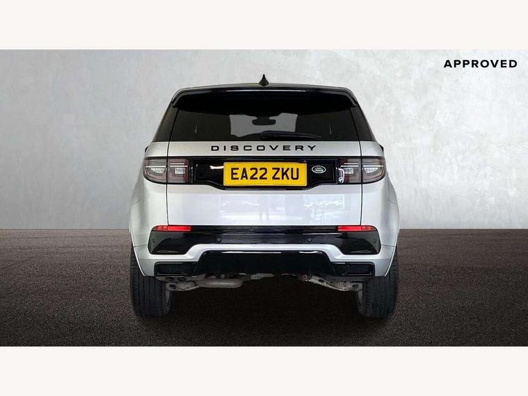 10" touch screen, Adaptive cruise control, Android Auto, Apple CarPlay, Blind spot assist, Clear exit monitor, Driver condition monitor, eCall emergency call system, Front and rear parking aid, InControl remote premium, Lane keep assist, Locking fuel flap, PAS, Pivi Pro connected navigation system with upgraded Infotainment, Powered tailgate/boot lid, Push button start, Rear collision monitor, Rear traffic monitor, Service interval indicator, Traffic sign recognition with adaptive speed limiter, Trip computer, Wade Sensing, All terrain progress control, Coil suspension system, Diesel particulate filter, Dynamic stability control, Terrain Response 2, Bluetooth connectivity including audio streaming, Digital Audio Broadcast radio-DAB, Steering wheel mounted audio controls, 3rd brake light, Automatic headlight levelling, Automatic headlights, Electric front/rear windows, Electric heated/power fold door mirrors with approach lights and auto dimming driver side, Fixed panoramic sunroof with powered sunblind, Front and rear recovery eyes, Heated rear window, Heated windscreen including heated washer jets, No badges, Privacy glass, R Dynamic badge, Rain sensing windscreen wipers, Rear fog lights, Rear side wing doors, Rear wing door, Rear wiper, 5 seats, Bright metal pedals, Centre console with armrest, Footwell lights, Front and rear grab handles, Front passenger isofix child seat attachment, Loadspace cover, Loadspace light, Overhead lighting console, Overhead stowage for sunglasses, Rear headrests, Satin chrome gearshift paddles, Sunvisors with illuminated vanity mirrors, Tilt/reach adjustable steering wheel, Black exterior pack - Discovery sport R-Dynamic SE/HSE, Online pack with data plan - Discovery, 3 point seatbelts on all seats, ABS, Brake hold function, Child locks on rear doors, Collision mitigation braking system, Cornering brake control (CBC), Driver/Front Passenger airbags, Drivers knee airbag, Electronic brake force distribution, Electronic parking brake, Emergency brake assist, ESP + traction control, Hill descent control, Hill launch assist, Pedestrian airbag system, Rear seat ISOFIX, Roll stability control, Side and curtain airbags for front and 2nd row seats, Trailer stability control, Tyre pressure monitoring system, Battery Back Up System (BBUS) with tilt sensor, Global lock and unlock switch on driver door, Intrusion sensor, Keyless entry, Locking wheel nuts, Centre stack rails in noble chrome,