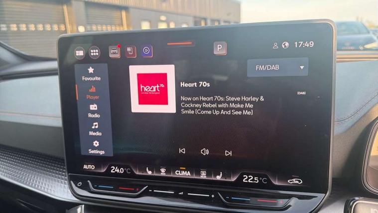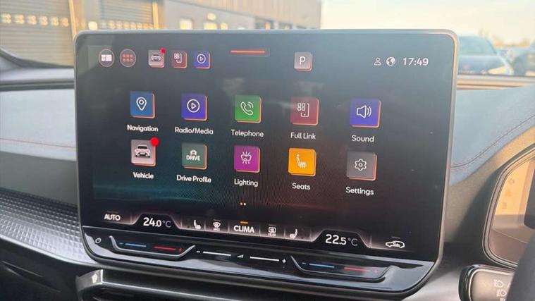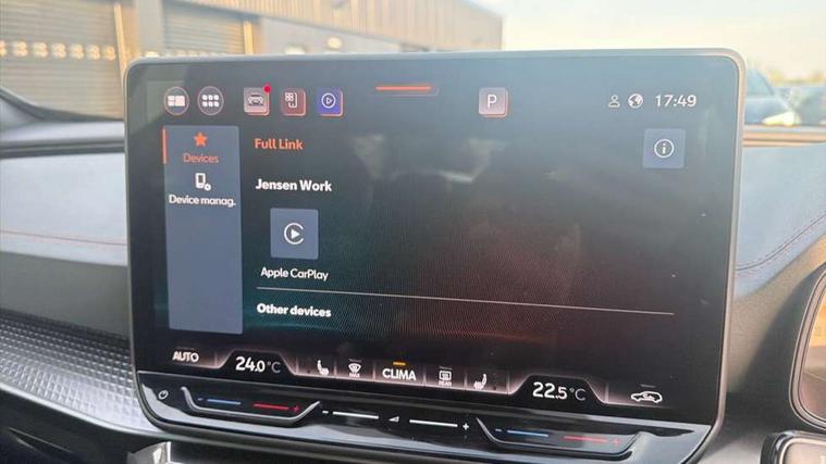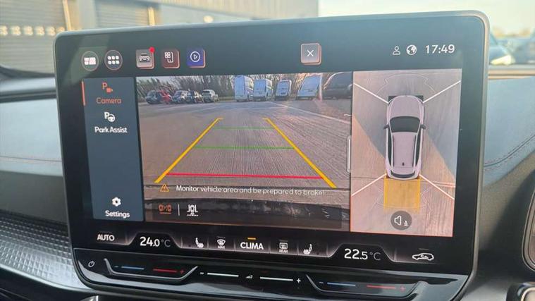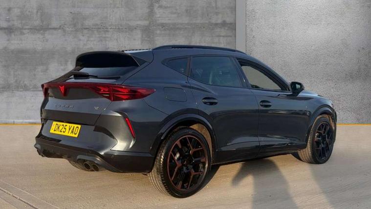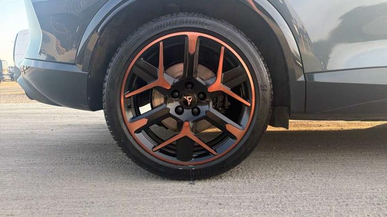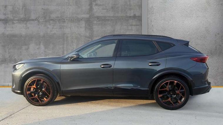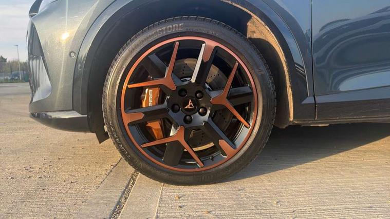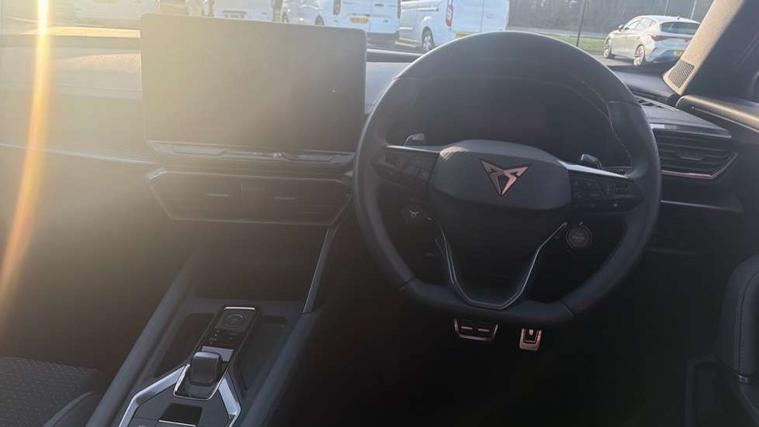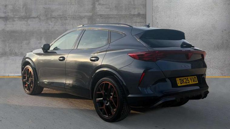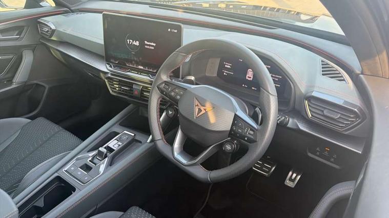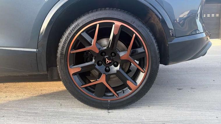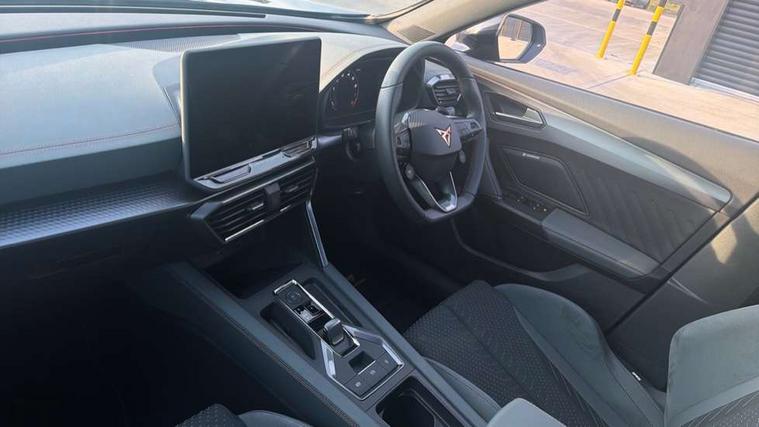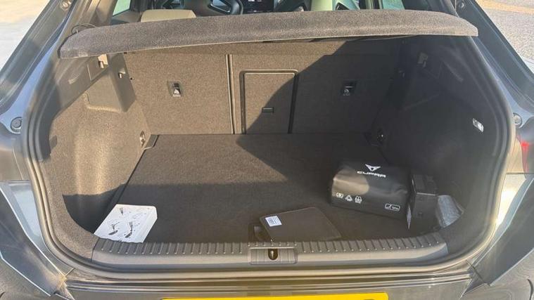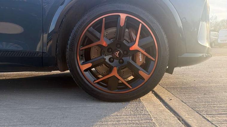 10.25" digital cockpit and configurable dashboard, Adaptive cruise control with follow-to-stop and speed limiter, Advanced driver alert system, Advanced lane assist with semi-automatic vehicle control in a medical emergency and traffic jam assist, Dynamic chassis control with driving profile selection (Comfort, Sport, CUPRA, Individual), Dynamic road sign display, Emergency steering support with turn assist, Forward collision warning with automatic braking, Full link phone integration, Intelligent park assist, RPM, trip computer, outside temp gauge, instrument light brightness, low fuel warning light, lights on reminder, gearshift indicator, Service interval indicator, Side and exit assist, Speed sensitive power steering, Start/stop system with regenerative braking, Top view camera, Virtual pedal and electric tailgate, Voice control system, Wired Android Auto, Wireless apple carplay, Wireless phone charger, Adaptive chassis control with continuous operation, CUPRA sport suspension, Electronic locking differential and dynamic traction support, 2 front and 2 rear USB type C sockets, Immersive by Sennheiser TM - 10 speakers, 1 central speaker, 1 subwoofer, Media system with navigation, 12.9" touchscreen display, voice control, DAB, steering wheel mounted controls, Auto dimming rear view mirror, Black roof spoiler, Body colour door handles, Body coloured bumpers, Dark grey wing mirror, Daytime running light with automatic headlight control and coming home feature, Door panel ambient lighting, Dynamic headlight range control, Electric front/rear windows, Electrically adjustable heated and folding door mirrors with memory function, Gloss black roof rails and window surrounds, High beam assist, LED 3rd brake light, LED front fog lamps with cornering function, LED Taillights with dynamic indicator, Matrix LED headlights with multifunction camera, Rain sensing wipers, Rear diffuser with twin exhaust pipe on each side, Rear fog lights, Rear side wing doors, Rear wash/wipe, Side skirts, Tinted rear windows, Welcome lights (within exterior mirror housing), 12V socket, 2 front and 2 rear reading lights, 3 seat bench in 2nd row, 60/40 split rear bench seat with armrest and mechanical seat release, Black headlining, Black interior roof lining, Cupra sports pedals, Dust/pollen filter, Electrically adjustable front seats with lumbar support and memory function, Front and rear head restraints, Front centre armrest, Heated front seats, Heated supersports multifunction leather steering wheel with satellite buttons and gear shift paddles, Height/reach adjust steering wheel, Illuminated aluminium doorsteps, Illuminated interior front door sills, Illuminated sunvisor with mirror, Isofix, Leather dashboard, door insert and side trim panel, LED smart wraparound lighting, PVC/Textile upholstery + cup bucket seats, Satellite steering wheel, Single front passenger seat, Three zone climate control with control panel in rear, Variable luggage/load compartment floor, 3 point seatbelts on all rear seats, ABS, Akebono brakes, Brake control system - ESC and brake booster, Child proof door locks, Driver and front passenger airbags with front passenger airbag de-activation, Driver and front passenger knee airbag, Electronic parking brake, Hill hold control, Performance brakes with front brembo calipers, Pre-crash front and rear seat belt tensioner, window closure and hazard lights, Public e-call, Seat belt reminder for front and rear seats, Side airbag for front and rear with curtain airbags, Tyre pressure monitoring system, Anti theft alarm system, KESSY Advanced - Keyless start, keyless entry with SAFELOCK, Locking wheel bolts, Copper and aluminium interior detailing, 19" Hailstorm forged machined R black and copper alloy wheels, Breakdown and tool kit,