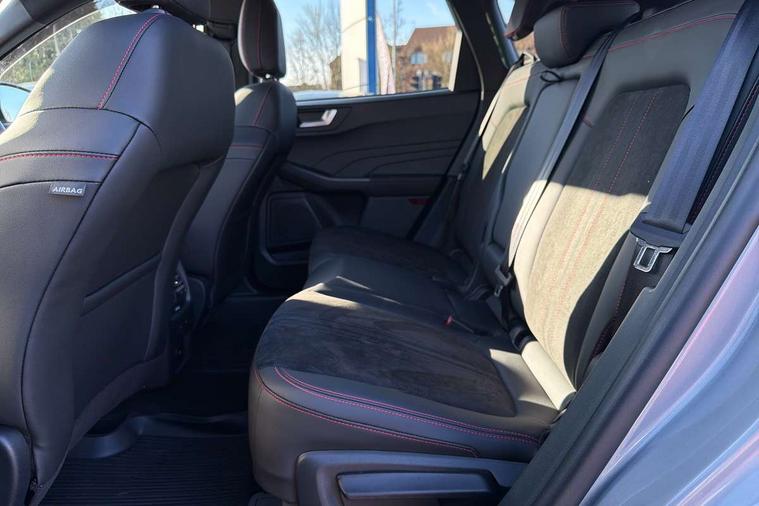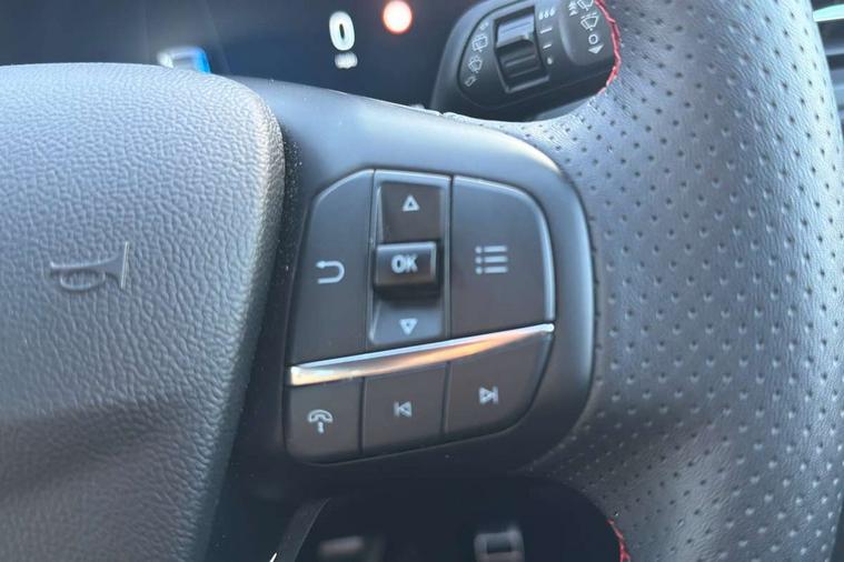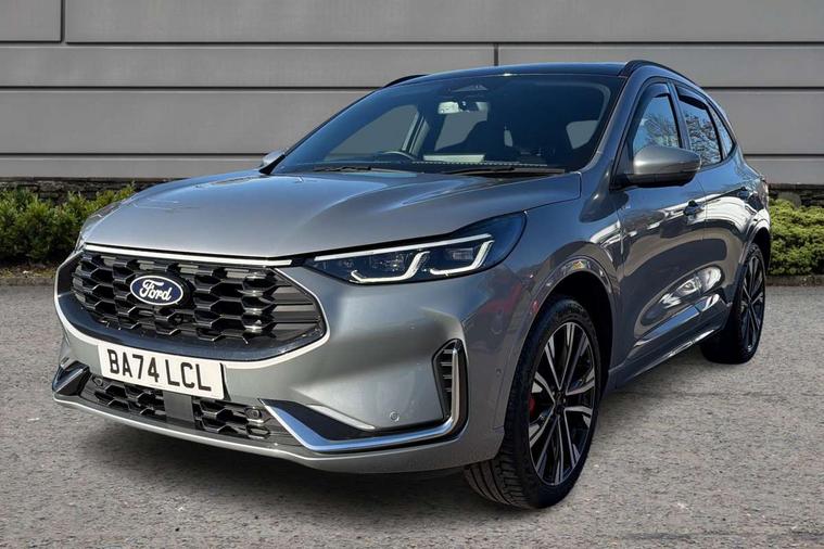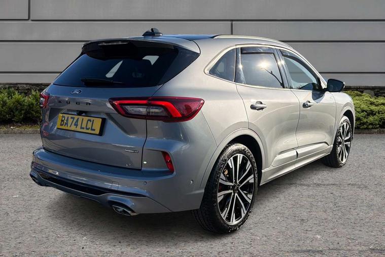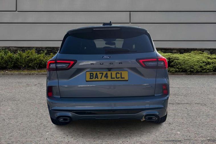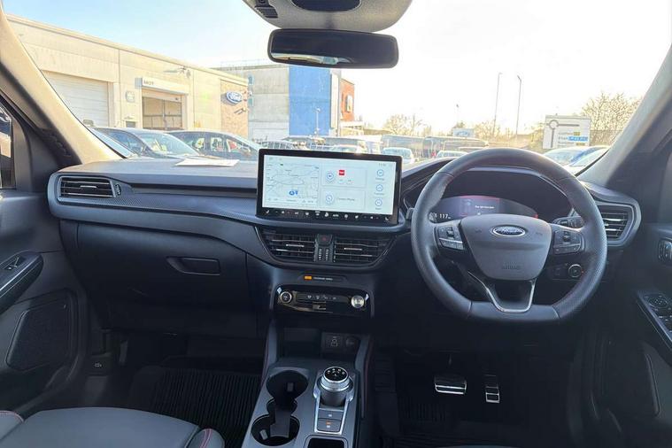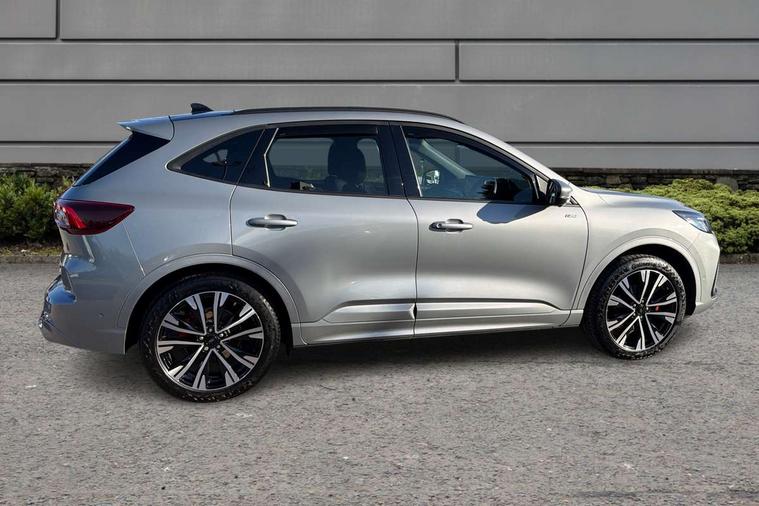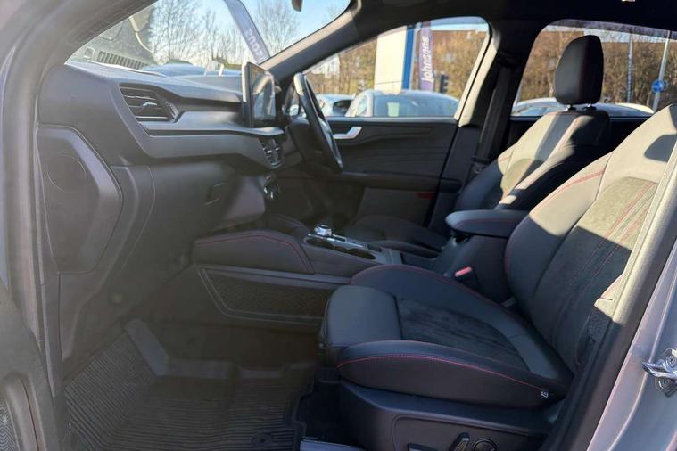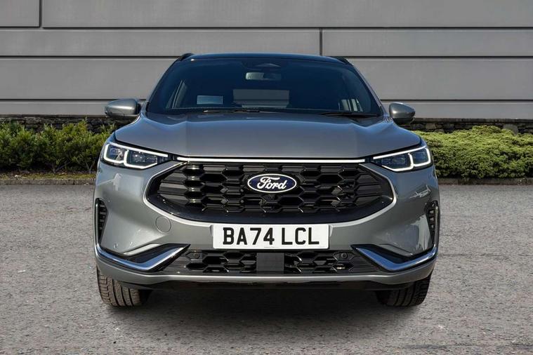 12.3" digital colour instrument cluster, 360 degree view camera, e-Call (emergency call), Ford easy fuel, Ford SYNC 4 Navigation with 13" touchscreen, DAB radio, emergency assistance, Andriod Auto/Apple CarPlay, 5G modem & Ford Pass connect, Front and rear parking sensors, Hands free power tailgate, Lane centering assist, Lane keeping aid with lane departure warning, Power assist steering, Selectable drive modes, Service interval indicator, Sports suspension, Twist beam rear suspension, B&O premium audio system with 10 speakers, subwoofer and 2 USB ports, Auto headlamps with high and low beam, Black roof rails, Body colour bumpers, Front LED fog lamps, Large rear spoiler, LED daytime running lights, LED rear lights, Pop out door edge protectors, Power front/rear windows with global close, Power heated folding door mirrors with puddle lights, memory function and camera, Power opening panoramic roof, Quickclear heated windscreen, Rain sensing wipers, Rear privacy glass, Rear side wing doors, Rear wiper, ST-Line body styling kit, Third brake light, 12 way ergonomic power adjust driver's seat with memory (AGR certified), 12 way ergonomic power adjust passenger seat (AGR certified), 2nd row sliding seats, Electronic automatic temperature control (EATC), Front and rear head restraints, Partial premium touch sensico upholstery, Rear centre head restraint, Single front passenger seat, Sports seats, Driver assistance pack with intelligent adaptive cruise control - Kuga FHEV/PHEV, Winter pack - Kuga, 3x3 point rear seatbelts, Airbags - front driver/passenger, front and rear curtain, Drivers knee airbag, Dynamic brake support, Electronic stability control (ESC) and ABS, Evasive steering assist, Ford MyKey Gen 2 safety system, Manual child proof rear door locks, Pre collision assist with autonomous emergency braking, Rear seat Occupancy alert, Red brake calipers, Tyre pressure monitoring system, Engine immobiliser, Keyless entry and Ford power start button (Keyless start), Locking wheel nuts, Remote powered central double locking doors, Thatcham category 1 alarm,