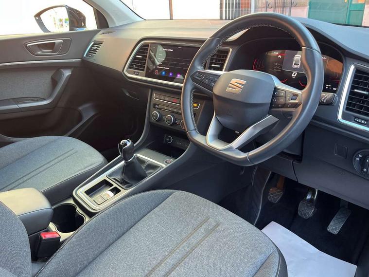 8" Digital cockpit, Colour multi-function on board computer display, Cruise control system with speed limiter, E-call, Outside temperature gauge, PAS, Self parking functionality (includes front and rear parking sensors), Start/stop system, Tailgate, Trip computer, Wireless full link smartphone integration, Wireless phone charger, Steering wheel mounted audio/phone controls, Black wheel arch surrounds, Body colour bumpers, Chrome front grille frame, Chrome roof rails, Chrome side window trim, Daytime running lights, Door mirrors with welcome light silhouette, Dynamic headlight range control with self adjusting whilst driving, Electric adjustable/heated/folding door mirrors, Front and rear electric windows, Full LED headlamps with lens and LED front fog lamps with cornering function, LED rear tail lights with dynamic indicators, Rear fog lights, Rear side wing doors, Rear wash/wipe, Simulated exhaust pipes, Third brake light, Variable front intermittent wipers, 12V socket in front, 3 seat bench in 2nd row, 60/40 split folding rear seat, Cloth upholstery with front comfort seats, Drawer under right front seat, Dual zone climate control, Front and rear head restraints, Front centre armrest, Front seat back storage pockets, Height adjustable driver and passenger seat with lumbar adjustment, ISOFIX points in outer rear seats with top tether anchorage points, Leather steering wheel and gear knob, Rear armrest and easy back seat release mechanism from boot, Single front passenger seat, Interior lighting pack - Ateca, Navigation system pack with DAB - Ateca, 3x3 point rear seatbelts, ABS, Traction control system (TCS), Electronic stability control (ESC) and Electronic differential lock system (XDS), Airbags - Driver and front passenger airbag with deactivation, front side, two curtain and driver's knee airbags, Electric parking brake with auto hold function, Front and rear seatbelt reminder, Front assist with autonomous emergency braking, Hill hold control, Manual rear child locks, Single tone horn, Tiredness recognition system, Traction control, Tyre pressure monitoring system, Alarm, Keyless entry, Locking wheel bolts, Remote central locking, Chrome interior detailing, 18" Performance machined alloy wheels 36/2 in nuclear grey,