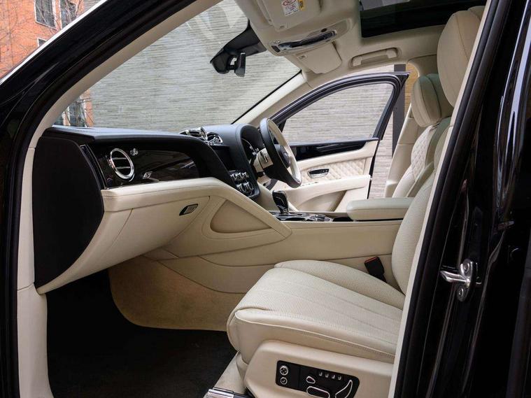 10.9" touch screen high resolution and configurable infotainment display and digital drivers information display, Advanced navigation function with text, search, 3D, satellite maps, speed limit, dynamic traffic route guide, telephone, Text-speech + voice, Bentley branded clock, Bentley GPS tracking system full fitment, Bentley safeguard, Blind spot assist, Bluetooth and WIFI enabled, Emergency services call system, Four drive dynamics modes (bentley, comfort, enhanced sport, custom), Front/rear park distance control, Hands free power tailgate, MMI Screen, My Bentley connected car services, Power latching to all doors for easy entry, Redesigned instrument panel lower trim rolls, incorporating a storage compartment on the passenger side, Seamlessly integrated technology with wireless apple car play and android auto, Speed sensitive variable ratio electric power steering, Sports driver information panel, Sports kombi graphics, Touch screen remote, Voice control system, Wireless phone charging compartment, Air suspension with continuous damping control, Bentley Dynamic ride, Permanent all wheel drive with centre torsen differential, Bluetooth audio streaming, 3rd brake light, Adaptive low beam, Auto dimming rear view mirror, Automatic headlights, Bentley badge in tailgate opening switch, Black door mirrors, Black painted shark fin aerial, Black side sills, Black speed style front and rear bumper, Body coloured front lower bumper apron panel, Body coloured lower bodywork - Standard paint range, Bumper design with large side intakes and sculptured surfaces, Clamshell rear tailgate design with Bentley lettering under the wings, Dark tinted front & rear lamps, Elec/heat/adj/fold door mirror+memory, Electric tilt/slide panoramic sunroof, Exterior S badge, Fender design reduces over bodied perception, Fixed rear spoiler, Front and rear fog lamps, Full LED supplementary lamps and tail lamps, Full matrix LED headlamps with high beam assist, Full width clamshell design and deeply contoured rear tailgate panel, Heated rear windscreen, Large dominant B shaped side wing vent front position, LED daytime running lights, Long fender vent above the power line on body side, Lower door side mouldings, Number plate aperture position under rear bumper, Oval split tailpipe, Phone antenna amplifier, Rain sensing wipers, Rear side wing doors, Rear wiper, S fascia badge, Self levelling wheel badge, Sports exhaust, Trailer sway mitigation, Tunnel detection for auto light control, V8 exterior badge, Wet arm wipers and heated water jets, 12V power in rear centre console, 12V socket in glovebox, 12V socket in luggage compartment, 3 seat bench in 2nd row, 4-Zone HVAC, Air Ioniser, Black (Beluga) boot carpet, Dinamica gear lever, Dinamica seats and dash, Electric tilt and reach adjustment steering column with memory and easy entry function, Electronic accessory preparation, Embroidered Bentley emblems, Foams and cover design on all seats, Folding luggage compartment cover, Front and rear cupholders, Indented steering wheel, Isofix attachments on outer rear seats, Key box, Load through facility, Lockable cooled glovebox, Luggage rails, Rear head restraints, Rear seat climate control, Rear seat massage function, Single front passenger seat, Stowage with instrument panel, doors (front and rear), armrests and console, Twin front armrests, Two metal bulls eye vents with organ stops and redesigned centre vents, Two type C USB ports front and rear, Unique S fluted seat colour combination with dinamica inserts, Veneered/carbon fibre centre fascia panel, Wing pockets for small items, Blackline Specification Pack - Bentayga, 3 rear seatbelts, ABS/EBD, Child safety lock, EDL, Electronic park brake with move-off assist, Electronic stability control, Electronic tyre pressure monitoring, ESP + MSR + ASR, Exit warning, Front and rear head airbags, Front and rear thorax airbag system, Front and rear ventilated brake disc, Front passenger airbag deactivation, Front seatbelt pretensioners with force limiters, Hill descent function, Hydraulic Brake Assist (HBA), Rear outer seatbelt pretensioners with force limiters, Rollover mitigation, Side airbags, Traction control, Immobiliser, Keyless entry, Keyless ignition, Preparation for vehicle tracking, Remote central locking, Volumetric anti theft alarm, 22" Summer tyres,