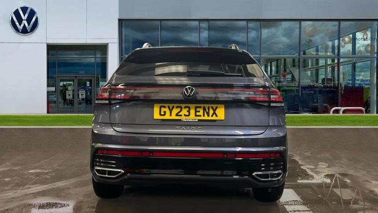 App-Connect including App-Connect Wireless, Digital cockpit pro - 10.25" high resolution TFT dash display screen with customizable menus and information, Driver alert system, Driving profile selection, e-Call (emergency call), Power Steering, Travel assist including emergency assist, Washer fluid level indicator, Wireless Charging including Bluetooth, Start-stop system with battery regeneration (recuperation - energy recovery during braking), XDS electronic differential lock for improved traction and handling, Digital radio reception (DAB+), Diversity antenna for FM reception, WeConnect plus, Ambient lighting with logo projection, Aspherical driver's exterior mirror, Auto headlights, Body coloured bumpers, Body coloured exterior mirror housings and door handles, Bumpers in R-Line style, Electric windows, External USB type C socket and charging sockets, Front fog lamps with cornering function, Front scuff plates with R-Line logo, Headlight range control, LED headlamps, LED rear combination lamp, LED third brake light, Left convex exterior mirror, Power folding adjustable/heated exterior mirrors and front passenger exterior mirror lowering function, Rear fog light on one side, reversing light on both sides, Rear side wing doors, Rear wash/wipe with intermittent wipe setting, 12V socket in centre console, 2 front reading lights, 3 rear head restraints, 3 seat bench in 2nd row, Air care climatronic air conditoning system with active combination filter and 2-zone temperature control, Black carpets, Black roof lining, Child seat anchor for child seat system i-Size, 2x top tether and child seat anchor in front on front passenger side, Chrome bezel for instrument cluster, vents, door handles + gear shift, Driver and front passenger seat height adjustment, Front + rear carpet mats, Front centre armrest, Front footwell illumination, Front sports comfort seats, Height and reach adjustable steering wheel, Interior ambient lighting and surround lighting, Karoso artvelours cloth upholstery, Leather trimmed gear knob, Leather wrapped multifunction steering wheel, Luggage compartment floor, Luggage compartment light, Lumbar support for driver's and front passengers seat, Seat covers in grey + titanium black, Single front passenger seat, Split folding backrest with centre armrest and unsplit rear seat bench, Stainless steel pedals, Storage compartment under front seats, Sun visors with illuminated vanity mirrors, Chrome Package - Taigo, Drivers assistance pack - Taigo, Light and Sight pack including High beam assist - Taigo, 2 x 3-point seatbelts/outer rear seats with ECE label, 3-point seat belts in front with pretensioner and height adjustment, 3-point seatbelt for centre rear seat, Driver and front passenger airbags with front passenger airbag de-activation, front side and curtain airbags, Driver and front passenger safety-optimised head restraints, Electronic stability control, Extended and predictive pedestrian/ cyclist protection, Front and rear disc brakes, Front curtain and side airbags with center airbag, Hill start assist, Manual rear child locks, Single tone horn, Tyre pressure loss indicator, Anti-theft alarm system with interior monitoring, backup horn, and towing protection, Anti-theft wheel bolts, Grey anodised matte decorative inserts in dash and front door panels, Low rolling resistance tyres,