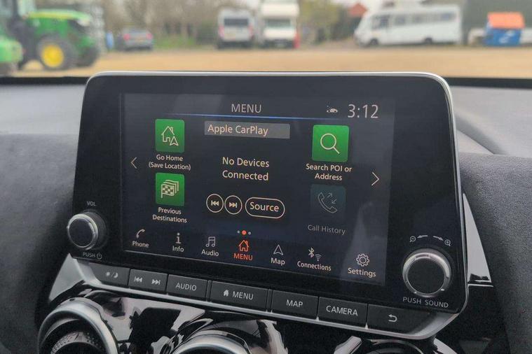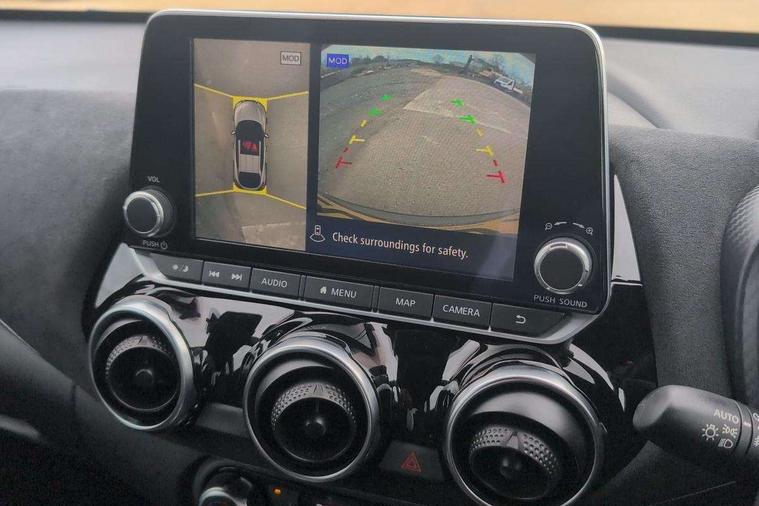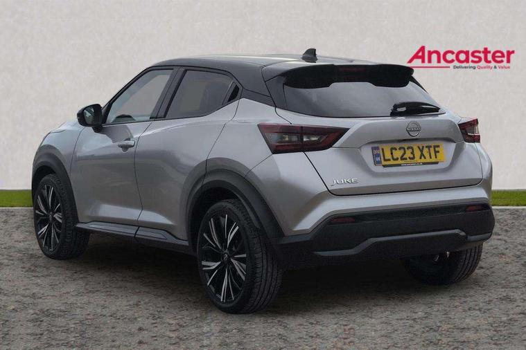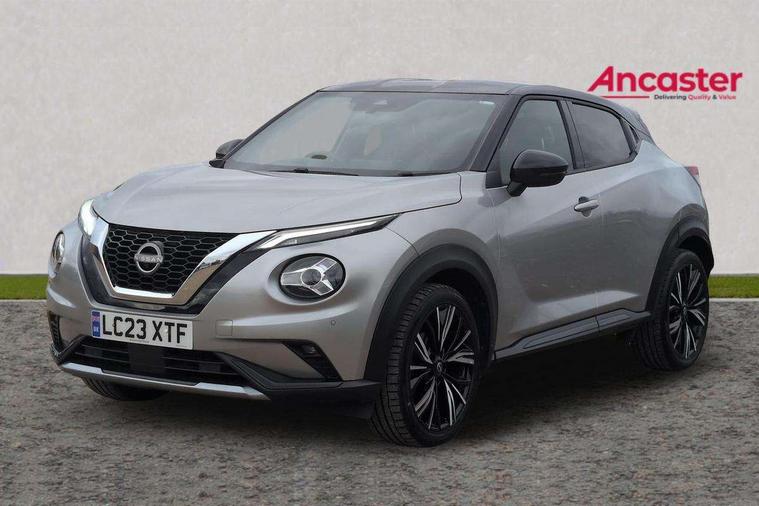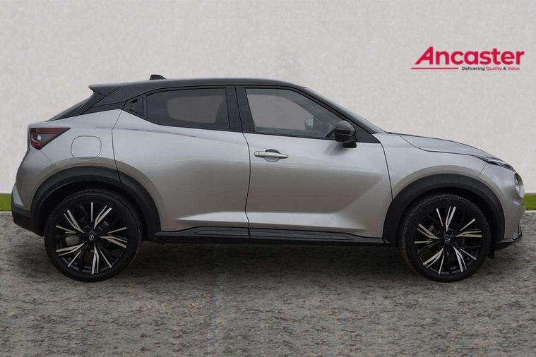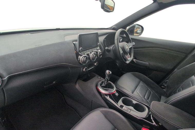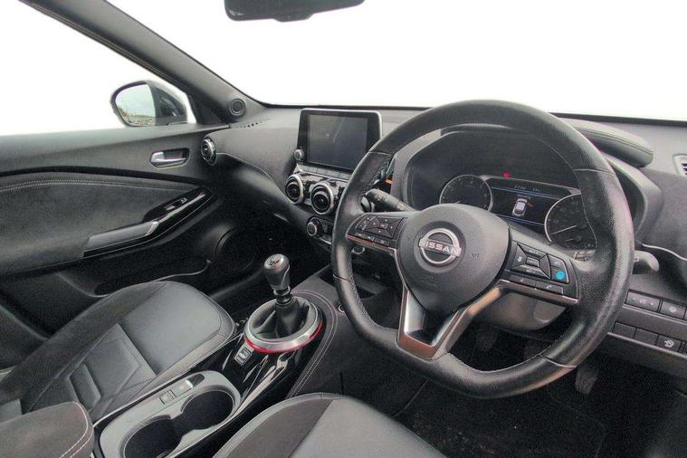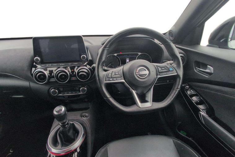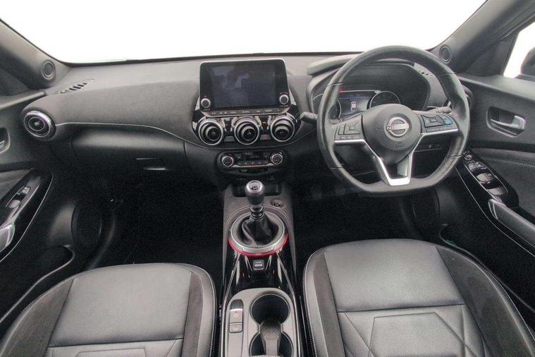 7" full colour TFT screen combimeter, Apple CarPlay and Google Android auto, Drive modes select (Eco, normal and sport), Emergency and breakdown call, Front parking sensor, Idle start/stop system, Intelligent lane intervention, Lane departure warning system, Nissan connect 8" touch screen entertainment system, Nissan connect nav with TomTom traffic, Nissan connect services and Wifi connection, Outside temperature sensor, Power Steering, Rear parking sensor, Traffic sign recognition, Trip computer, Voice recognition, Gasoline particulate filter, 10 Bose speakers 6 speakers and 2 headrest speakers for driver/passenger seats, Bluetooth system, USB, Aux-in and 12V socket, Bose personal sound stage control, DAB Digital radio, Rear console USB port, Auto dimming interior rear view mirror, Auto headlights, Automatic hazard signal with emergency stop signal, Body colour bumpers, Body colour door handles, Electrically adjustable door mirrors with integrated indicators, Follow me home headlights, Front and rear electric window with one touch driver window, Heated and auto folding door mirrors, High beam assist, LED daytime running lights, LED front fog lights, LED headlamps, LED rear fog lamp, LED rear lamps, Rain sensor windscreen wipers, Rear privacy glass, Rear side wing doors, Rear wiper, Satin silver front bumper finisher, Thermaclear heated windscreen, Three blink turn signal, 3 height adjustable rear headrests, 3 seat bench in 2nd row, 60/40 split folding rear seat, Automatic climate control, Card holder on driver sunvisor, Door ambient lighting, Driver and passenger sliding and reclining seats, Driver seat back pocket, Driver side rear coat hanger, Driver/passenger sunvisors and vanity mirrors, Front and rear cabin lights, Front armrest, Front door pockets with bottle holders, Front head restraints, Front passenger isofix child seat anchorage point, Front/rear passenger grab handles, Gear console ambient circle lighting, Grey synthetic leather kneepad, Heated front seats, Height adjustable driver's seat, Height adjustable passenger seat, Internal chrome door handles, Leather gearshift knob, Leather steering wheel, Luggage board, Luggage space lighting, Monoform sporty seats, Multifunction steering wheel, Passenger seat back pocket, Rear door bottle holders, Single front passenger seat, Telescopic steering wheel adjustment, Two cupholders in front centre console, Two rear isofix child seat anchorage points with top tether, Welcome light and console tray ambient lighting, Advanced safety shield pack - Juke, ABS with EBD and brake assist, Active ride control, Active Trace Control, Driver and passenger airbags, Driver and passenger side airbags, Electric handbrake with auto hold function, Electronic Stability Programme (ESP), Front and rear curtain airbags, Height adjustable seatbelts, Hill start assist, Intelligent emergency braking with pedestrian and cyclist recognition, Rear door child safety locks, Seatbelt reminder for driver/front passenger and rear seats, Single tone horn, Three 3 point rear seatbelts, Traction control, Tyre pressure monitoring system, VDC Dynamic Vehicle Control, Ventilated rear brake discs, Alarm, Immobiliser, Intelligent key and start push button with walk away lock and approach unlock functions, Remote central locking, 19" Akari alloy wheels,