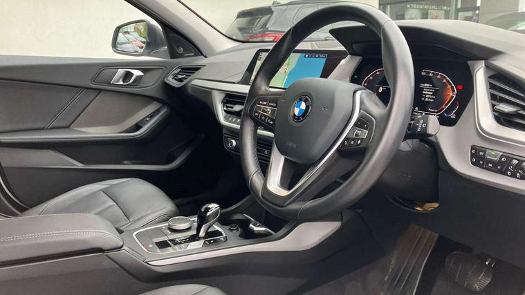 Active guard plus, Attentiveness assist, BMW ConnectedDrive online services, BMW Teleservices, Check Control warning system for monitoring of lights and door/luggage compartment open warning, Cruise control with speed limiter, Eco pro mode, Electric power steering with Servotronic steering optimised at all speed ranges, Front axle single joint with specific axle kinematics to minimise drive influences on steering + provide increased rigidity agile driving behaviour, Integrated owners handbook, Lane departure warning system, Oil sensor for level and grade, On board computer, Optimum shift indicator, Personal Profile, Pull away assistant, Rigidly mounted rear subframe - Multi link construction with separate spring / damper configuration and excellent driving characteristics, Speed limit Info including no-overtaking indicator, Aluminium lightweight construction, Anti roll bar front and rear, Balancer shaft, Double VANOS twin scroll turbocharging system, Drive Performance Control, Electronic differential lock, High precision injection, Petrol Particulate Filter, Suspension with twin tube gas filled shock absorbers with degressive characteristic curve, VALVETRONIC engine management, DAB Digital radio, Auto dimming rear view mirror, Automatic windscreen wipers and automatic headlight, Body colour door handles, Body colour mirror caps, Chrome exhaust twin tailpipes round 90mm in left, Direction indicator side lights in exterior mirrors, Electrically adjustable exterior mirror with mirror adjustment switch on drivers armrest and aspheric on driver side, convex on passenger side, Fading support, Follow me home headlights, Front and rear bumper system with replaceable deformation elements, Front and rear electric windows with open and close fingertip control, anti trap facility and comfort closing, Front door sill finishers in black plastic with BMW designation, Green tinted heat protection glazing, High level third brake light, Integrated front windscreen with washer jets, Kidney grille with chrome frame with 14 High-gloss Black struts, LED daytime running lights, LED eyebrow turn indicators, LED front fog lights, Lightweight engineering, Manual headlight beam throw control, Manual headlight levelling, Matt black air guide grilles, Matt black roof moulding, B pillar finisher and wheel arch trim, Matt black window frame, Matt black window recess finisher, Model designation on electric bootlid, Nearside reverse light in rear light cluster, Preparation for high beam assistant, Rear fog lights, Rear side wing doors, Rear window wiper, Shark fin antenna, Trailer stabilisation logic, Visible VIN plate, Welcome lighting, 12V power socket in front centre console with blanking plug, 3 rear seat head restraints, 3 seat bench in 2nd row, 3 spoke sports leather steering wheel in black leather with black stitching and decorative finisher in pearl chrome, Black boot net with lashing eyes, Cargo function on 2nd seat row, Child seat ISOFIX attachment for two outer rear seats and front passenger seat with anchorage points, Conditioned based service, Driver and front passenger backrest net on rear, Driver side folding compartment in instrument panel, Folding rear clothes hook, Four grab handles integrated in roof lining, Front and rear door pockets with bottle holders, Front and rear side armrest integrated into door trim, Front armrest, Glove compartment, Height adjustable front head restraints, Luggage compartment for bag hooks on left and right, foldable luggage compartment liner and four lashing eyelets, Manual adjust steering wheel, Multi-function controls for steering wheel, Single front passenger seat, Single zone automatic air conditioning, Storage compartment in centre console, Storage compartment in luggage compartment, Stowage of the parcel shelf in luggage compartment trim, Sun visors with vanity mirrors and insert tab, Two front centre console cupholders, Type C two USB ports in rear centre console, Velour floor mats, BMW live cockpit professional pack- 1 Series, Connected pack professional - 1 Series, Interior lights pack - 1 Series, 2 tone horn, 3 point seatbelts on all seats, front pyrotechnic belt tensioners, stopper and belt force limiters, rear coded belt buckles, Airbags - Front driver/passenger, front and rear curtain head protection, front side, manual deactivation of front passenger airbag, Anti lock braking system (ABS) with brake assist, BMW emergency call, Brake drying, Braking readiness, Child proof locking system in rear door, City braking function, Comfort modes, Cornering brake control, Crash sensor activating of airbags, Unlocking doors, hazard warning lights, interior light, safety battery terminal, Driver and front passenger seat belt security check, Dynamic stability control + (DSC+), Dynamic Traction Control - DTC, Electrically operated hand brake including automatic hold function, Front and rear disc brakes, Seatbelt warning, Side impact protection, Tyre pressure monitoring system, Warning triangle and first aid kit, Central locking switch for all doors, fuel filler cap and luggage compartment, Deadlocking function system to all doors, Drive away locking system on all doors and luggage compartment with de-activated in iDrive settings, Locking wheel bolts, Remote central locking with two Integrate key, one button for opening and closing all lock, open and close window, button for open luggage compartment, Start/stop button illuminated in centre console with keyless engine start and auto start stop deactivation button, Thatcham Cat.1 alarm and immobiliser, Wheel slip limitation close to the actuator (ARB), Quartz Silver matt interior trim, Electrically powered 12V compressor, Reduced rolling resistance tyres,