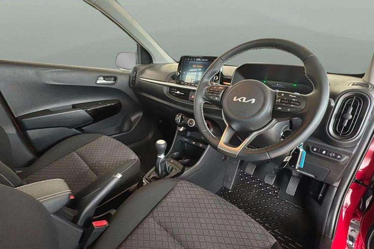 4.2" driver display screen, 8" touchscreen navigation, Apple car play/Android Auto with voice control, Cruise control + speed limiter, Emergency call service, Emergency stop signalling system, External temperature gauge, Forward Collision-Avoidance Assist (FCA) 1.0 - City/Pedestrian/Cyclist, Intelligent speed limit assist, Kia Connect (UVO), Lane Follow Assist 1.0, Lane keep assist, Motor driven power steering, Rear parking sensors, Reversing camera system, Tachometer, Trip computer, 4 speaker audio system, Bluetooth with music streaming, USB ports for connection of a media device, Automatic defog system, Automatic headlight control system, Body colour bumpers, Body coloured door mirrors, Body coloured side sills, Body coloured wheel arches, Daytime running lights, Electric adjustable heated door mirrors, Electric front and rear windows, Electric front touch drivers front window, Halogen headlamps, Headlamp levelling, Heated rear window, High mount brake light, Rain sensor, Rear fog lights, Rear Lights Bulb, Rear side wing doors, Rear wiper, Silver window surround, Speed variable front wipers, Tinted windshield glass, Visible VIN plate, 12V power point front, 3 seat bench in 2nd row, 60:40 Split folding rear seats, All round height adjustable headrests, Artificial leather steering wheel, Centre console storage box, Cloth upholstery, Driver and front passenger side sunvisors with vanity mirrors, Front and rear door storage, Front cabin lights, Front passenger USB-C charging port, Glovebox, Grey headlining, ISOFIX Child seat top tethers and anchor fixings outer rear seats, Luggage area light, Luggage area parcel shelf, Luggage board, Luggage net + hook, Manual adjust steering wheel, Manual adjustable driver and front passenger seat, Manual air conditioning, Single front passenger seat, All round 3-point seatbelts, Anti-lock braking system (ABS), Electronic stability control, Front + rear side airbags, Front airbags, Front passenger airbag cut-off switch, Front seatbelt height adjusters, Hill hold control, Hill start assist control (HAC), Rear airbags, Seatbelt warning, Side impact protection, Torque vectoring brake based and straight line stability (SLS), Traction control, Tyre pressure monitoring system, Vehicle stability management, Central door locking, Folding key, Locking wheel nuts, Manual child locks, Rear occupant alert, Thatcham category 2 security alarm and immobiliser, 14" alloy wheels, Tyre mobility kit,