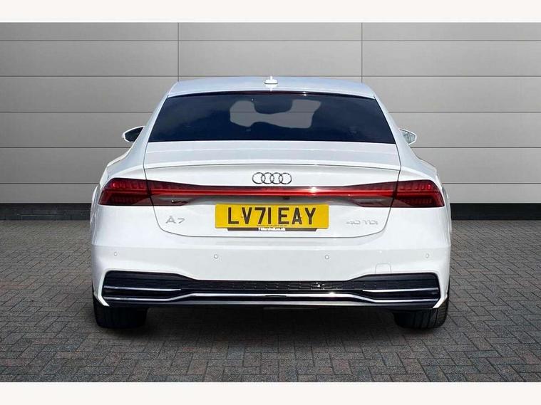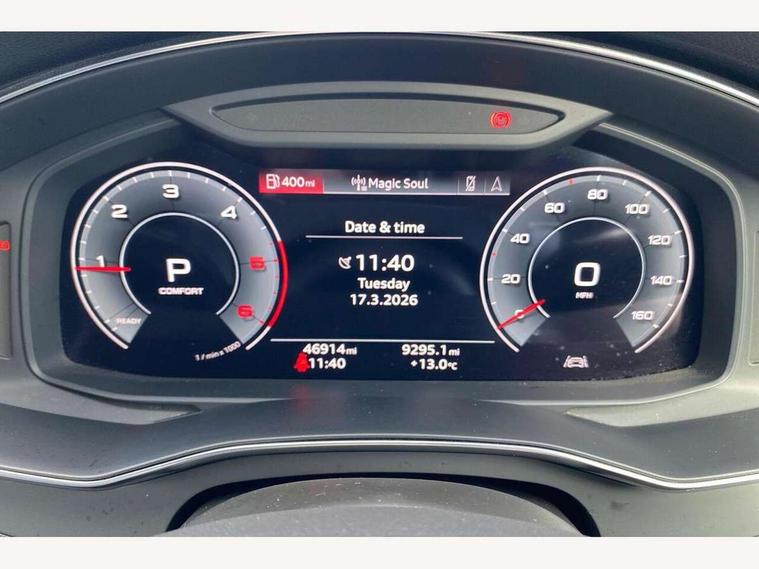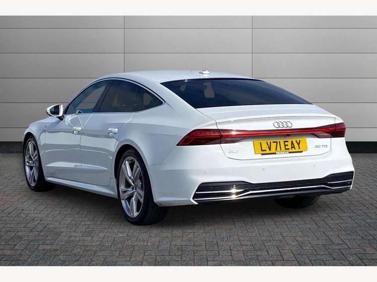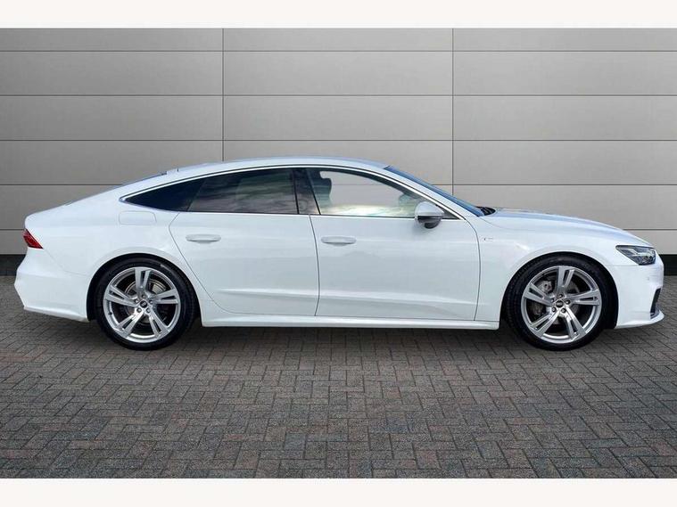 Audi connect safety and service (e-call), Audi connect with Amazon Alexa Integration, Audi drive select, Audi parking system plus - acoustic and visual park assist system for front and rear, Audi phone box with wireless charging, Audi smartphone interface, Audi virtual cockpit - 12.3" high resolution LCD digital instrument cluster display, Automatic start/stop system with coasting functionality, Colour driver's information system display, Electric boot lid release, Lane departure warning system, MMI nav plus with MMI touch + 10.1" and 8.6" HD haptic touch screen/3D city models/country information/online map/route info and personal route assist, Operating buttons in black, glass look with haptic feedback, Power operated tailgate, Progressive steering, Rear view camera, Service indicator, Voice control system, 24 litre AdBlue tank, Diesel particulate filter, Sports suspension, Audi music interface - 2 USB ports with charger and data functions, Audi sound system with 6 channel amplifier, 180 watt amplifying capacity and 10 loudspeakers including subwoofer, Auxiliary input socket, DAB digital radio module, Body coloured door mirrors, Coming/leaving home animations in front and rear, Electrically adjustable, heated and folding door mirrors with driver memory function and integrated LED indicators, Frameless auto dimming interior rear view mirror, Front and rear electric windows, HD Matrix LED headlights with dynamic front and rear indicators, Headlight washers, Heat insulating glass in side and rear windows, High gloss black radiator grille with chrome single frame surround, LED rear lights, Privacy glass with side and rear windows, Rain and light sensors, Retractable rear spoiler, S line air inlet design with inlay in high gloss black, S Line badge on front fender, S line badge on front grille, S Line Black rear diffuser with chrome inlays and rear grille, S Line front and rear bumpers, S Line side skirts, Signature LED daytime running lights, Towbar preparation, Windscreen with heat-insulating glass, 2 zone deluxe electronic climate control, 4-way electric lumbar support, 40/20/40 split folding 3 seater rear seat bench with rear centre armrest, Black cloth headlining, Electrically adjustable front seats - driver seat with memory, Front and rear headrests, Front centre armrest, Heated front seats, Height/reach adjust steering wheel, Illuminated door sill trims with S logo, Illuminated sun visors with vanity mirrors, ISOFIX child seat mounting and top tether in front and outer rear seats with front passenger airbag deactivation, Leather gear knob, Leatherette upper instrument panel and door shoulders, Luggage compartment floor, S line front and rear floor mats with contrast stitching, Stainless steel pedals and foot rest, Tool kit and car jack, LED interior ambient lighting pack - A7, Non smoking pack - A7, 3 point seatbelts on all seats, Audi pre-sense front, Driver and passenger airbags, Electromechanical parking brake, Electronic stabilisation control including ABS, ASR and EDL, Extended pedestrian protection measures, Hill hold assist, Seatbelt monitoring, Tyre pressure warning light, Warning triangle and first aid kit, Anti theft alarm with tow away protection, Anti-theft wheel bolts and wheel loosening detection, Immobiliser, Keyless Go, Preparation for tracking system, Remote central locking, Dark matt brushed aluminium inlay,