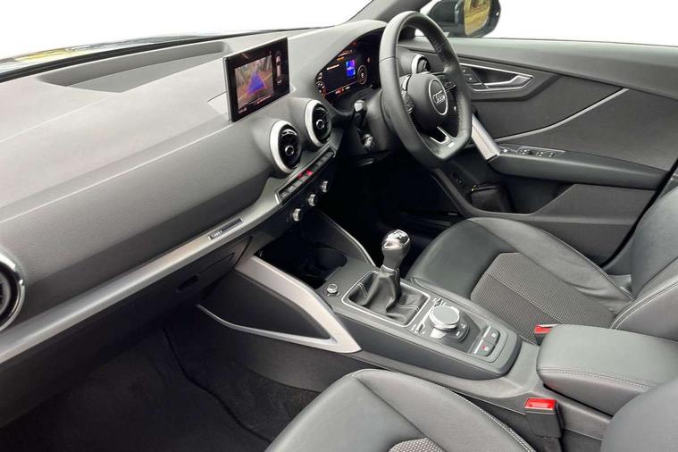 Audi connect navigation and infotainment includes innovative services, Audi connect remote and control connects your vehicle to your smartphone, Audi drive select, Audi drive select with efficiency, Audi smartphone interface, Audi virtual cockpit, Automatic start/stop system with recuperation, Bluetooth interface includes bluetooth audio streaming, Cruise control, E-call, MMI navigation plus with MMI touch, Power operated tailgate, Progressive steering, Rear parking sensors, 2 x SDXC card reader, 8 passive loudspeakers, DAB Digital radio, DVD Drive, Auto dimming rear view mirror, Black window trims, Bumper in full body colour paint finish, Electrically adjustable, folding, auto dimming and heated door mirrors with integrated LED side indicators, Front windscreen with grey tinted sunband, LED daytime running lights, LED headlights with LED rear lights, LED third brake light, Privacy glass - dark tinted rear and rear side windows from B-pillar backwards, Rear side wing doors, Rear wiper, Variable front intermittent wipers, Wheel arch trims in manhattan grey, 12V socket in front, 3 seat bench in 2nd row, 3 spoke flat bottomed multi-function leather sport steering wheel, 4-way electric lumbar support for front seats including seat height adjustment for both front seat, 60/40 split folding rear seat bench, Black cloth headlining, Front and rear head restraints, Front centre armrest, Front/rear floor mats, Height/reach adjust steering wheel, Illuminated door sill trims with S logo, ISOFIX child seat mounting for front passenger with airbag deactivation and outer rear seat including top tether attachment point for outer rear seats, Single front passenger seat, Stainless steel pedals, Black styling pack - Q2, 3x3 point rear seatbelts, 6 airbags - Front, curtain and front side airbags, Electromechanical parking brake, Electronic stabilisation control including ABS, ASR and EDL, Hill hold assist, Pre-sense front with pedestrian recognition, Seatbelt monitoring, Tyre pressure warning light, Warning triangle and first aid kit, Anti theft alarm, Anti theft wheel bolts, Electronically operated child locks, Remote central door locking, Aluminium interior element, Matt brushed aluminium trim inlays, Tool kit,