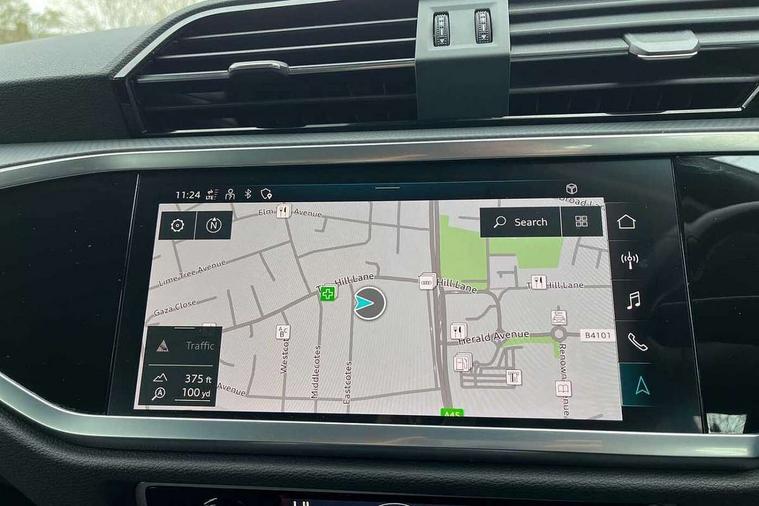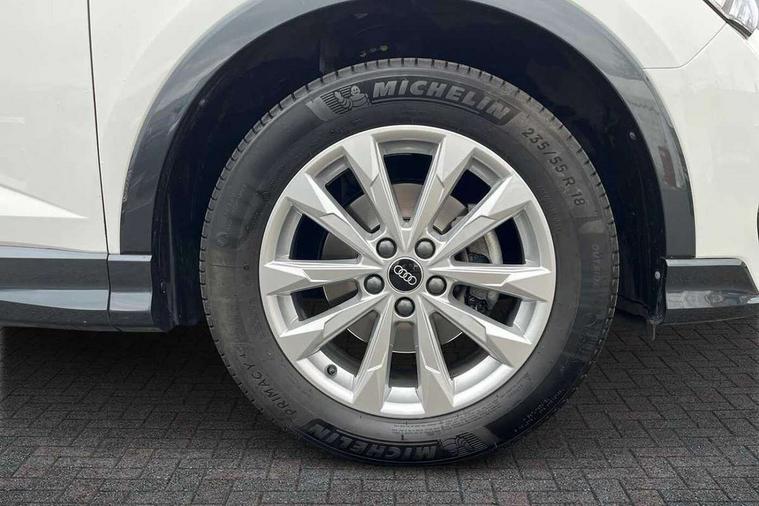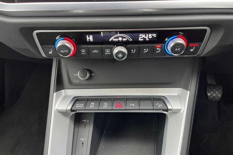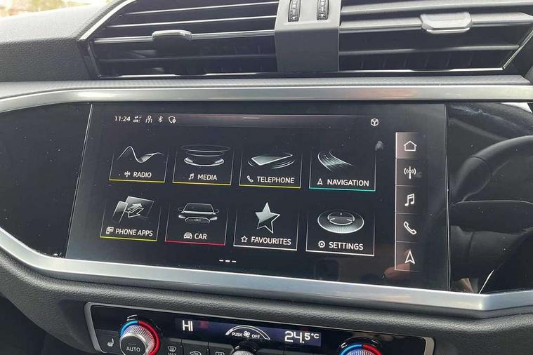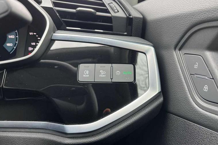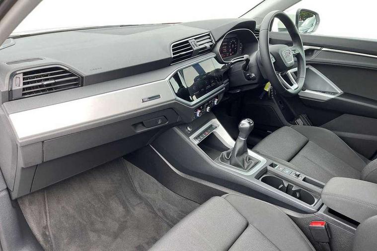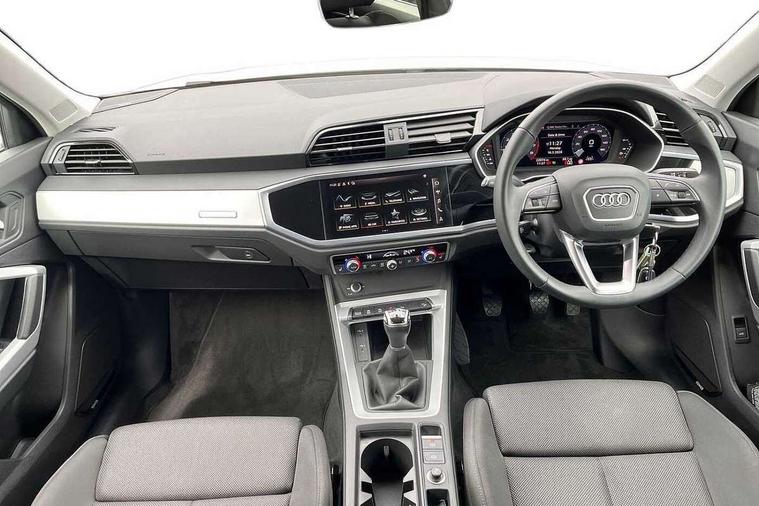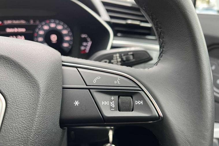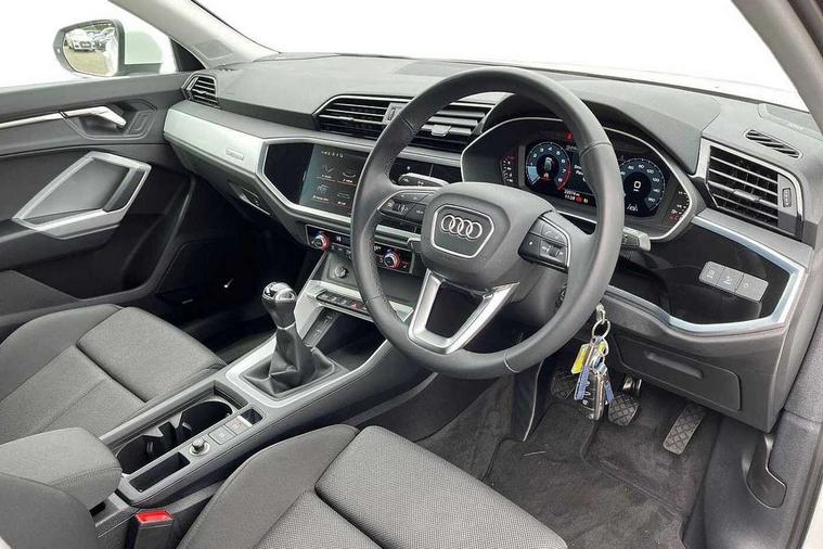 Audi drive select, Audi lane departure warning, Audi Virtual Cockpit - 10.25" display, Bluetooth interface, Camera based traffic sign recognition, Cruise control + speed limiter, Legal emergency call, MMI Navigation Plus with high resolution 10.1 inch touchscreen colour display, Power operated tailgate, Progressive steering, Rear parking sensors, Service interval indicator, Smartphone interface includes wireless Apple carplay/Android Auto, Start stop system with recuperation, Voice control system with natural language interaction, Sports suspension, 2 USB-C ports with charge and data functions, 6 passive loudspeakers, DAB digital radio module, Acoustic windscreen, Aluminium window trim, Auto dimming frameless rear view mirror, Bumpers and underbody protection in contrasting manhattan grey paint finish, Diffuser grille in grained matt black, Diffuser trim in manhattan grey metallic, Door sill trims with illuminated aluminium inlay, Electrically folding, adjustable and heated door mirrors with integrated LED side indicators and kerb view function for passenger side, Front and rear electric windows, Front fog lights, Front side air inlets in Manhattan grey metallic, Grille surround in aluminium silver matt, High gloss black finish B and C pillars, Honeycomb design radiator grille in matt titanium black, LED headlights with LED daytime running lights, LED rear lights, LED third brake light, Rain and light sensors, Rear side wing doors, Rear wiper, Variable front intermittent wipers, 12V socket in rear centre console, 3 seat bench in 2nd row, 3 spoke multi-function leather steering wheel, 40:20:40 folding with manual adjustment for 60:40 forwards/backwards position and backrest angle, Dual zone electronic climate control, Front and rear floor mats, Front and rear headrests, Front and rear roof module including reading lights, Front centre armrest, Glove compartment lighting, Height and reach adjustable steering wheel, ISOFIX child seat mounting for front passenger with airbag deactivation and outer rear seat including top tether attachment point for outer rear seats, Luggage compartment light right in white, Luggage compartment sill protection in stainless steel, Lunar silver cloth headlining, Manual front seats with height adjustment, Single front passenger seat, Non smoking pack - Q3, 3x3 point rear seatbelts, 6 airbags - Driver, front passenger, curtain and side windows, Audi pre-sense front with pedestrain and cyclist recognition, Electromechanical parking brake, Electronic stabilisation control including ABS, ASR and EDL, Front seatbelt reminder, Hill descent control, Hill hold assist, Manual child lock in rear doors, Pre sense basic, Seatbelt monitoring, Tyre pressure warning, Warning triangle and first aid kit, Anti theft alarm, Anti theft wheel bolts, Immobiliser, Remote central locking, Black dashboard, Detail dashboard around MMI touch colour display in glass look, black with surround in aluminium look, Micrometallic silver inlay,