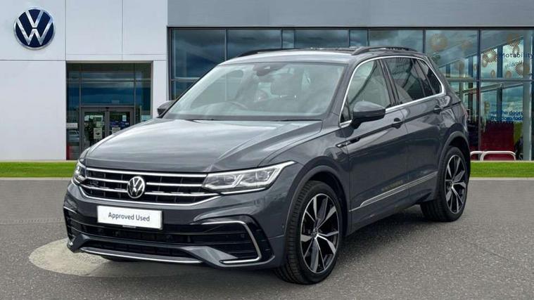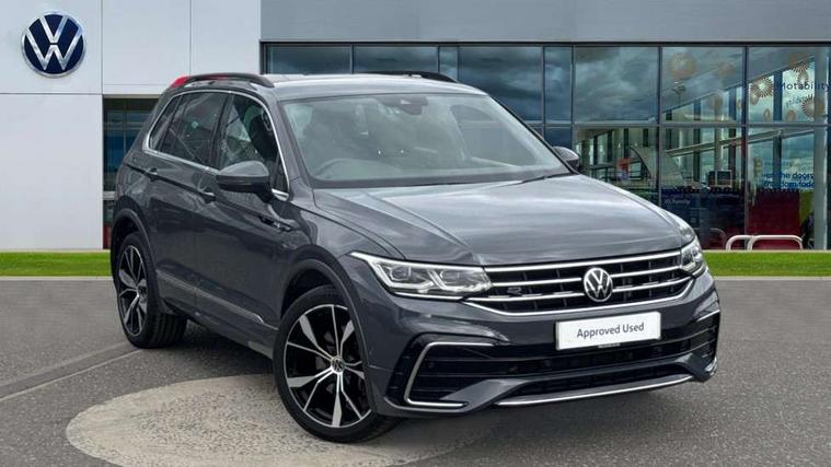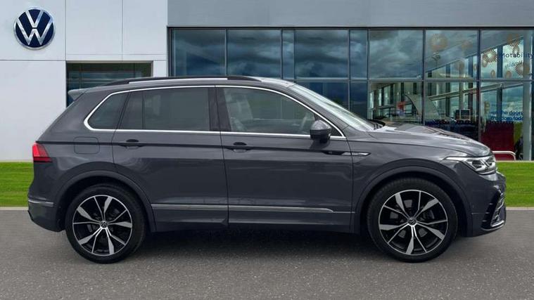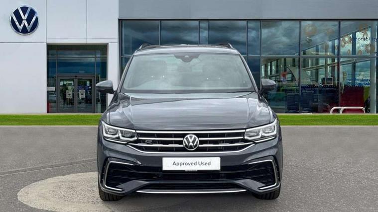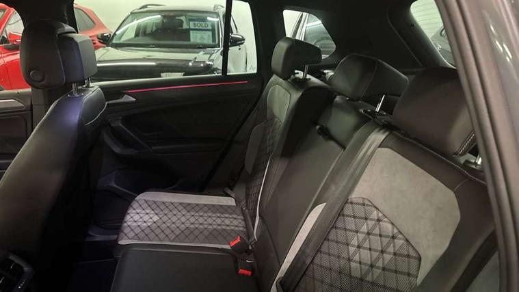 Adaptive cruise control ACC stop and go including speed limiter, App-Connect incl. App-Connect Wireless for Apple CarPlay and Android Auto, Bluetooth phone integration system, Digital Cockpit Pro - Active info display, Distance control assist, Driver alert system, Driver profile selection, Dynamic road sign display, eCall emergency call system, Electromechanical speed sensitive power steering, Engine start/stop button, Lane keeping system Lane Assist, Lights on warning, Multifunction front facing camera, Outside temperature display, Premium multifunction display with multi colour display, Remote control boot opening, Rev counter, Revision / skills operating concept travel assistant, Service interval indicator, Speed limit display, Start/stop system with regenerative braking, Trip computer, Warning sound and light for doors and tailgate open, All wheel drive - 4Motion, Battery regeneration during braking, XDS electronic differential lock for improved traction and handling, 2 USB-C ports in the front, 1 USB-C charging socket on the center console in the rear, Diversity antenna for FM reception, Radio, SD card slot, Simultaneous pairing of 2 compatible mobile devices, SMS functionality - read, compose and send SMS messages using touch-screen display, Title and cover art display, Auto dimming interior rear view mirror, Automatic headlight control system, Black roof rails, Body colour door handles, Body coloured bumpers in R Line style, Body coloured door mirrors with integrated indicators, Chrome moldings on the side windows, Coming/leaving home lighting function, Dynamic headlight range control, Front and rear electric windows, Heated rear window, High level 3rd brake light, Laminated safety glass windshield, heat and sound insulating, LED rear number plate lights, License plate carrier in front and rear, Poor weather light and cornering light, Privacy glass for rear side windows and rear window, R Line body kit, R Line side sills, Rain sensor windscreen wipers, Rear exhaust tailpipe, Rear fog lamp, Rear side wing doors, Rear spoiler in R style, Rear windscreen washer and wiper with interval delay, Side and rear windows in heat insulating glass, Trailer Stability Programme, Unique R Line badging, Windscreen wipers/ intermittent wipe + 4 position delay, 12V outlet in center console rear and in luggage compartment, 12V outlet in front and tray, 2 cup holders in front, 2 LED front reading lights, 2 LED rear reading lights, 3 bench rear seats in 2nd row, 3 rear headrests, 4 load lashing points, 40:20:40 split folding rear seats, Air Care Climatronic 3 zone automatic climate control with enhanced air filter and controls in the rear, Backrest release for left front seat, Black headlining, Brushed stainless steel pedals and footrest, Carpet mats in front and rear with decorative stitching in Gray, Climate control unit rear with touch function, Door and side trim panel in foam film, insert in leatherette, Front centre armrest, Front footwell illumination, Front seats head restraints (x-adjustment), Height adjustable front seats, Height/reach adjust steering wheel, Instrument lighting white adjustable panel illumination, Interior light with delay, Isofix Preparation 2 Rear child seats, Leather gear knob, Lockable cooled glovebox, Luggage compartment lighting, Luggage net, Rear bench seat asymetrically split folding, longitudinally movable and folding with load-through hatch and center armrest, Remote unlocking for rear seat backrest, Removable luggage cover, Removable rear headrests, Safety optimised front head restraints, Single front passenger seat, Sliding/reclining rear seats, Standard rear seat release, Storage compartment in driver's door, Storage compartment in passenger's door, Storage compartment in rear doors, Storage compartments in luggage area left and right, Storage tray on dashboard, Sun visors with illuminated vanity mirrors, Top front comfort seats, Variable boot floor, height adjustable and removable, Ambience pack - Tiguan R Line, Driver assistance pack plus - Tiguan DSG, Park assist pack - Tiguan, 3 point seat belt for centre rear seats, 3 point seat belts with seat belt pretensioners for the outer rear seats, Active bonnet, Curtain airbags for front and rear passengers, Driver/Front Passenger airbags, Drivers knee airbag, Electronic parking brake with auto hold, Electronic Stability Control with driver steering recommendation, ABS, ASR, EDL, EDTC and trailer stabilization, Front assist with autonomous emergency braking (for Adaptive Cruise Control ACC up to 130 mph), Front disc brakes, Front passenger airbag deactivation, Front side airbags, Height adjustable front 3 point seatbelts + pretensioners, Hill hold control, Manual child proof rear door locks, Pedestrian monitoring system, Power assisted brakes, Proactive passenger protection system in combination with front assist, Rear disc brakes, Rigid safety cell with front and rear crumple zones, Two tone horn, Warning sound and light for front seat belts if unfastened, Anti theft alarm system with interior monitoring, backup horn and towing protection, Anti theft wheel bolts, Electronic engine immobiliser, 20" Misano black with diamond turned surface alloy wheels with Airstop tyres, Tool kit,