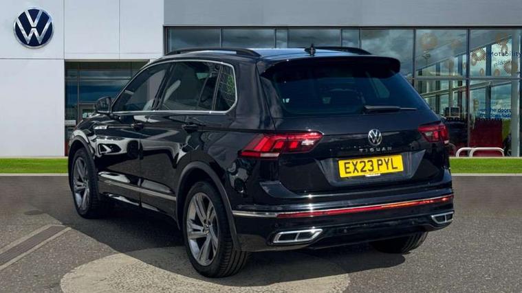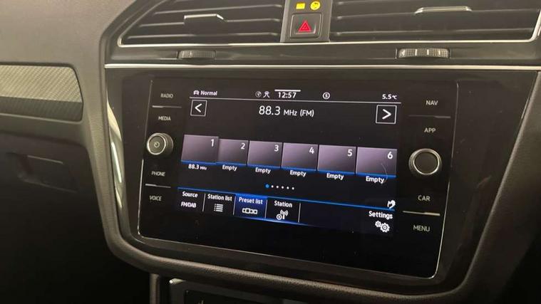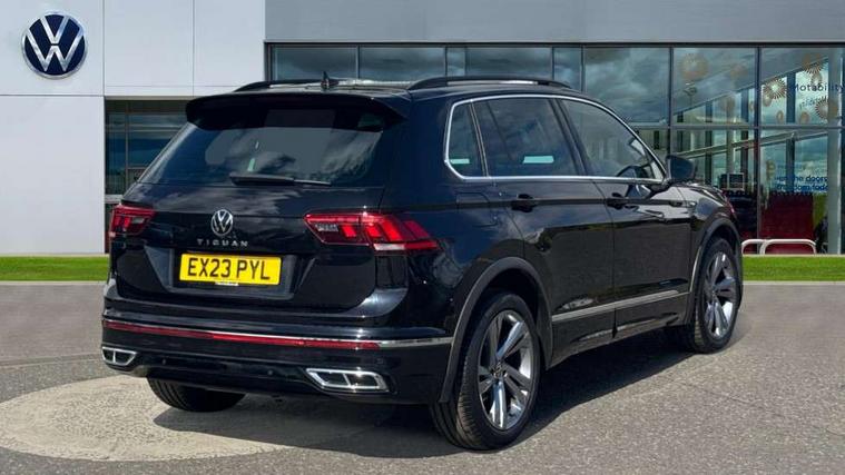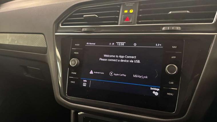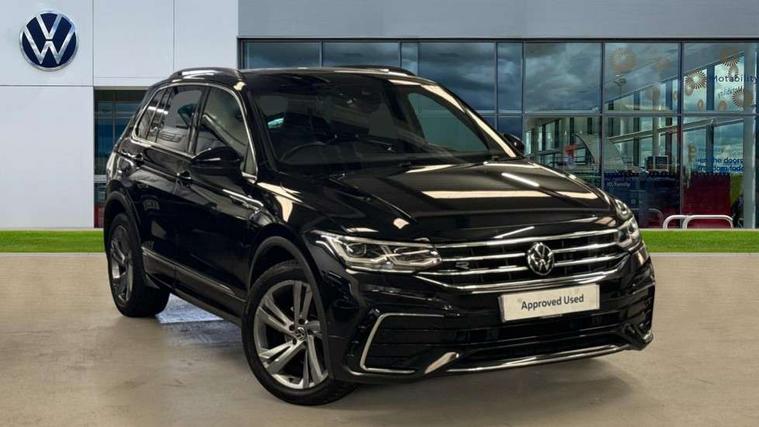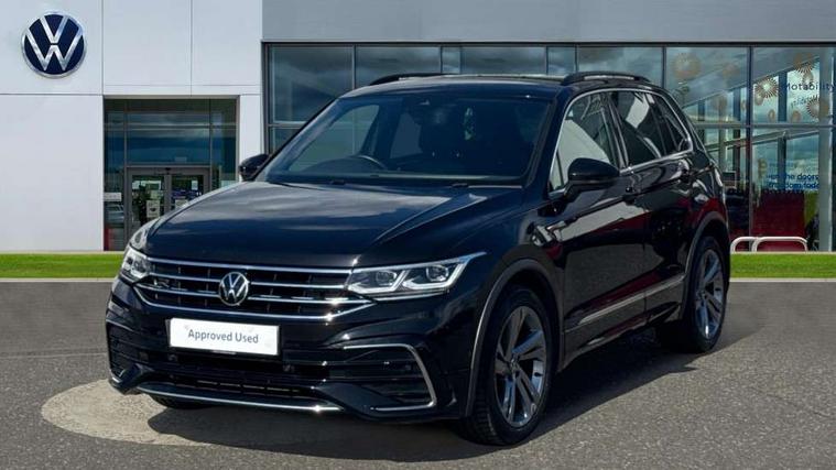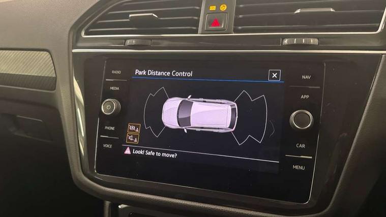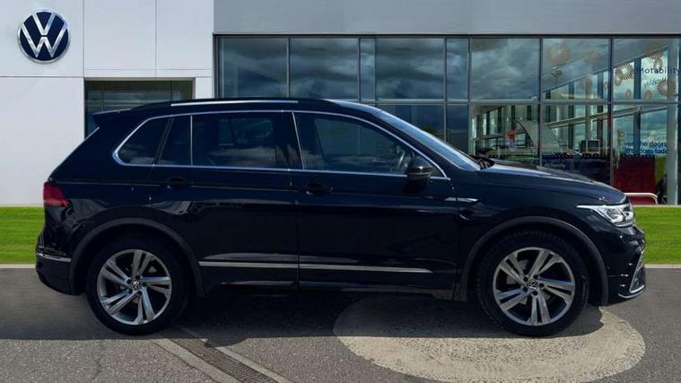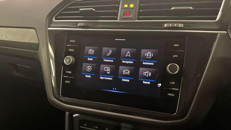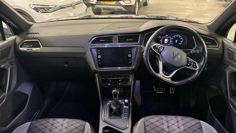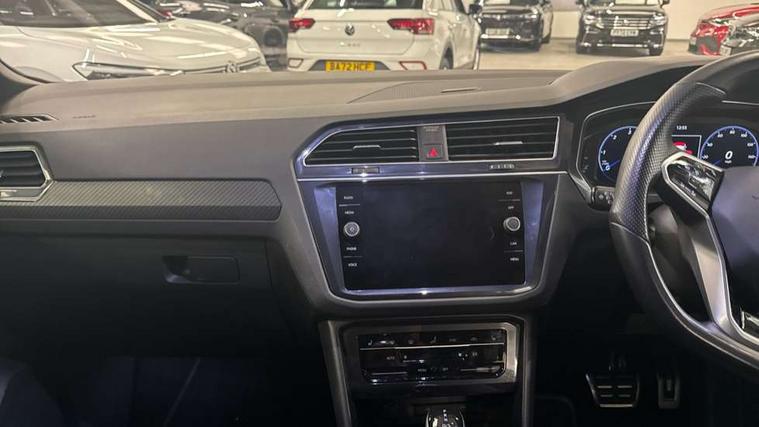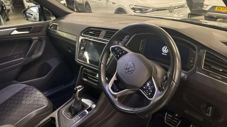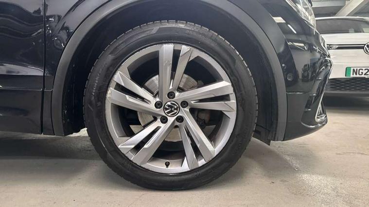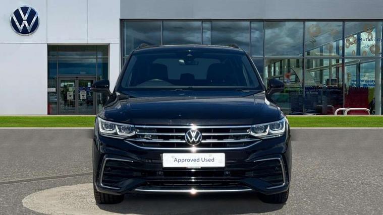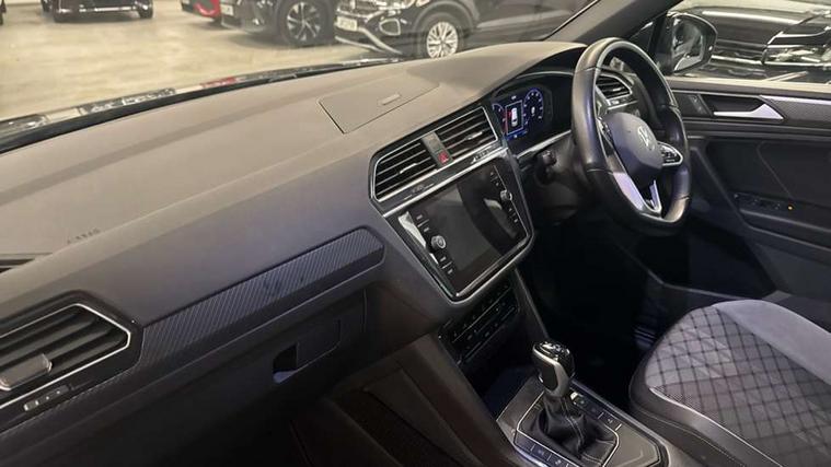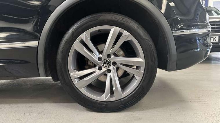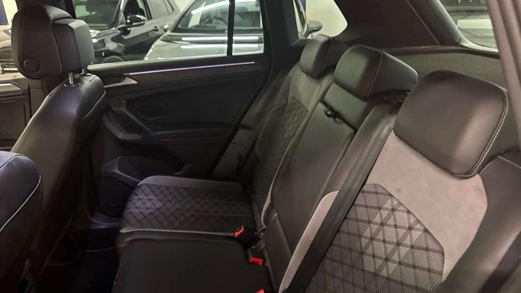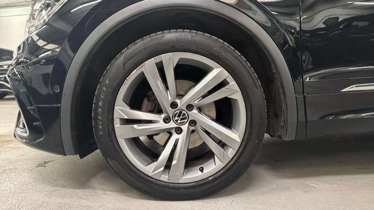 Adaptive cruise control ACC stop and go including speed limiter, App-Connect incl. App-Connect Wireless for Apple CarPlay and Android Auto, Bluetooth phone integration system, Comfort drive travel assist, Digital cockpit pro, Driver alert system, Driver profile selection, Dynamic road sign display, eCall emergency call system, Electromechanical speed sensitive power steering, Emergency assist, Front and rear parking distance sensors, Instrument cluster mph speedometer Great Britain, Lane keeping system Lane Assist, Lights on warning, Multifunction front facing camera, Outside temperature display, Premium multifunction display with multi colour display, Preparation for subsequent activation Navigation feature Discover Media includes Streaming and Internet, Remote control boot opening, Rev counter, Service interval indicator, Speed limit display, Start/stop system with regenerative braking, Tailgate/trunk lid unlocking from outside, Trip computer, Warning sound and light for doors and tailgate open, Battery regeneration during braking, Sports suspension, 8 Speakers, Digital radio reception DAB+, Diversity antenna for FM reception, Radio, Auto dimming interior rear view mirror, Automatic headlight control system, Body colored bumpers in R-Line style, Body colored exterior mirror housings, Body colour door handles, Chrome moldings on the side windows, Coming/leaving home lighting function, Dynamic headlight range control, Front and rear electric windows, Heated rear window, High level 3rd brake light, Laminated safety glass windshield, heat and sound insulating, LED headlamps with LED separate daytime running light and dynamic cornering light, LED rear combination lamps, LED rear number plate lights, License plate carrier in front and rear, Poor weather light and cornering light, Power adjustable, folding and heated door mirrors with surround lighting, front passenger exterior mirror lowering function, Privacy glass for rear side windows and rear window, R Line body kit, R Line side sills, Rain sensor, Rear exhaust tailpipe, Rear fog lamp, Rear side wing doors, Rear spoiler in R style, Rear windscreen washer and wiper with interval delay, Side and rear windows in heat insulating glass, Trailer Stability Programme, Unique R Line badging, Windscreen wipers/ intermittent wipe + 4 position delay, 12V outlet in center console rear and in luggage compartment, 12V outlet in front and tray, 2 LED front reading lights, 2 LED rear reading lights, 3 bench rear seats in 2nd row, 3 rear headrests, Air Care Climatronic 3 zone automatic climate control with enhanced air filter and controls in the rear, Art Velours greyson sports cloth upholstery, Backrest release for left front seat, Black headlining, Brushed stainless steel pedals and footrest, Carpet mats in front and rear with decorative stitching in Gray, Climate control unit rear with touch function, Door and side trim panel in foam film, insert in leatherette, Driver + front passenger lumbar support, Front footwell illumination, Front scuff plates in aluminum with R-Line logo, Front seats head restraints (x-adjustment), Height adjustable front seats, Height/reach adjust steering wheel, Isofix Preparation 2 Rear child seats, Leather gear knob, Rear bench seat asymetrically split folding, longitudinally movable and folding with load-through hatch and center armrest, Remote unlocking for rear seat backrest, Single front passenger seat, Sun visors with illuminated vanity mirrors, Top front comfort seats, Winter pack - Tiguan, 3 point seat belt for centre rear seats, 3 point seat belts with seat belt pretensioners for the outer rear seats, Curtain airbags for front and rear passengers, Driver/Front Passenger airbags, Drivers knee airbag, Electronic parking brake with auto hold, Electronic Stability Control with driver steering recommendation, ABS, ASR, EDL, EDTC and trailer stabilization, Front assist with autonomous emergency braking (for Adaptive Cruise Control ACC up to 130 mph), Front disc brakes, Front passenger airbag deactivation, Front side airbags, Height adjustable front 3 point seatbelts + pretensioners, Manual child proof rear door locks, Pedestrian monitoring system, Proactive passenger protection system in combination with front assist, Rear disc brakes, Two tone horn, Tyre pressure loss indicator, Warning sound and light for front seat belts if unfastened, Warning triangle, Anti theft alarm system with interior monitoring, backup horn and towing protection, Anti theft wheel bolts, Electronic engine immobiliser, Keyless locking and starting system keyless access with safelock, Chrome elements on the mirror switch power window switches and door pulls, Decorative inserts Carbon Gray for dashboard and front door trim panels, Interior door handle in matte chrome, 19" Valencia alloy wheels with AirStop tyres, Tool kit, Tyre mobility kit Includes 12V compressor and tyre sealant,