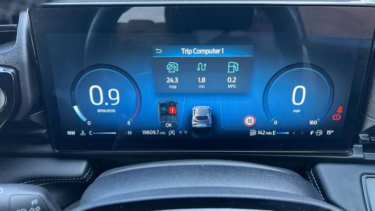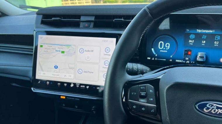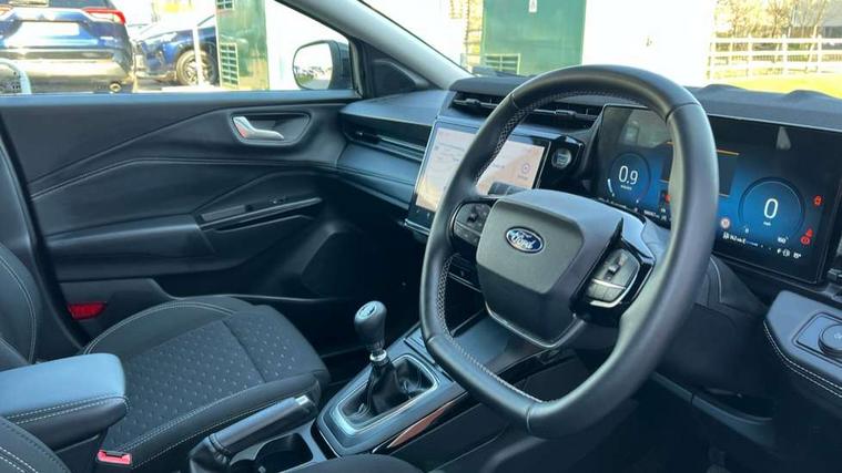 Driver impairment monitor, Emergency call service, Ford easy fuel, Full digital 12.8" instrument cluster, Lane keeping aid with lane departure warning, Power assist steering, Selectable drive modes(Normal, Eco, Sport, Slippery and Trail), Speed sign recognition, Standard suspension, 12" landscape touchscreen display with wireless apple car play and android auto 6 speaker audio system, Ford pass connect and emergency assistance, Ford SYNC4 with connected navigation, Automatic headlights with rain sensing wipers and auto high beam, Front fog lamps, LED daytime running lights, LED rear lamps, LED third brake light, Quickclear heated windscreen, Rear privacy glass, Rear side wing doors, Rear wiper, 3 seat bench in 2nd row, Centre console with armrest and stowage, Electronic automatic temperature control (EATC), Ford megabox extended bootspace, Front and rear head restraints, Front floor mats, Manual 4 way driver seat adjust with lumbar adjustment, Single front passenger seat, Titanium cloth upholstery, 3 rear seatbelts, Child safety lock, Electronic stability control (ESC) and hill start assist, Pre-collision assist with autonomous emergency braking, pedestrian/cyclist detection & post-collision braking, Tyre pressure monitoring system (TPMS), Thatcham alarm, 17" Absolute black machined finish alloy wheel,
