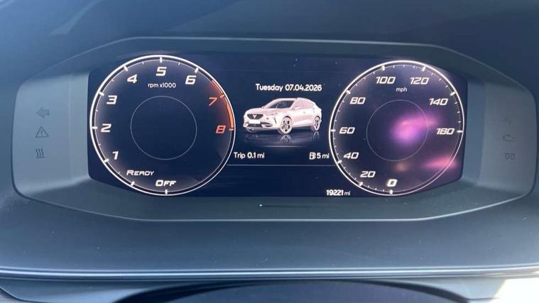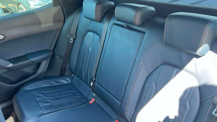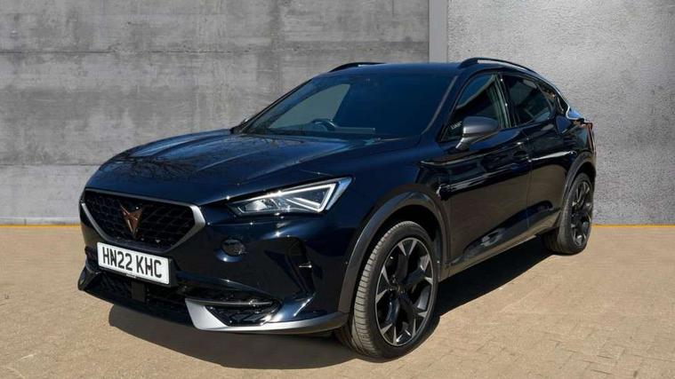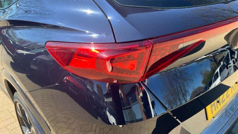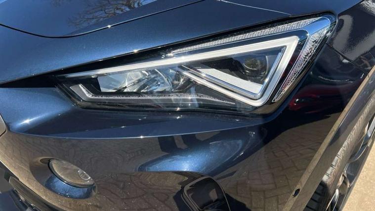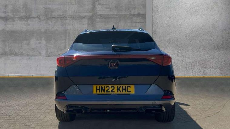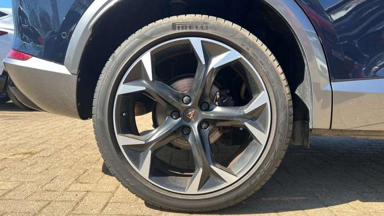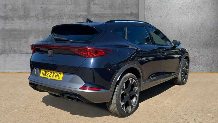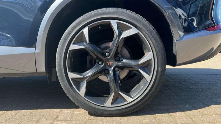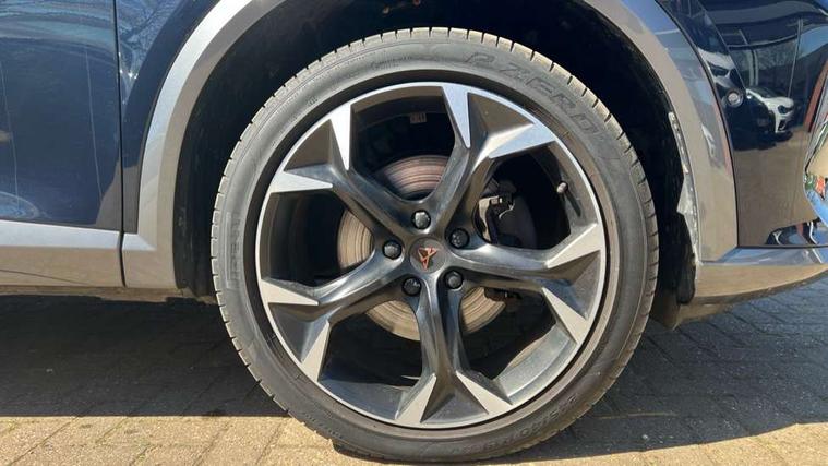 Digital cockpit and configurable dashboard, Driver alert system, Driving profile selection, E-call, Forward collision warning with automatic braking, Lane assist, Park assist (inc front/rear parking sensors), PAS, Predictive adaptive cruise control with speed limiter, Rear view camera, RPM, trip computer, outside temp gauge, instrument light brightness, low fuel warning light, lights on reminder, gearshift indicator, Service interval indicator, Start/stop system with regenerative braking, Wireless apple carplay, Wireless phone charger, Electronic locking differential and dynamic traction support, Standard suspension, 2 front and 2 rear USB type C sockets, Auxiliary input socket, DAB radio, Auto dimming rear view mirror, Body colour door handles, Body coloured bumpers, Dark grey wing mirror, Daytime running light with automatic headlight control and coming home feature, Dynamic headlight range control, Electric front/rear windows, Electrically adjustable heated and folding door mirrors with memory function, Electrically adjustable, heated and folding door mirrors, Front fog lamps with cornering function, Gloss black roof rails and window surrounds, LED Headlights, LED Taillights with dynamic indicator, Rain sensing wipers, Rear diffuser with black simulated exhaust pipes, Rear side wing doors, Rear wash/wipe, Third brake light, Tinted rear windows, Welcome lights, 12v power supply in centre console, 12V socket, 12v socket in loadspace, 2 front and 2 rear reading lights, 230V socket, 3 seat bench in 2nd row, 60/40 split rear bench seat with armrest and mechanical seat release, Dust/pollen filter, Front and rear head restraints, Front centre armrest, Heated steering wheel, Height/reach adjust steering wheel, Illuminated interior front door sills, Illuminated sunvisor with mirror, Isofix, Leather multi function heated steering wheel with gear shift paddles, Leather multi function steering wheel with gear shift paddles, Luggage tie-down hooks, Single front passenger seat, Three zone climate control with control panel in rear, Variable luggage/load compartment floor, Wraparound lighting, Genuine Nappa leather Pack - Cupra, Navigation system pack with 10" navigation system - Formentor, 3 point seatbelts on all rear seats, ABS, Brake control system - ESC and brake booster, Child proof door locks, Driver and front passenger airbags with front passenger airbag de-activation, Electronic parking brake, Front and rear disc brakes, Front side curtain airbags, Hill hold control, Seat belt reminder for front and rear seats, Tyre pressure monitoring system, Anti theft alarm system, Keyless entry and start system (KESSY), Locking wheel bolts, Copper and aluminium interior detailing, 19" 'Exclusive' machined sport matte black and silver alloy wheels,