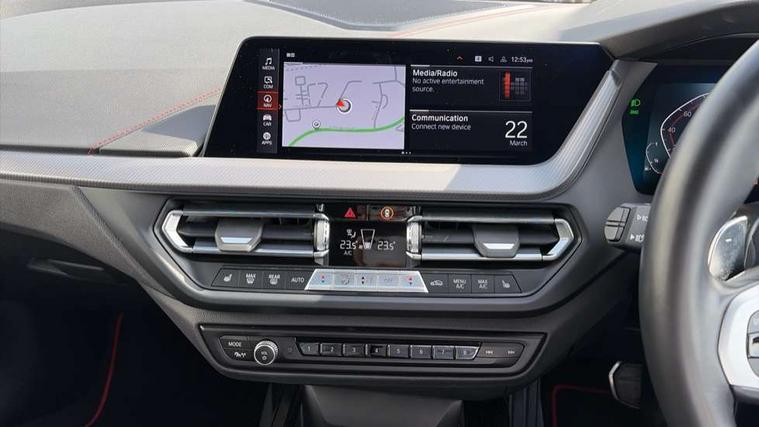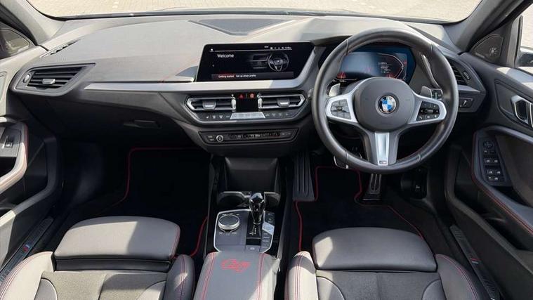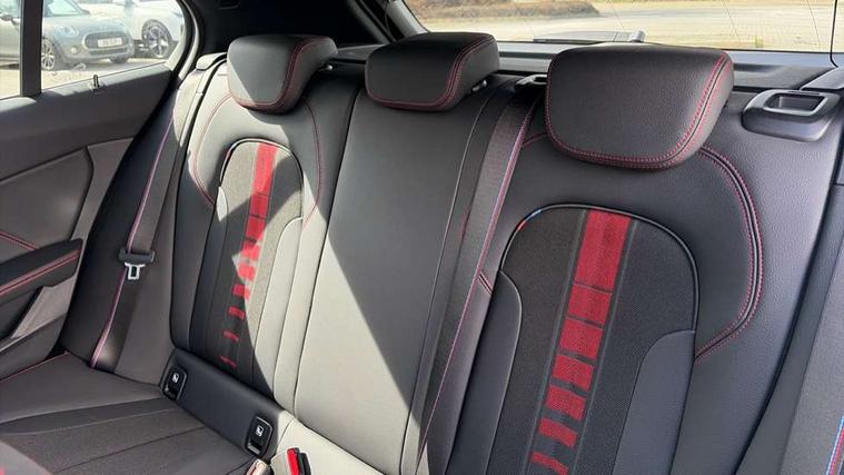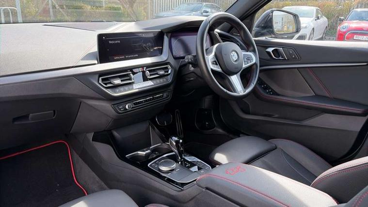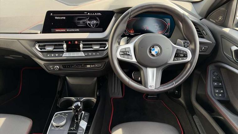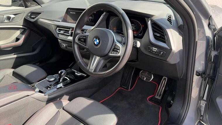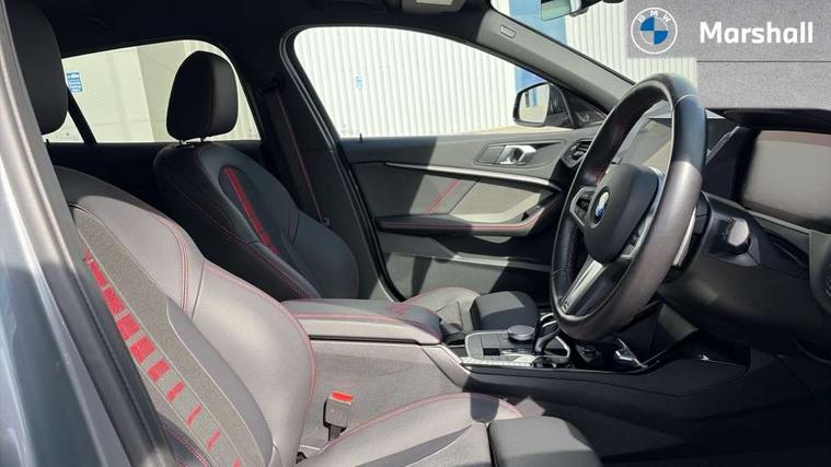Active guard plus, Attentiveness assist, BMW ConnectedDrive online services, BMW Teleservices, Check Control warning system for monitoring of lights and door/luggage compartment open warning, Cruise control with speed limiter, Eco pro mode, Electric power steering with Servotronic steering optimised at all speed ranges, Front axle single joint with specific axle kinematics to minimise drive influences on steering + provide increased rigidity agile driving behaviour, Integrated owners handbook, Lane departure warning system, Oil sensor for level and grade, On board computer, Optimum shift indicator, Personal Profile, Pull away assistant, Rigidly mounted rear subframe - Multi link construction with separate spring / damper configuration and excellent driving characteristics, Speed limit Info including no-overtaking indicator, Aluminium lightweight construction, Anti roll bar front and rear, Balancer shaft, Double VANOS twin scroll turbocharging system, Drive Performance Control, Eight speed sport automatic transmission with gearshift paddle switches, Electronic differential lock, High precision injection, Larger fuel tank capacity (50 litres), M sport suspension with M128i xDrive specific settings, Petrol Particulate Filter, Twin tube gas filled shock absorbers with degressive characteristic curve, VALVETRONIC engine management, DAB Digital radio, Auto dimming rear view mirror, Automatic headlight beam throw control, Automatic windscreen wipers and automatic headlight, Black chrome tailpipe finishers, BMW individual high gloss shadow line with extended content, Body colour door handles, Body colour mirror caps, Body colour roof trims, Chrome 'M' logo side designation, Chrome kidney grille frame with Satin Aluminium struts, Direction indicator side lights in exterior mirrors, Electrically adjustable exterior mirror with mirror adjustment switch on drivers armrest and aspheric on driver side, convex on passenger side, Fading support, Folding side mirrors with auto dimming/folding wing mirrors with auto dimming, Follow me home headlights, Front and rear bumper system with replaceable deformation elements, Front and rear electric windows with open and close fingertip control, anti trap facility and comfort closing, Front door sill finishers in black plastic with M designation in metallic look, Green tinted heat protection glazing, High gloss shadowline window frame, Recess cover mirror frames and B/C pillar embelisher trim, High level third brake light, Integrated front windscreen with washer jets, Kidney frame and struts in high gloss black extended, LED daytime running lights, LED eyebrow turn indicators, Lightweight engineering, Matt black air guide grilles, Matt black wheel arch trim, Model designation on electric bootlid, Nearside reverse light in rear light cluster, Preparation for high beam assistant, Rear fog lights, Rear side wing doors, Rear window wiper, Shark fin antenna, Trailer stabilisation logic, Visible VIN plate, Welcome lighting, 12V power socket in front centre console with blanking plug, 3 rear seat head restraints, 3 seat bench in 2nd row, Anthracite headlining, Black boot net with lashing eyes, Cargo function on 2nd seat row, Child seat ISOFIX attachment for two outer rear seats and front passenger seat with anchorage points, Conditioned based service, Driver and front passenger backrest net on rear, Driver and front passenger seat heating, Driver side folding compartment in instrument panel, Folding rear clothes hook, Four grab handles integrated in roof lining, Front and rear door pockets with bottle holders, Front and rear side armrest integrated into door trim, Front armrest, Front sports seats, Glove compartment, Height adjustable front head restraints, Luggage compartment for bag hooks on left and right, foldable luggage compartment liner and four lashing eyelets, Manual adjust steering wheel, Multi-function controls for steering wheel, Single front passenger seat, Storage compartment in centre console, Storage compartment in luggage compartment, Stowage of the parcel shelf in luggage compartment trim, Sun visors with vanity mirrors and insert tab, Three spoke M sport design multi function leather steering wheel in unique red stitching, Two front centre console cupholders, Two zone automatic air conditioning, Type C two USB ports in rear centre console, Additional interior lighting pack - 1 Series, BMW live cockpit professional pack- 1 Series, Connected pack professional - 1 Series, Interior lights pack - 1 Series, M Sport exterior styling aerodynamics pack - 1 Series, 2 tone horn, 3 point seatbelts on all seats, front pyrotechnic belt tensioners, stopper and belt force limiters, rear coded belt buckles, Airbags - Front driver/passenger, front and rear curtain head protection, front side, manual deactivation of front passenger airbag, Anti lock braking system (ABS) with brake assist, BMW emergency call, Brake drying, Braking readiness, Child proof locking system in rear door, City braking function, Comfort modes, Cornering brake control, Crash sensor activating of airbags, Unlocking doors, hazard warning lights, interior light, safety battery terminal, Driver and front passenger seat belt security check, Dynamic stability control + (DSC+), Dynamic Traction Control - DTC, Electrically operated hand brake including automatic hold function, Front and rear disc brakes, M Sport brakes with red calipers, M Sport seatbelts, Seatbelt warning, Side impact protection, Tyre pressure monitoring system, Warning triangle and first aid kit, Central locking switch for all doors, fuel filler cap and luggage compartment, Deadlocking function system to all doors, Drive away locking system on all doors and luggage compartment with de-activated in iDrive settings, Locking wheel bolts, Remote control with integrated key with High-gloss Black inlay and M designation and 1 button for open/ close lock, window, open luggage compartment, Start/stop button illuminated in centre console with k