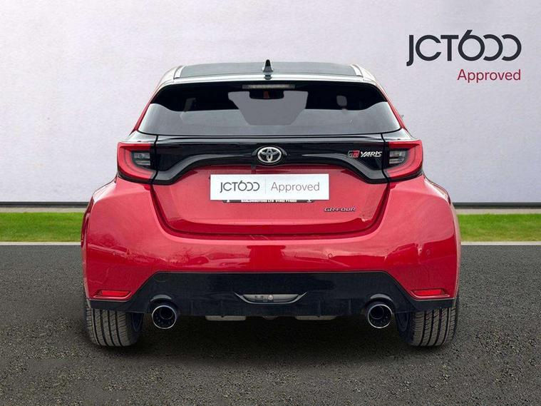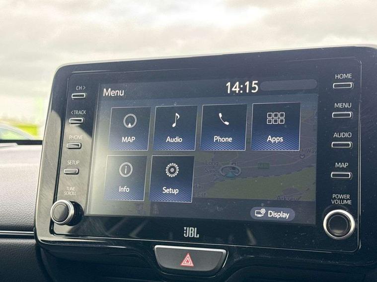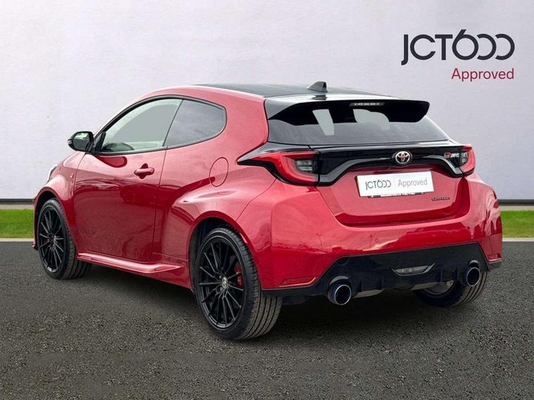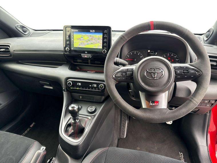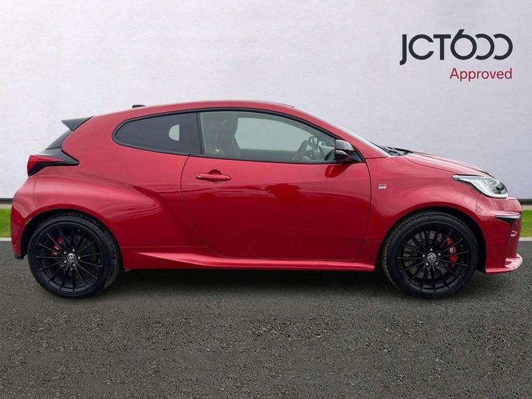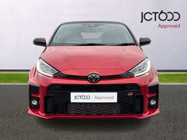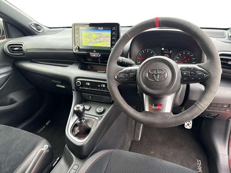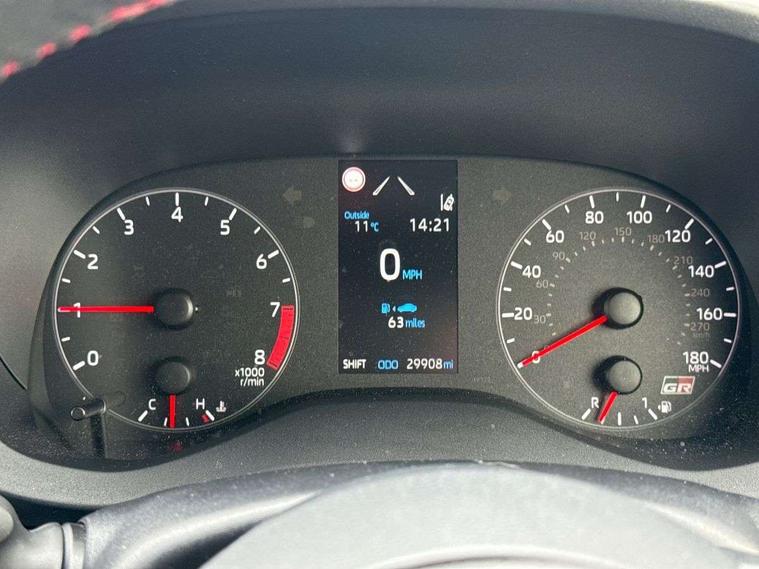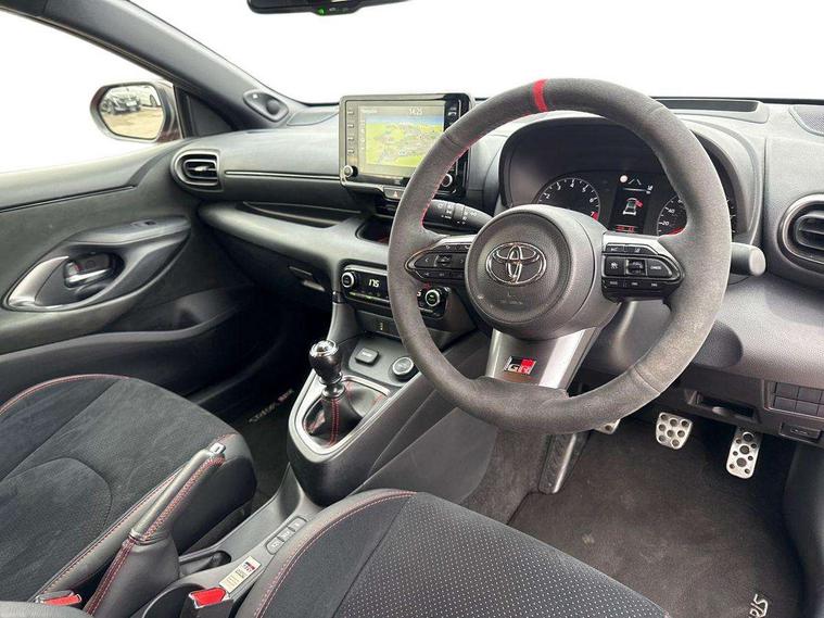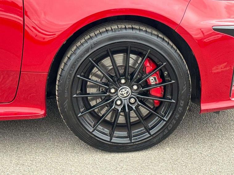Apple car play/Android Auto, BSM(Blind spot monitoring) and RCTA(Rear cross traffic alert), Coloured TFT multi informational display, eCall emergency system, Emergency steering assist, Front and rear parking sensors, HUD - Head up Display, Intelligent adaptive cruise control, Lane Departure Alert (LDA) switch on steering wheel, Lane trace assist, Power Steering, Pre-collision system (PCS), Reversing camera, Road sign assist - RSA, Voice recognition, Double wishbone rear suspension, GR-Four AWD switch, MacPherson front suspension, Vehicle Stability Control (VSC), 8" Multimedia display touch screen, DAB Digital radio, JBL with 8 speaker system, Toyota touch with go navigation, USB connection, Adaptive high beam assist, Adaptive LED Headlights, Air intakes for brake cooling, Auto dimming eletrochromatic rear view mirror, Auto windscreen wipers, Automatic headlights, Automatic headlights cut-off, Automatically retractable door mirrors, Black contrasting colour door mirrors, Black rear spoiler, Body coloured door handles, Body coloured rear bumper, Carbon fibre roof wrap, Chrome centre cap surrounds, Door scuff plates, Dual exhaust pipes, Electric adjustable heated door mirrors, Follow me home headlights, Front auto power windows with anti jam protection, Gloss black GR front bumper, GR badges 1 front, 1 rear and 2 sides, GR lower front grille, Integrated LED indicators in door mirrors, LED daytime running lights, LED fog lights, LED High mounted stop lamp, LED rear combination lights, Piano black side air vents, Privacy glass on rear and back windows, Rear auto power windows with anti jam protection, Rear window defogger, Shark fin antenna, 12v socket in front, 2 rear head restraints, 3 spoke leather sports steering wheel, 60/40 split folding rear seat, Aluminium pedals, Clean air filter, Driver and passenger headrests, Driver's sun visor with vanity mirror, Dual zone automatic air conditioning, Front bottle holders, Front cup holders, Front map light, Front sports seats, GR floor mats, GR logo on steering wheel, GR Ultrasuede leather upholstery, Height adjustable driver's seat, Illuminated entry system, Isofix child rear seat restraints, Leather gearshift, Leather handbrake, Manual slide adjustable on driver's and passenger seats, Microphone on front personal light, Multimedia switch on steering wheel, Pollen filter, Red stitching on gearshift, Red stitching on handbrake lever, Satin chrome interior door handles, Soft tonneau cover, Ticket holder on driver's sun visor, Tilt/telescopic steering column, ABS with Brake Assist, Airbags - driver and front passenger, Driver and passenger side airbags, Emergency brake light system (EBS), Front passenger airbag on/off switch, Front seatbelt reminder, Hill start assist control (HAC), Open differential lock, Rear passenger airbag, Rear seat belt reminder, Start holding control, Tyre pressure warning system, Alarm/immobiliser, Keyless smart entry with push button start, 18" 15 spoke Dunlop SP sport black alloy wheels, Tyre repair kit,