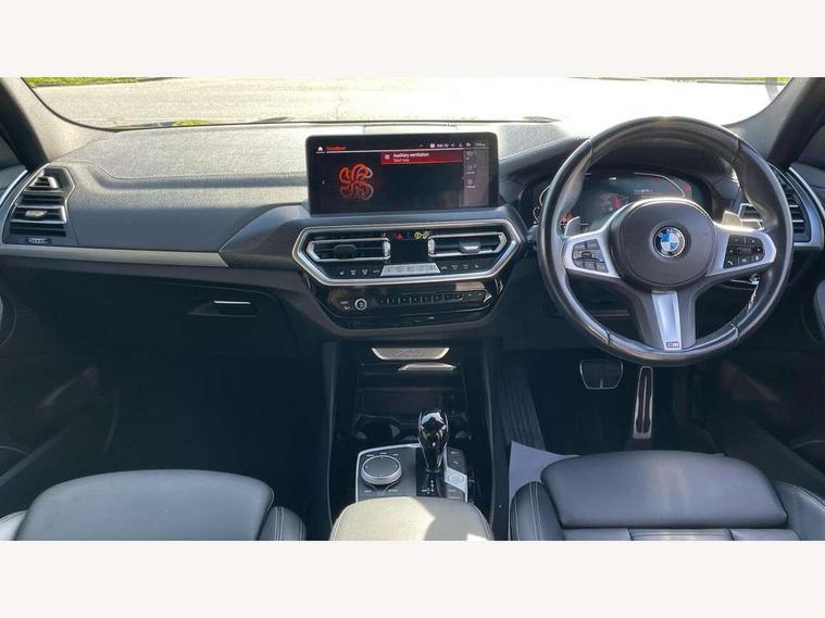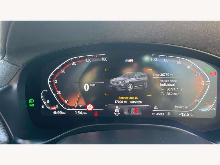 Active Guard, Attentiveness assist, BMW Live Cockpit Professional nav system including 12.3" instrument display + 12.3 high resolution control display, BMW Online services, BMW Teleservices, Brake pad wear indicator in front and rear, Check Control warning system for monitoring of lights and door/luggage compartment open warning, Condition based service - BMW service history, electronic service booklet, integrated owner's handbook, Connected drive services, Cruise control with brake function + speed limiter, Electric boot lid, Front/rear Parking distance control, iDrive touch controller with 8 favourite buttons, Instrument cluster with speedometer with mph readout, tachometer, fuel gauge and oil temperature gauge, Lights on warning by audio warning signal when ignition is switched off, Oil sensor for level and grade, warning by check control system, On board computer - average speed+fuel consumption, service interval, clock/date, odometer/trip meter, outside temperature display and ice warning, Optimum shift indicator, Personal Profile - automatic lock when driving away selectable, Run flat indicator, Stop/start system, Variable sports power steering with drive performance control Sport+ mode, Automatic transmission with gearshift paddles, Incorrect fuelling protection, M sport suspension, Multi-link rear suspension, BMW professional radio/CD/MP3, DAB tuner, Acoustic glazing, Automatic windscreen wipers and automatic headlight, Black finish on B pillars, Body colour door handles, Body colour electric adjust heated aspherical door mirrors, Body colour roof mouldings, Body coloured bumpers, Direction indicator, side repeaters, integrated in exterior mirrors, Dynamic brake lights, Exhaust tailpipes - dual, round, split left and right with chrome finisher, Fingertip control / anti-trap function on electric window, Folding wing mirrors with auto dimming, Follow me home headlights, Front and rear bumper system with replaceable deformation elements, Front and rear electric windows, Gloss chrome tailpipes finishers, Green tinted heat insulating glass, Heated windscreen washer jets, High beam assistant, High gloss black shadow line roof rails, High gloss shadowline exterior trim in decorative moulding side frame/recess cover/guide rail/B, C pillars/mirror frame and triangle with mirror base, High level 3rd brake light incorporating LED Technology, Interior rear view electrochromatic mirror with automatic anti dazzle function, LED tail lights, Lightweight engineering, M aerodynamic bodystyling, M Sport entry door sill strips, Model designation, Rain sensor, Rear side wing doors, Rear wing door, Rear wiper, Shark fin antenna, Side exterior M designation badges, Visible VIN plate, Welcome lighting, Windscreen wipers with adjustable interval, 12V power point in luggage area, 12V power socket in front centre console, 2 x USB Type C ports for charging and data transmission (front centre console) and 2 x USB Type C ports for charging (rear centre console), 3 rear headrests, 3 seat bench in 2nd row, 3 zone automatic air conditioning, 4 lashing points to secure luggage, 40:20:40 split folding rear seat with loading system, Ambient lighting, Anthracite headlining, Automatic interior light when door is opened/ignition switched off or via remote key, Floor mats in velour, Foldable storage floor with compartment, Four grab handles integrated in roof lining, Front and rear bottle holders integrated into door trim storage compartments, Front and rear side armrests integrated into door trim, Front centre armrest with storage compartment, Front footwell lights, Front head restraints, Front passenger seat, Front sports seats, Front/rear courtesy lights with soft on/off dimming, Front/rear reading lights, Heated front seats, Isofix rear child seat preparation, Leather gear knob, Lockable glove compartment, Luggage area underfloor compartment, Luggage compartment lighting, M sport leather steering wheel, Multifunction steering wheel, Parcel shelf removeable and storable under boot floor, Reach and rake adjustable steering column, Rear centre armrest with 2 cupholders, Removable / retractable luggage cover, Slope adjustable rear seats, Storage compartment in rear centre console and front/rear door trims, Sun visors with vanity mirrors and ticket pocket, Toolkit located in luggage compartment, Two front cupholders with removable oddments tray/lid, Connected pro pack - X3, Driving assistant pack - X3, ADB - Automatic Differential Brake, Anti-lock braking system (ABS) with brake assist, Automatic Stability Control (ASC), Battery safety cut-off, BMW emergency call, Brake drying, Brake energy regeneration, Braking pre-tensioning, Child locks on rear doors, Cornering brake control (CBC), Crash Sensor - activation of central locking release, hazard warning light and interior lighting, Deactivation of fuel pump in the event of a crash, Driver and front passenger front and side airbags with passenger deactivation and ITS front and rear head airbags, Driver and front passenger knee airbag, DSC+, Dynamic brake control, Dynamic Traction Control - DTC, Electromechanical parking brake, Hill descent control, Hill start assist, Seatbelt security check for front seats, Side impact protection, Three point seatbelts to all seats with front and outer rear pyrotechnic belt tensioners and seat belt force limiters, Two tone horn, Tyre pressure sensor, Ventilated front and rear disc brakes, Warning triangle and first aid kit, Central locking switch for all doors, fuel filler cap and luggage compartment, Electronic engine immobiliser, Locking wheel nuts, Remote control including two integrated key - one button for open/close all lockable content, windows and separate button for open luggage compartment, Remote control Thatcham category 1 alarm, Start/stop button with Comfort Go keyless engine start and auto Start/stop deactivation button, Low rolling resistance tyres,