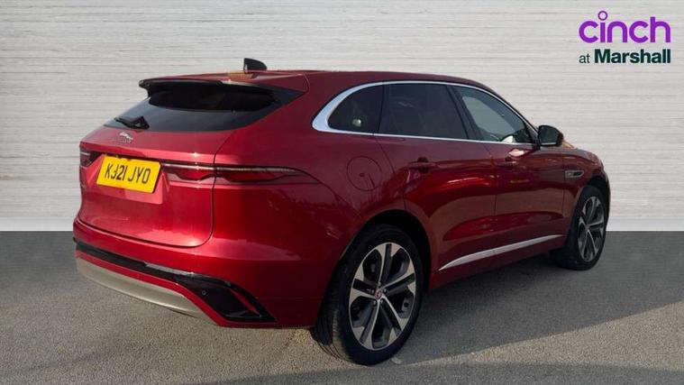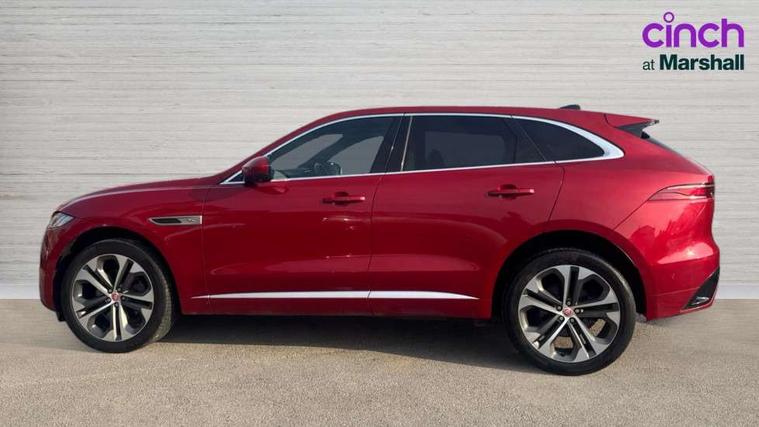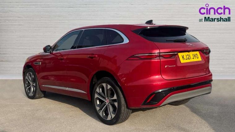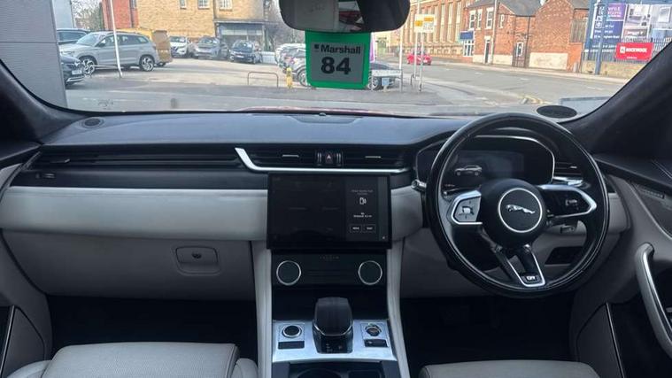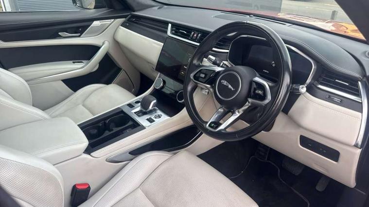 11.4" touchscreen, 3D surround camera, Adaptive cruise control, Android Auto, Apple car play, Blind spot assist, Bluetooth connectivity, Clear exit monitor, Driver alert system, Driver condition monitor, Eco driving style assistant, Electric power assisted steering, InControl remote, Interactive Driver display instrument cluster, Jaguar Toggle shift selector, Lane departure warning system, Lane keep assist, Outside temperature gauge, Personalisation profile management, Pivi pro connected navigation system with app interface and media storage, Pro services and wifi hotspot, Push button starter, Rear collision monitor, Rear traffic monitor, Service interval indicator, Speed proportional steering, Start up sequence with movement in dials and lighting, Traffic sign recognition with adaptive speed limiter, Trip computer, Voice control system, 8 speed automatic transmission, Adaptive dynamics, All terrain progress control, All Wheel Drive (AWD), Configurable dynamics, Open differential with torque vectoring by braking, AM/FM radio, Bluetooth streaming, DAB Radio (Digital Audio Broadcasting), Dynamic volume control, InControl apps, InControl protect, iPod integration, 3 flash lane change indicators, Animated directional indicators, Approach Illumination, Auto dimming rear view mirror, Automatic headlights, Body colour door mirrors, Electric heated/power fold memory door mirrors with approach lights and auto dimming driver side, Electric windows with one touch open/close and anti trap, F-Pace badge, Green tinted glass, Heated front windscreen + heated washer jets, Heated rear window with timer, Illuminated metal tread plates with Jaguar script, Jaguar script and leaper, LED tail lights, Non acoustic front windscreen, R Dynamic badge on side door, Rain sensor windscreen wipers, Rear fog lights, Rear metal tread plates, Rear wiper, Trailer stability assist, Variable front intermittent wipers, 12V power point front, 3 rear headrests, Air distribution speed, Cabin lighting, Centre armrest console, Centre console with side storage, Door sill tread plates, Electrically adjustable steering column, Fold flat front seats, Front centre armrest with storage compartment, Front door storage space, Glovebox finisher with jaguar script, Heated steering wheel, Hooks in loadspace, Illuminated glovebox, Interior front door handles with separate locking switches, ISOFIX on outer rear seats, Jaguar sense, Luggage tie downs in loadspace, Mist sensing, Multifunction steering wheel, Overhead lighting console, Overhead stowage for sunglasses, Passive front head restraints, Premium carpet mats, R-Dynamic branded leather steering wheel, Rear air vents, Rear armrest with twin cupholders, Rear centre headrest, Rear door storage space, Reversible boot floor, Satin chrome gearshift paddles, Shopping bag hook, Sunvisors with illuminated vanity mirrors, Twin front cupholders with cover, Online Pack with data plan - F-Pace, 355mm front brakes and 325mm rear brakes, 3x3 point rear seatbelts, ABS, All surface progress control (ASPC), Brake pad warning light, DSC - Dynamic Stability Control, Electric parking brake (EPB), Front airbags with passenger seat occupant detector, Front and rear seatbelt reminder, Front side airbags, Full length side window curtain airbag, Hill launch assist, Power operated child locks, Torque vectoring brake, Traction control, Tyre pressure monitoring system, Immobiliser, Keyless entry, Keyless start, Locking wheel nuts, Perimeter alarm, Remote central locking, Valet mode,