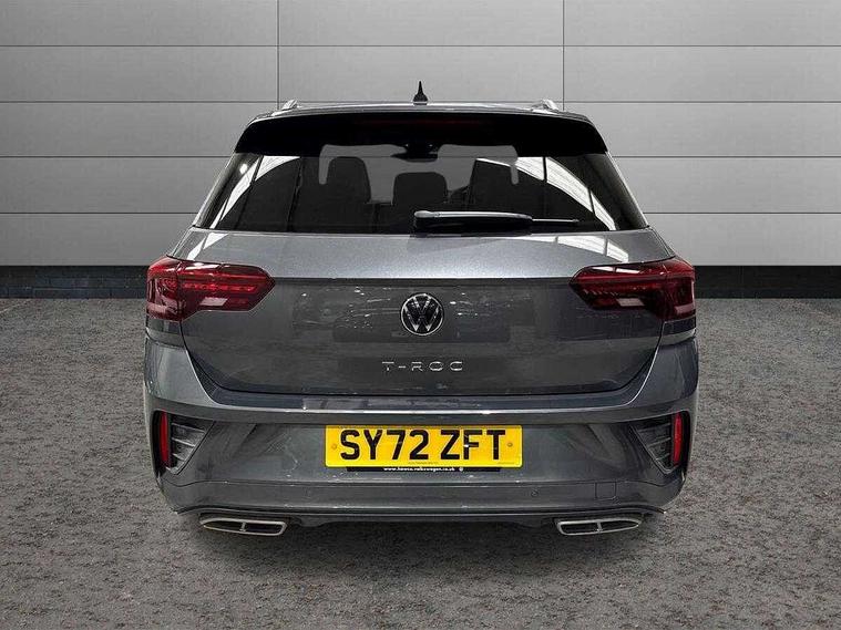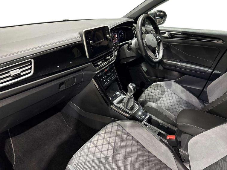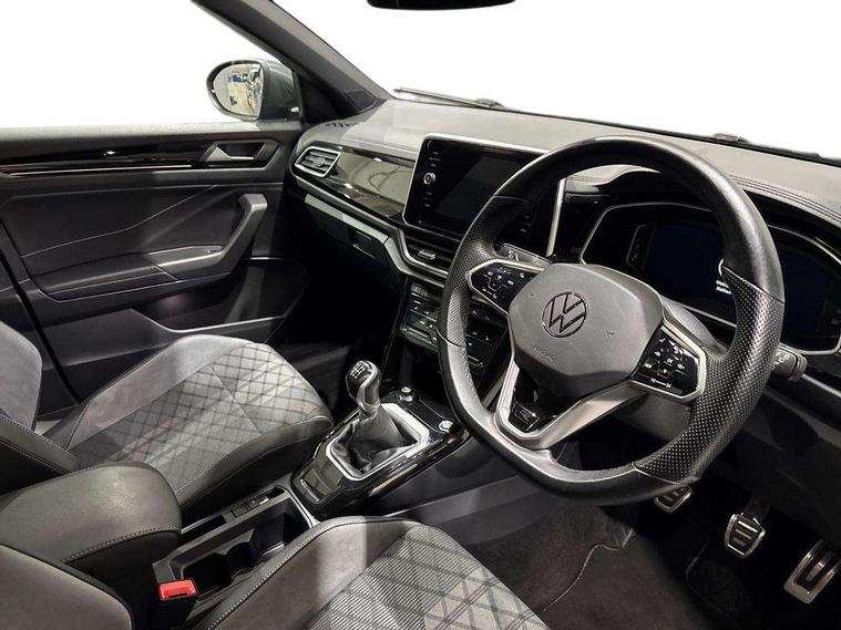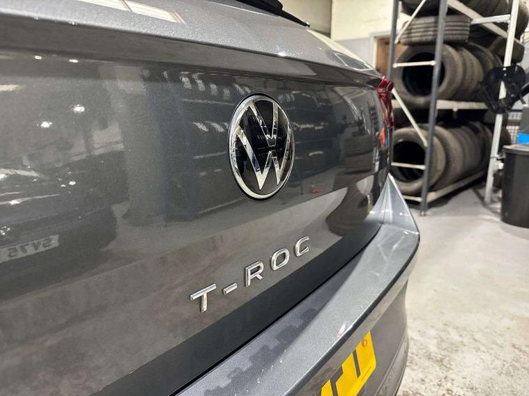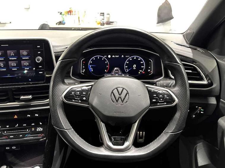 10.25" Digital cockpit pro, Bluetooth mobile phone interface, Driver alert system with fatigue detection, Driver tips and journey analysis, Emergency call service, Lane keeping system Lane Assist, Modified key software - reduce switch off time for key status change to Long no motion, Online services, Park assist including front and rear parking sensors, Service interval indicator, Tailgate/trunk lid release from outside, Think blue trainer driver tips and journey analysis, Warning sound and light for front seatbelts unfastened, Wireless app connect, Battery regeneration during braking, Start/stop function with battery regeneration, Diversity antenna for FM reception, Front and rear 6 speakers, Music playback - MP3, WMA and AAC files, Premium USB cable in choice of either Apple or Android smartphone compatibility, SD card slot, Simultaneous pairing of 2 compatible mobile devices, Title and cover art display, We Connect and We Connect Plus functionality, 3rd brake light, Auto dimming interior rear view mirror, Automatic hazard lights activation under emergency braking, Automatic headlight control with LED separate daytime running lights with coming/leaving home function, Extended roof spoiler, Exterior mirrors aspherical on driver side, convex on front passenger side, External USB type C socket and charging sockets, Front windscreen wiper with intermittent wipe and 4 position delay, Heated rear window, LED Plus headlamps, LED rear combination lamps, LED rear number plate lights, LED tail lamp rear comination lamps, Power windows with comfort operation and circuit breaker, R-Line design body coloured bumpers, Rain sensor, Rear exhaust tailpipe, Rear fog light on one side and reversing lights on both sides, Rear side wing doors, Rear wash/wipe with intermittent wipe setting, Remote electrically foldable door mirrors, puddle lights and reverse activated passenger's door mirror, 12V power socket in centre console, 3 rear head restraints, 3 seat bench in 2nd row, 4 load lashing points in luggage compartment, Air care climatronic air conditoning system with active combination filter and 2-zone temperature control, Black roof lining, Chrome plated radiator grille inserts, air vent surrounds and light switch surrounds, Door and side trim panel with leatherette insert, Drawer under drivers seat, Front + rear carpet mats, Front centre armrest, Front cupholders x 2, Front footwell illumination, Front reading light, Front scuff plates with R logo, Instrument lighting, white adjustable panel illumination, Interior ambient lighting and surround lighting, Interior light delay, Isofix child seat preparation, Leather gearshift handle, Load-through provision with cup holder when folded down ('Unsplit rear seat bench, split folding backrest, with centre armrest), Luggage compartment lighting, Single front passenger seat, Stainless steel pedals, Storage compartment in left and right luggage area, Storage compartment in rear doors, Storage compartments in driver and front passenger doors, Sunvisors with illuminated vanity mirrors, Variable boot floor, height adjustable and removable, Driver assistance pack without proactive passenger protection - T-Roc, 3 point height adj front seatbelts + pretensioners, 3 point seatbelts in outer rear with ECE label, ABS, Child locks on rear doors, Driver and front passenger airbag with front passenger airbag deactivation, Driver and front passenger safety-optimised head restraints, Drivers seatbelt reminder, Electronic parking brake, Electronic Stability Control (ESC) inc EDL (Electronic Differential Lock) and ASR (Traction Control), Front and rear passengers curtain airbag system including front side airbags, Front assist with city emergency braking and pedestrian monitoring, Front seat side impact airbags, Hill start assist, Predictive pedestrian protection, Rear disc brakes, Single tone horn, Tyre pressure loss indicator, Volkswagen roadside assistance, Alarm with interior protection, Anti-theft alarm system with interior monitoring, backup horn, and towing protection, Remote central locking with SAFELOCK, radio remote control with 2 remote control folding keys, Trims for alloy wheels,