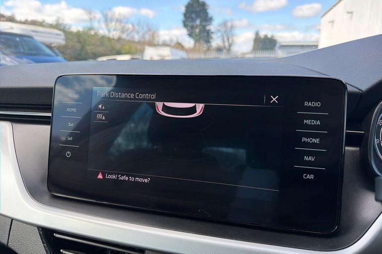 Amundsen satellite navigation with 9.2" glass colour touchscreen display, web radio, voice control and traffic sign recognition, Bluetooth system, E-call, Front assist system, Gesture control, PAS, Service indicator, Speed limiter, Wireless SmartLink for apple car play, android auto and mirrorlink, 8 Speakers, Auxiliary input socket, DAB Digital radio, Body colour bumpers, Body colour door mirrors and handles, Chrome grille surround, Dimming rear view mirror with black surround, Electrically adjustable and heated door mirrors, Front and rear electric windows, Headlight range control, Heated rear window, LED rear lights - low functionality, LED third brake light, Light sensors, Privacy glass, Rear fog lights, Rear side wing doors, Rear wiper, 12V Accessory socket in centre console, 3 seat bench in 2nd row, Chrome inner door handles, Cloth upholstery, Front head restraints, Glove compartment with illumination, Height adjustable driver and front passenger seats - manual, Ice scraper, Isofix child seat fittings on outer rear seats, ISOFIX on front passenger seat, Manual lumbar support for front seats, Rake/reach adjustable steering wheel, Reading lights, Single front passenger seat, Sun visors with illumination on front passenger, Textile floor mats, Third rear headrest, Top tether for front passenger seat, Umbrella in driver's door, 3x3 point rear seatbelts, Airbags - driver and front passenger, ESP, Front passenger airbag deactivation switch, Front side airbags with curtain airbags, Hill hold control, Manual parking brake, Manual rear child locks, One tone horn, Rear disc brakes, Seatbelt reminder for driver an co-driver, Traction control, Tyre pressure monitor, Anti-theft alarm system with interior monitoring, backup horn, towing protection and remote central locking with SAFE system, Anti-theft wheel bolts, Electronic engine immobilizer, Silver haptic decorative insert on the dashboard with hot stamping in glossy black,