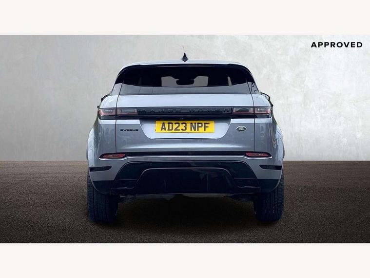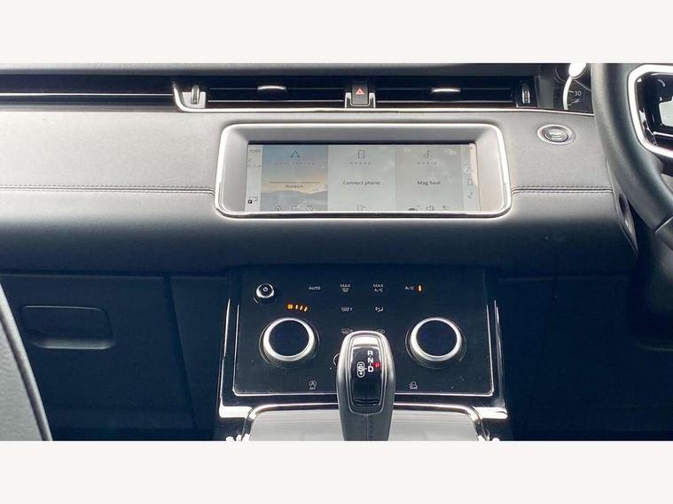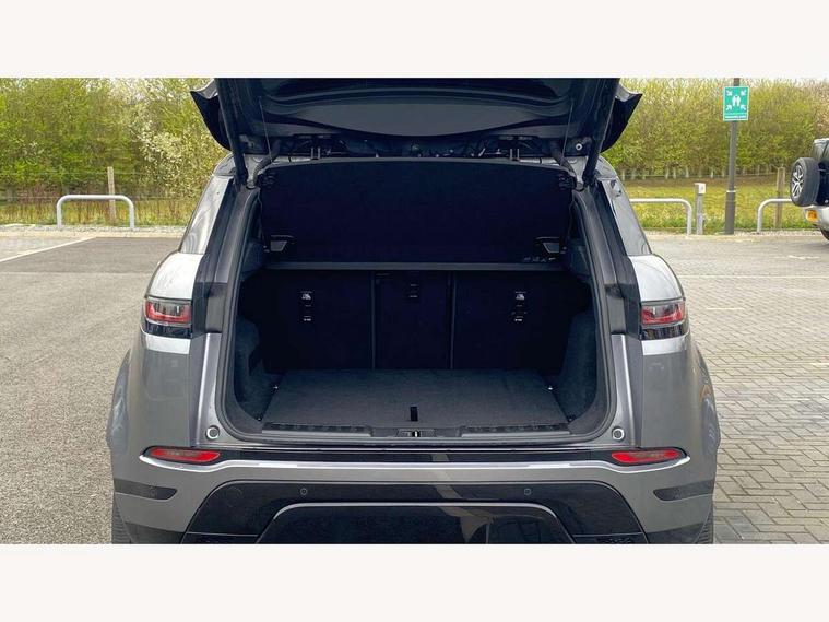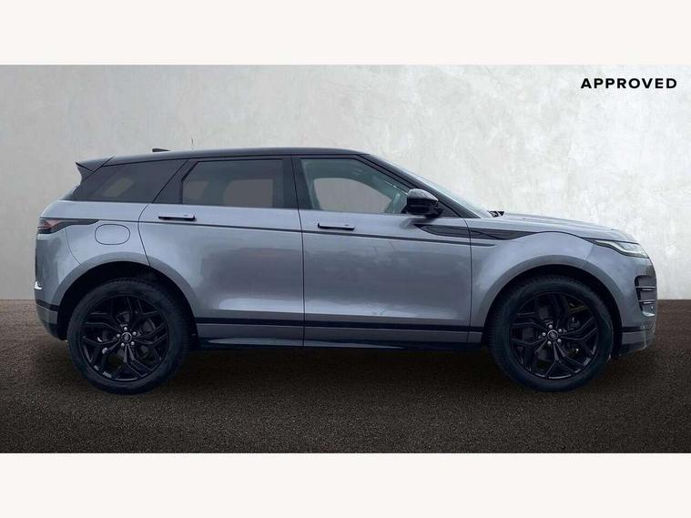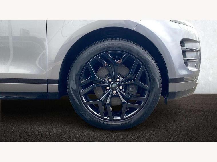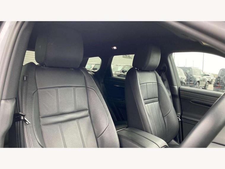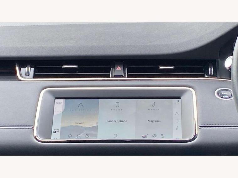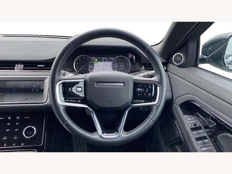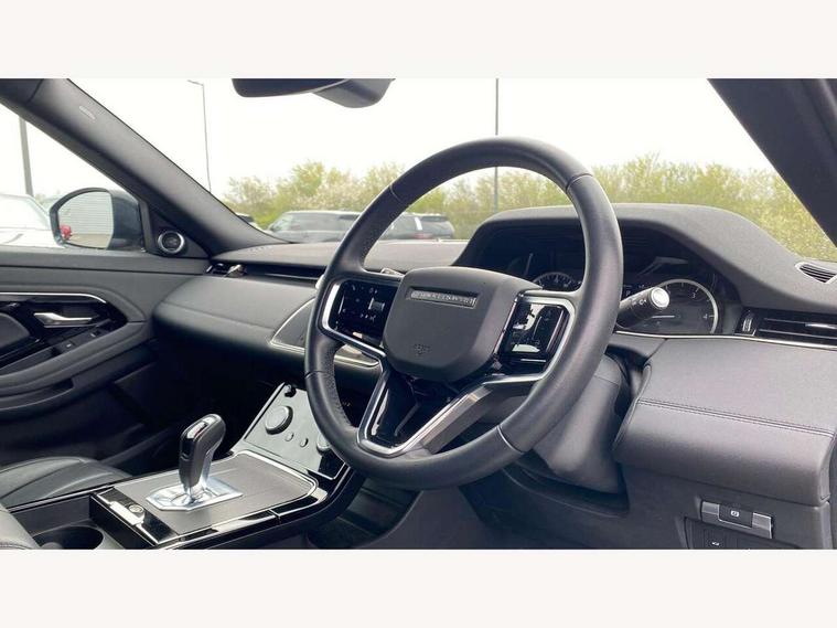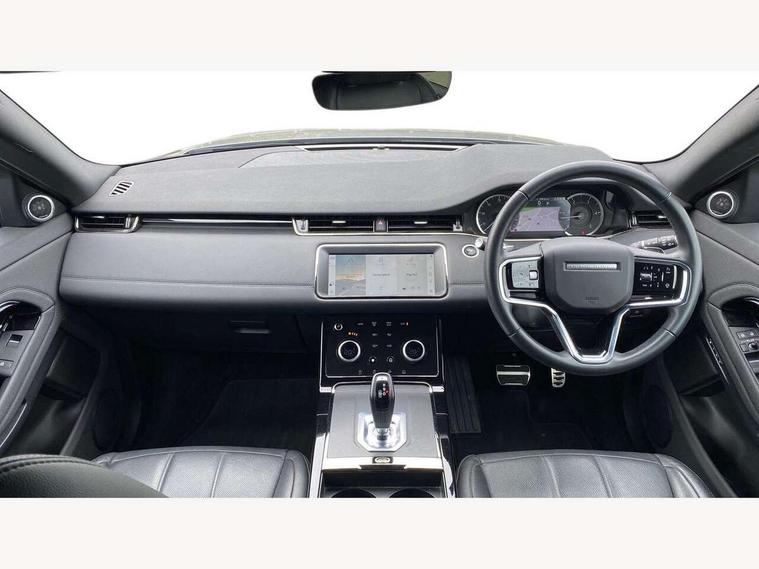 Adaptive cruise control, Android Auto, Apple car play, Blind spot assist, Bluetooth connectivity, Brake pad wear indicator warning light, Driver condition monitor, eCall emergency system, Electronic power assisted steering (EPAS), Front and rear parking aid, InControl remote, Land Rover InControl apps, Lane keep assist, Pivi pro connected includes upgraded infotainment, connected navigation pro, Nuance speech licence, Push button starter, Rear collision monitor, Rear traffic monitor, Traffic sign recognition with adaptive speed limiter, Voice control system, All terrain progress control, Efficient Driveline, Passive suspension, Terrain Response 2 Auto, Digital Audio Broadcast radio-DAB, Steering wheel mounted controls, Auto headlights, Automatic headlight levelling, Electric windows with one touch open/close and anti trap, Evoque and R-Dynamic badge, Flush deployable exterior door handles, Heated rear window with timer, Heated washer jets, Heated windscreen, Power fold, auto-dimming, heated door mirrors with approach lights and auto dimming driver side, Rain sensing windscreen wipers, Rear fog lights, Rear side wing doors, Rear wiper, Tailgate spoiler, Third brake light, 40:20:40 split folding rear seats with centre headrest and armrest, Ambient interior lighting, Bright metal pedals, Isofix system on outer rear seats, Overhead lighting console, Overhead stowage for sunglasses, Passive front head restraints, Rear air vents, Rear centre headrest, Rear head restraints, Satin chrome gearshift paddles, Single passenger seat, Sunvisors with illuminated vanity mirrors, Twin sliding front centre armrest, 3 rear 3 point seatbelts, Anti-lock braking system (ABS), Customer configurable autolock, DSC - Dynamic Stability Control, Electronic brake force distribution, Electronic parking brake, Electronic traction control, Emergency braking, Front and rear seatbelt reminder, Hill descent control, Hill launch assist, Low traction launch, Power operated child locks, Roll stability control, Six airbags - Driver and passenger airbags/driver knee airbag/front side airbag and curtain airbags, Torque vectoring brake, Tyre pressure monitoring system, Alarm, Immobiliser, Intrusion sensor, Keyless entry, Locking wheel nuts,
