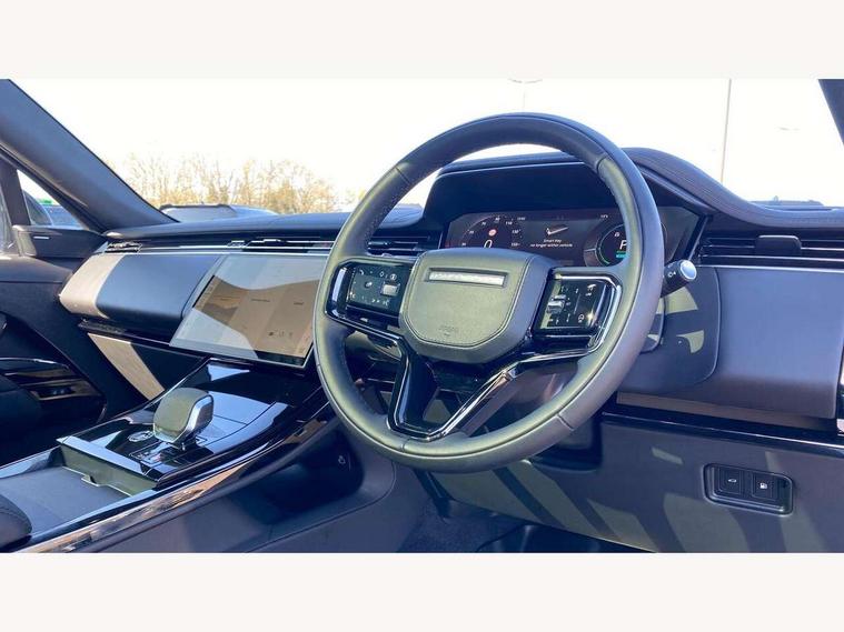 13.1" Touchscreen, 3D 360 degree surround camera with wade sensing, Adaptive cruise control with steering assist, Android Auto, Apple car play, Blind spot assist, Bluetooth connectivity streaming, Driver monitoring and response, Eco mode, Front and rear parking aid, Interactive Driver display instrument cluster, Lane departure warning system, Lane keep assist, Push button start, Rear collision monitor, Rear traffic monitor, Remote, Traffic sign recognition with adaptive speed limiter, Trip computer, Wireless device charging, 8 speed automatic transmission, AC/DC charging, Adaptive dynamics, All wheel drive system, Automatic access height, Public charging cable, Terrain Response 2, Twin speed transfer box, DAB Radio (Digital Audio Broadcasting), Incontrol protect - SOS emergency call with automatic collision detection, optimised assistance call and Incontrol remote app essential, Pivi pro connected, USB/aux input socket, Adaptive brake lights, Automatic headlight levelling, Automatic headlights, Centre high mounted stop light, Electric heated/power fold memory door mirrors with approach lights and auto dimming driver side, Electric windows with one touch open/close and anti trap, Engine cover, Flush deployable exterior door handles, Follow me home lighting, Front and rear recovery eyes, Headlight power wash, Heated rear window, Heated washer jets, Heated windscreen, Illuminated aluminium treadplates with Range Rover script, Integrated twin tailpipes, LED tail lights, Metal load space scuff plates, No badges, Rain sensing windscreen wipers, Rear animated directional indicators, Rear fog lights, Rear side wing doors, Rear wash/wipe, Remote window closing, Side repeater indicators in mirror, Trailer stability assist, Winter wiper park position, 3 seat bench in 2nd row, 60:40 seats with power recline and loadthrough, Air quality sensor, Automatic air recirculation system, Bright metal foot pedals, Centre console with armrest, Customer configurable single point entry, Driver's footrest, Easy boot loading, Ebony console door armrests and seatbelts, Electric adjustable steering column, Front and rear cupholders, Front door storage space, Front head restraints, Front map lights, Front seat back map pockets, Front stowage pocket, Front/rear passenger grab handles, Heated steering wheel, Isofix child seat preparation, Loadspace cover, Loadspace Hook, Loadspace light, Loadspace mounting provisions, Lockable glovebox, Luggage tie-downs in loadspace, Multifunction steering wheel, Pollen filter, Power socket, Rear centre armrest, Rear head restraints, Rear ISOFIX, Satin chrome gearshift paddles, Single front passenger seat, Three 12V accessory power outlets, Upper secondary glovebox, Online pack with data plan - Range Rover Sport, 3 point seatbelts on all seats, Anti-lock braking system (ABS), Brake pre-fill technology, Configurable autolock, Cornering brake control (CBC), DSC - Dynamic Stability Control, EBD - Electronic brakeforce distribution, Electric parking brake, Electronic traction control, Emergency braking, Front seatbelt pretensioners, Front side airbags, Height adjustable front seatbelts, Hill descent control, Hill launch assist, Low traction launch, Occupant protection assist, Passenger seat occupant detector with front airbags, Power operated child locks, Roll stability control, Seatbelt warning, TPMS (Tyre pressure monitoring system), Immobiliser, Intrusion sensor, Keyless entry, Locking wheel nuts, Perimetric and volumetric anti theft alarm, Remote locking,