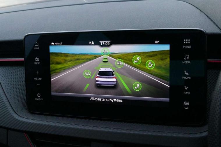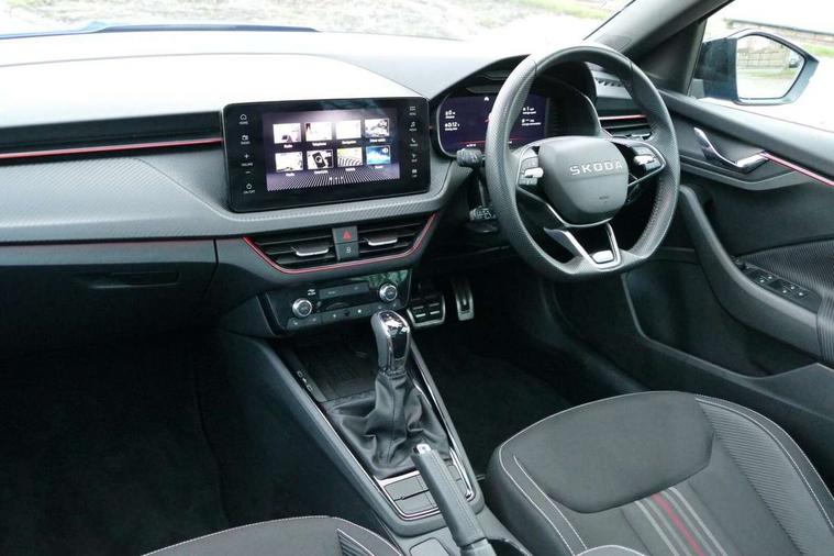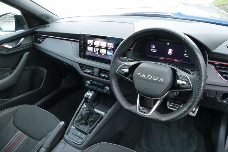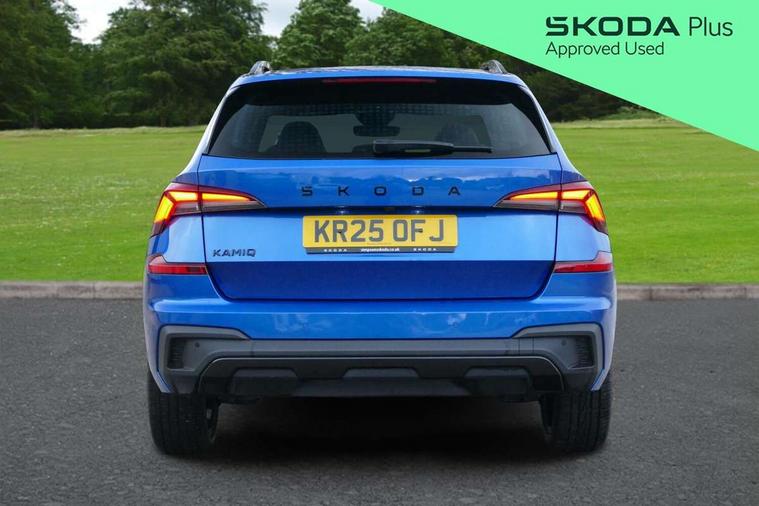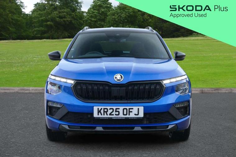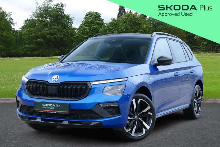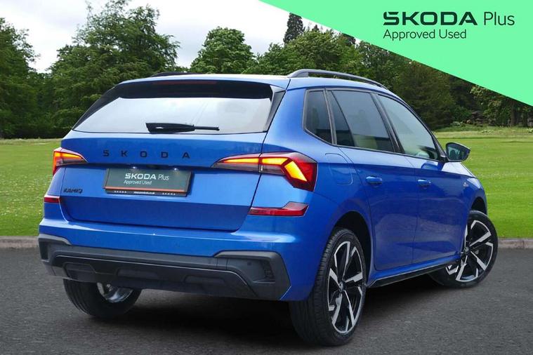 Advanced driver attention and drowsiness monitor, Bluetooth system, E-call, Front assist system, PAS, Rear parking sensors, Rear view camera, Service indicator, Speed limiter, Traffic sign recognition, Virtual cockpit with 10.25" display, Voice control system, Wireless smartlink, 4 USB C ports, 8 Speakers, 9.2" Skoda navigation display, DAB Digital radio, Auto dimming rear view mirror, Automatic headlight control with coming home and leaving home feature, Black door mirrors, Black radiator grille, Black rear diffuser, Black roof spoiler, Body colour bumpers, Body colour door handles, Boot lettering in black, Extended tailgate glass, Fixed panoramic sunroof with black roof rails, Front and rear electric windows, Heated rear window, LED daytime running lights, LED high beam, LED low beam, LED third brake light, Light sensors, Monte carlo plaque, Privacy glass, Rear side wing doors, Rear wiper, Ticket holder inside windscreen, 12V socket in luggage compartment, 3 seat bench in 2nd row, Aluminium pedals, Ambient lighting in white/red, Art leather carbon decor inserts, Art leather carbon door inserts, Black roof lining, Cargo elements, Chrome inner door handles, Driver and passenger sun visors with vanity mirror, Dual zone climate control, Front and rear roof lights, Front centre armrest, Front head restraints, Glove compartment with illumination, Height adjustable driver seat, Height adjustable front passenger seat, Ice scraper, Inner circulation control with pollen filter, ISOFIX on front passenger seat, Isofix preparation for back seats, Leather gearknob and handbrake lever, Manual lumbar support for front seats, Monte Carlo cloth upholstery, Net package and top tether hooks in boot space, Net under rear shelf, Pocket on the back of both front seats include mobile phone pockets, Rake/reach adjustable steering wheel, Reading lights, Rear centre armrests, Red hotstamping, Single front passenger seat, Sports seats, Textile floor mats, Third rear headrest, Top tether for front passenger seat, Umbrella in driver's door, Light and view plus package - Kamiq, 3x3 point rear seatbelts, Airbags - driver and front passenger, Disc brakes, ESP, Extended and predictive pedestrian/cyclist protection, Front passenger airbag deactivation switch, Front side airbags with curtain airbags, Hill hold control, Manual leather parking brake, Manual rear child locks, One tone horn, Seatbelt reminder for driver an co-driver, Traction control, Tyre pressure monitor, Anti-theft alarm system with interior monitoring, backup horn, towing protection and remote central locking with SAFE system, Anti-theft wheel bolts, Electronic engine immobilizer, 18" Ursa black diamond cut alloy wheels,
