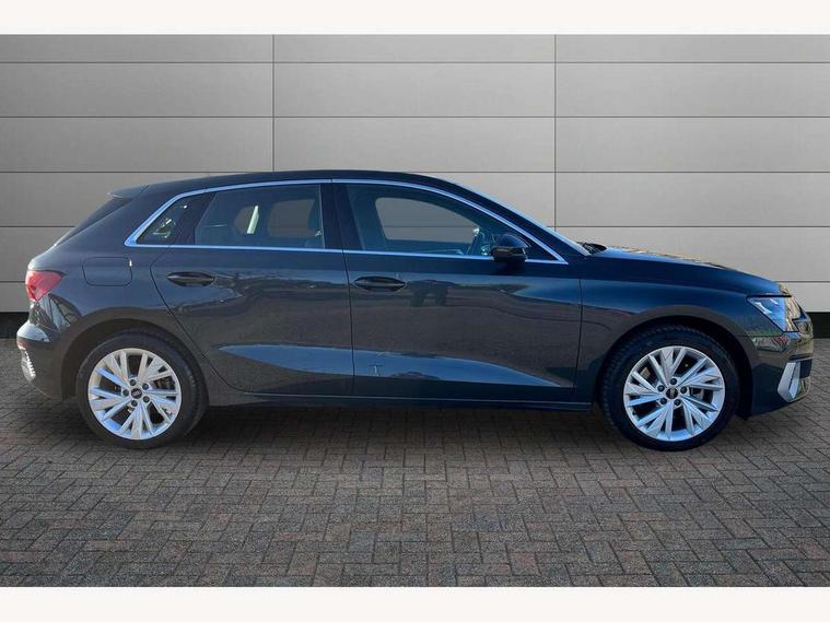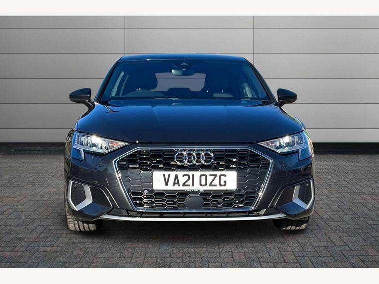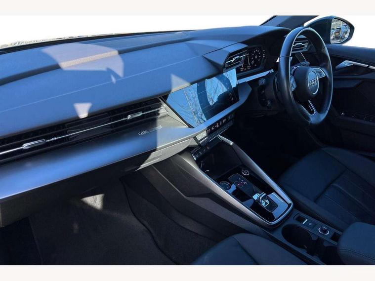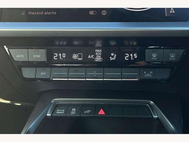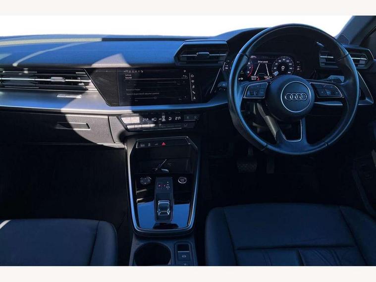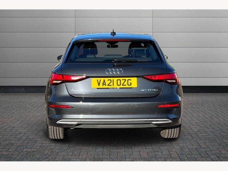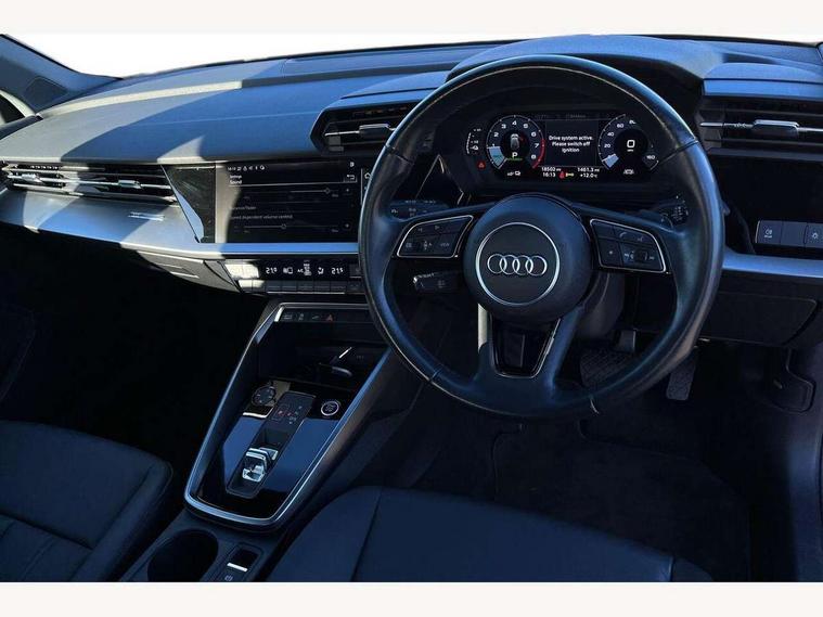 Audi connect emergency call and service, Audi drive select (Auto, Comfort, Dynamic, Efficiency and Individual), Audi smartphone interface, Audi Virtual Cockpit - 10.25" digital and colour instrument cluster, Automatic start/stop system with recuperation, Bluetooth interface, Collision avoidance assistant, Electromechanical power speed sensitive steering, Lane departure warning system, MMI Navigation Plus with high resolution 10.1" colour touch screen display, Service indicator, Trip computer, Voice control system with natural language interaction, 3 pin 10 amp domestic charging cable, Standard suspension, Type 2 mode 3 32 amp charging cable, Type 2 socket for AC charging, 2xUSB-C connection with data and charging functions, 6 passive loudspeakers, DAB Digital radio, Acoustic glass windscreen, Aluminium window trim, Auto dimming frameless rear view mirror, Body colour exterior mirrors, Body colour roof spoiler, Electrically adjustable/heated/folding/dimming door mirrors with kerb view includes integrated LED indications + kerb view function for passenger side, Front electric windows, LED daytime running lights, LED headlights and halogen rear lights, Light and rain sensors, Rear electric windows, Rear window, rear door windows and rear side windows in clear glass, Rear wiper, 12V socket and storage compartment in front centre console, 40/20/40 split folding rear seat bench with cupholder, Dual zone electronic climate control, Front and rear centre armrest, Front and rear headrests, Front door sill trims with aluminium inlay, Front/rear floor mats, Height and reach adjustable steering wheel, Interior lighting - Front and rear roof module including reading lights, glove compartment light and right hand side, Luggage compartment floor covering, Manual boot compartment lid, Manually adjustable front seats, Seat side bolsters, Steel grey cloth headlining, Tool kit, Twin leather upholstery, Aluminium interior elements pack - A3 Sportback, Sport styling pack - A3 Sportback, 3x3 point rear seat belts, Driver and front passenger airbag with passenger airbag deactivation, Electronic Stabilisation Control (ESC) including ABS, ASR and EDL, First aid kit with warning triangle and 2 safety vests, Front side airbags with head airbags and interaction airbag, Hill hold assist, Pre-sense front with pedestrian and cyclist detection, Seatbelt monitoring, Tyre pressure loss indicator, Anti theft alarm, Anti-theft wheel bolts, Electronically operated child lock, Immobiliser, Remote control central locking, Inlays with silk effect paint in platinum grey, Tyre repair kit,