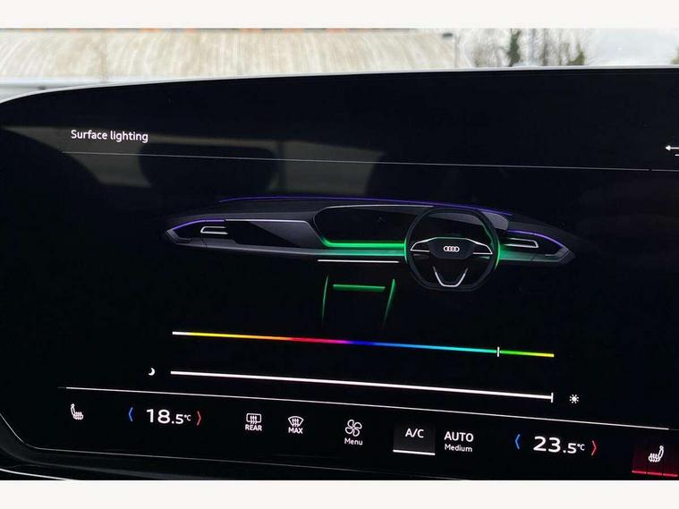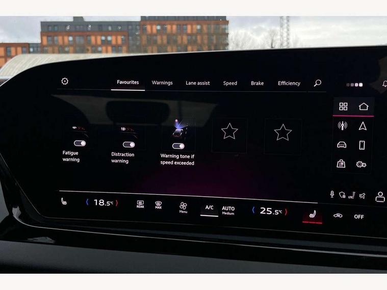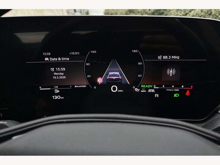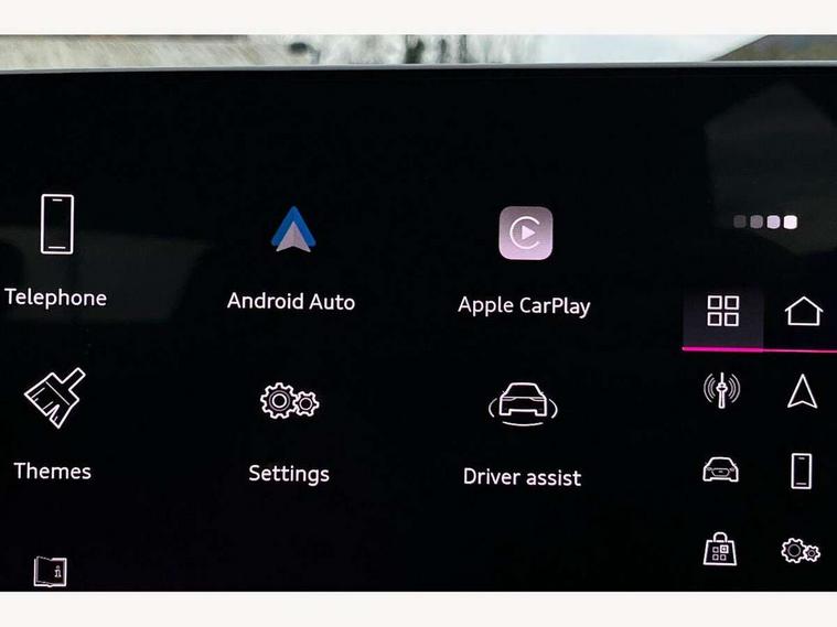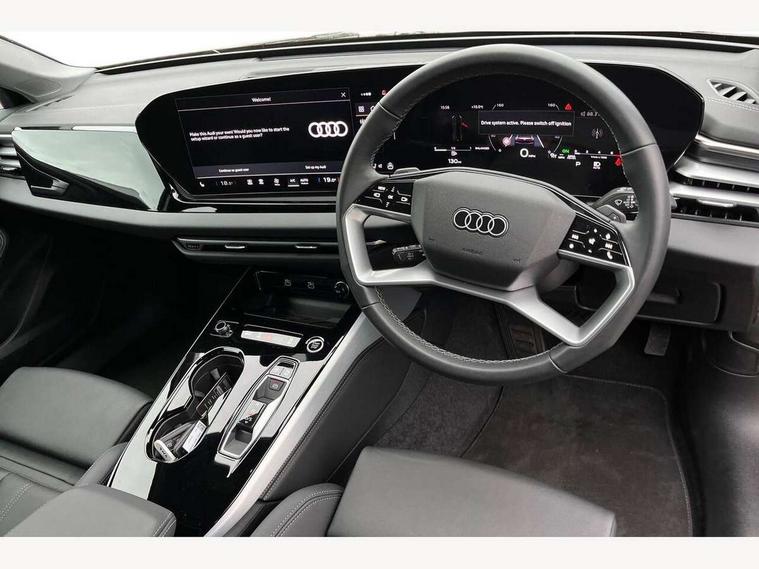 Adaptive cruise control, Advanced driver attention and fatigue montior, Audi application store, Audi assistant, Audi connect emergency call and service, Audi drive select, Audi smartphone interface, Audi virtual cockpit plus with 11.9" OLED colour display, Automatic start/stop system with coasting functionality, Camera based traffic sign recognition, Intersection assist, Lane departure warning, MMI navigation plus with high resolution 14.5" OLED touchscreen colour display, Park assist plus, Parking system plus with 360 display, Progressive steering with servotronic, Rear view camera, Swerve assist and turn assist, Traffic sign based speed limiter, Comfort suspension, 2 USB-C ports in both the front and rear, Audi sound system impressive sound with 10 loudspeakers including centre speaker and subwoofer, 6-channel amplifier with a total output of 180 watts, DAB digital radio reception, Smartphone compartment with wireless charging, Aluminium window trims, Auto dimming rear view mirror, Body colour door mirrors, Door mirrors - electrically adjustable, heated, folding and auto dimming on both sides, Front and rear electric windows, Front door sill trims with aluminium inlays, illuminated, High beam assist, LED headlights Plus incl. digital daytime running lights, turning light, all-weather light, motorway light, manouevring light and intersection light, LED rear lights pro incl. dynamic rear indicators and illuminated light strip with animated coming and leaving home function, LED third brake light, Rear and side windows with heat insulating glass, Rear boot, Rear side wing doors, Sport bumpers, radiator grille and diffuser in scandium grey and diffuser insert in matt selenite silver, White rhombus logo projection light in exterior mirrors, Windscreen with acoustic glazing, 3 rear headrests, 3 seat rear bench, 3-zone automatic climate control, 40:20:40 split folding rear seat bench with centre armrest and cup holders, Comfort front centre armrest, Front and rear floor mats, Front seats with manual adjustment for position and 4-way electric lumbar support, Front sport seats with integrated head restraints, Heated front seats, i-Size child seat mounting on the front passenger side and outer rear seats, i-Size and top tether on the outer rear seats, Luggage compartment lid, electrically opening and closing, Manual steering column height and depth adjustment, Rock grey cloth headlining, Single front passenger seat, Twin leather upholstery, Twin spoke leather steering wheel with multi-function buttons with touch control, shift paddles and trim in chrome look, Ambient lighting package plus - A5, 3x3 point rear seat belts, Driver airbag, Electric child safety locks, First aid kit with warning triangle and vests, Front emergency brake assist, Front passenger airbag, Front passenger airbag deactivation, Front side airbags with head airbag system and front interaction airbag, Hill hold assist, Seat belt monitoring with rear seat occupant reminder, Tyre pressure loss indicator, Anti theft alarm, Anti-theft wheel bolts, Keyless Go, Accent surfaces and control buttons in gloss black, Black dashboard with contrast stitching, Inlays in matt brushed aluminium, silver, Softwrap in leatherette with contrast stitching, Upper and lower interior elements in leatherette, Tyre repair kit,