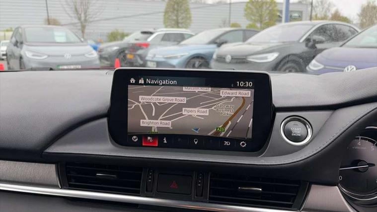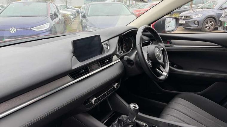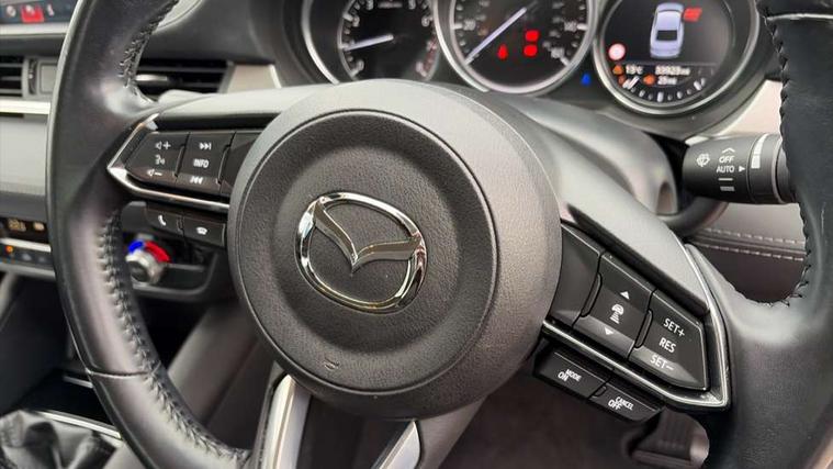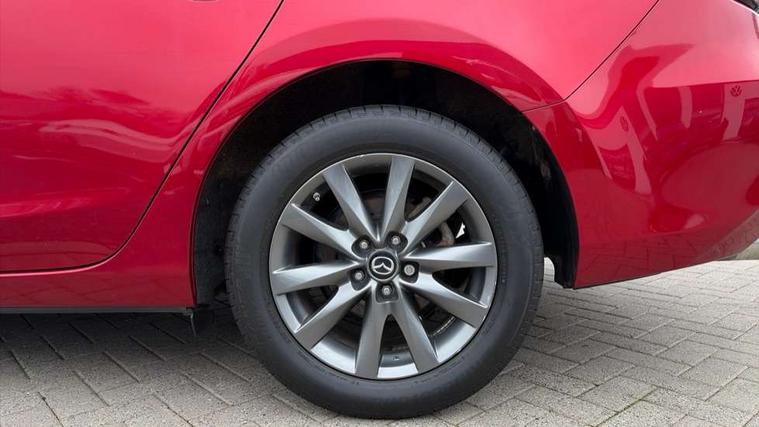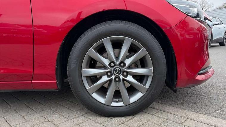 8" touchscreen with multimedia commander, Adjustable speed limiter, Audio transfer from bluetooth devices, Black, soft touch dashboard panel, Blind spot monitoring with rear cross traffic alert, Bluetooth connectivity with voice control, Colour head up display, Colour TFT display with speed, traffic signs and cruise control information, E-call, Electric power steering, Emergency stop signalling system, Engine start/stop button, Front and rear parking sensors, Intelligent speed assist, Lane keep assist system (LAS) with Lane departure warning system (LDWS), Radar cruise control, Satellite navigation system with european maps, Service indicator, Traffic sign recognition, Trip computer, Wireless Apple CarPlay and wired Android Auto, i-stop, 2 USB ports, Auxiliary input socket, Mazda Multimedia System - AM/FM/DAB radio, MP3 with 6 speakers, Steering wheel mounted audio controls, Auto dimming rear view mirror, Body colour door handles, Body coloured door mirrors, Body coloured front bumper with black lower mouldings, Body coloured rear bumper, Chrome finish signature wing, Coming/leaving home lighting function, Daytime running lights, Dual chrome exhaust, Dusk sensitive headlamps, Electric front/rear windows/one touch facility, Electrically adjustable/heated/auto power folding door mirrors with integrated indicators, Front, rain-sensing with adjustable sensitivity and speed wipers, Gloss black grille inserts, High beam control, LED auto leveling headlights, LED front fog lights, LED rear combination lights with LED rear turn lights, Privacy glass, Rear boot, Rear bumper with black lower mouldings, Rear fog lights, Rear side wing doors, Scuff plates, 12V power socket in centre console, 3 height adjustable rear headrests, 3 seat bench in 2nd row, 60/40 split folding rear seat, Driver seat with manual slide, recline, height and lumbar adjustment, Driver, Front passenger and two rear grab handles with coat hooks, Driver/passenger sunvisors with ticket holders + vanity mirrors, Dual zone climate control, Folding rear centre armrest with USB input, Front and rear courtesy lamps, Front armrest with storage bin, Front centre storage with two cupholders, Front driver and passenger seatback pocket, Front passenger and driver door pockets, Front passenger seat with manual slide, recline and height adjustment, Gear shift indicator, Illuminated glovebox with lock, Interior incandescent lighting, Isofix rear child seat fastenings, Leather wrapped gearshift, Leather wrapped steering wheel, Light roof lining, Luggage compartment lighting, Premium cloth upholstery, Rear air vents, Roof mounted sunglasses holder, Single front passenger seat, Tilt/telescopic adjustable steering wheel, 3 point ELR front seat belts, 3 rear 3 point seatbelts with ELR, ABS + EBD + EBA, Active bonnet, Active front headrests, DSTC-Dynamic Stability and Traction Control, Electronic parking brake with auto hold, Front Advanced Smart City Brake Support (SCBS), Front and rear curtain airbags, Front dual stage driver and single stage front passenger airbags, Front passenger airbag cut off switch, Front side airbags, G-Vectoring control plus, Height adjustable front seatbelts with pre-tensioners and load limiters, Hill hold control, Manual child lock in rear doors, Seatbelt reminder front and rear, Tyre pressure monitoring system, Automatic door locking, Deadlocking system, Remote central locking, Thatcham category 1 alarm + immobiliser, Vinyl leather door panel trim, 17" Gunmetal alloy wheels, Tyre repair kit,