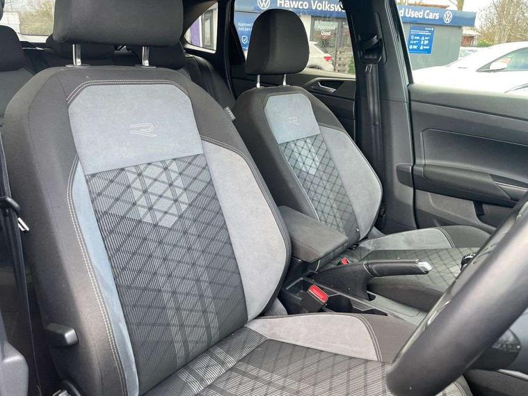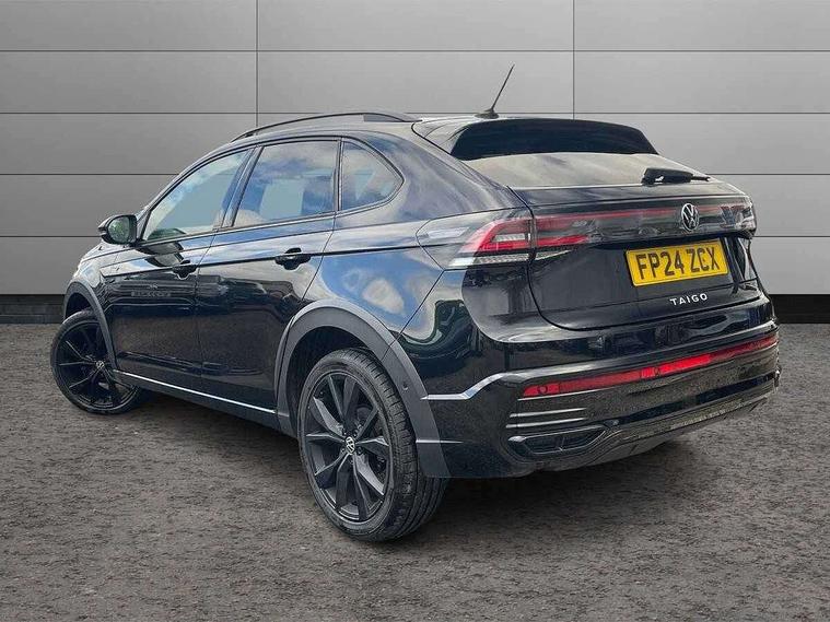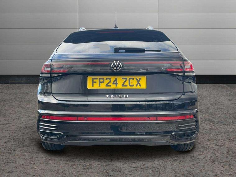 Advanced driver attention and drowsiness monitor, App-Connect including App-Connect Wireless, Digital cockpit pro - 10.25" high resolution TFT dash display screen with customizable menus and information, Driving profile selection, Dynamic road sign display, e-Call (emergency call), Power Steering, Travel assist including emergency assist, Washer fluid level indicator, Wireless Charging including Bluetooth, Start-stop system with battery regeneration (recuperation - energy recovery during braking), XDS electronic differential lock for improved traction and handling, Digital radio reception (DAB+), Diversity antenna for FM reception, WeConnect plus, Ambient lighting with logo projection, Aspherical driver's exterior mirror, Auto headlights, Body coloured bumpers, Bumpers in R-Line style, Electric windows, External USB type C socket and charging sockets, Front scuff plates with R-Line logo, LED rear combination lamp, LED third brake light, Left convex exterior mirror, Power folding adjustable/heated exterior mirrors and front passenger exterior mirror lowering function, Rear fog light on one side, reversing light on both sides, Rear side wing doors, Rear wash/wipe with intermittent wipe setting, 12V socket in centre console, 2 front reading lights, 3 rear head restraints, 3 seat bench in 2nd row, Air care climatronic air conditoning system with active combination filter and 2-zone temperature control, Black carpets, Black roof lining, Child seat anchor for child seat system i-Size, 2x top tether and child seat anchor in front on front passenger side, Chrome bezel for instrument cluster, vents, door handles + gear shift, Driver and front passenger seat height adjustment, Front + rear carpet mats, Front centre armrest, Front footwell illumination, Front sports comfort seats, Height and reach adjustable steering wheel, Interior ambient lighting and surround lighting, Karoso artvelours cloth upholstery, Leather trimmed gear knob, Leather wrapped multifunction steering wheel, Luggage compartment floor, Luggage compartment light, Lumbar support for driver's and front passengers seat, Seat covers in grey + titanium black, Single front passenger seat, Split folding backrest with centre armrest and unsplit rear seat bench, Stainless steel pedals, Storage compartment under front seats, Sun visors with illuminated vanity mirrors, Chrome Package - Taigo, Drivers assistance pack - Taigo, Light and Sight pack including High beam assist - Taigo, 2 x 3-point seatbelts/outer rear seats with ECE label, 3-point seat belts in front with pretensioner and height adjustment, 3-point seatbelt for centre rear seat, Adaptive driver and front passenger airbags with passenger airbag deactivation function, Driver and front passenger safety-optimised head restraints, Electronic stability control, Extended and predictive pedestrian/ cyclist protection, Front and rear disc brakes, Front curtain and side airbags with center airbag, Hill start assist, Manual rear child locks, Single tone horn, Tyre pressure loss indicator, Anti-theft alarm system with interior monitoring, backup horn, and towing protection, Anti-theft wheel bolts, Grey anodised matte decorative inserts in dash and front door panels, Low rolling resistance tyres,